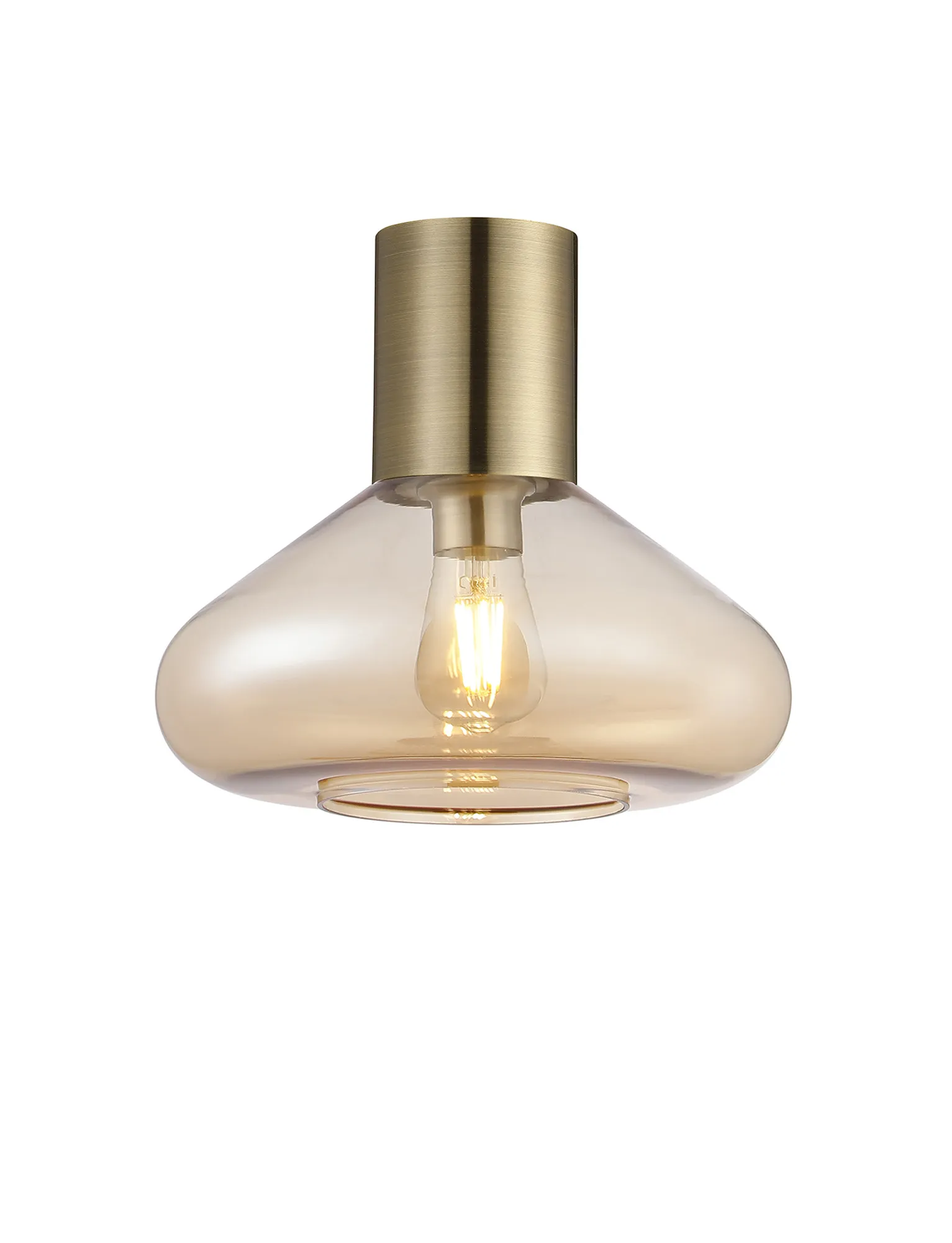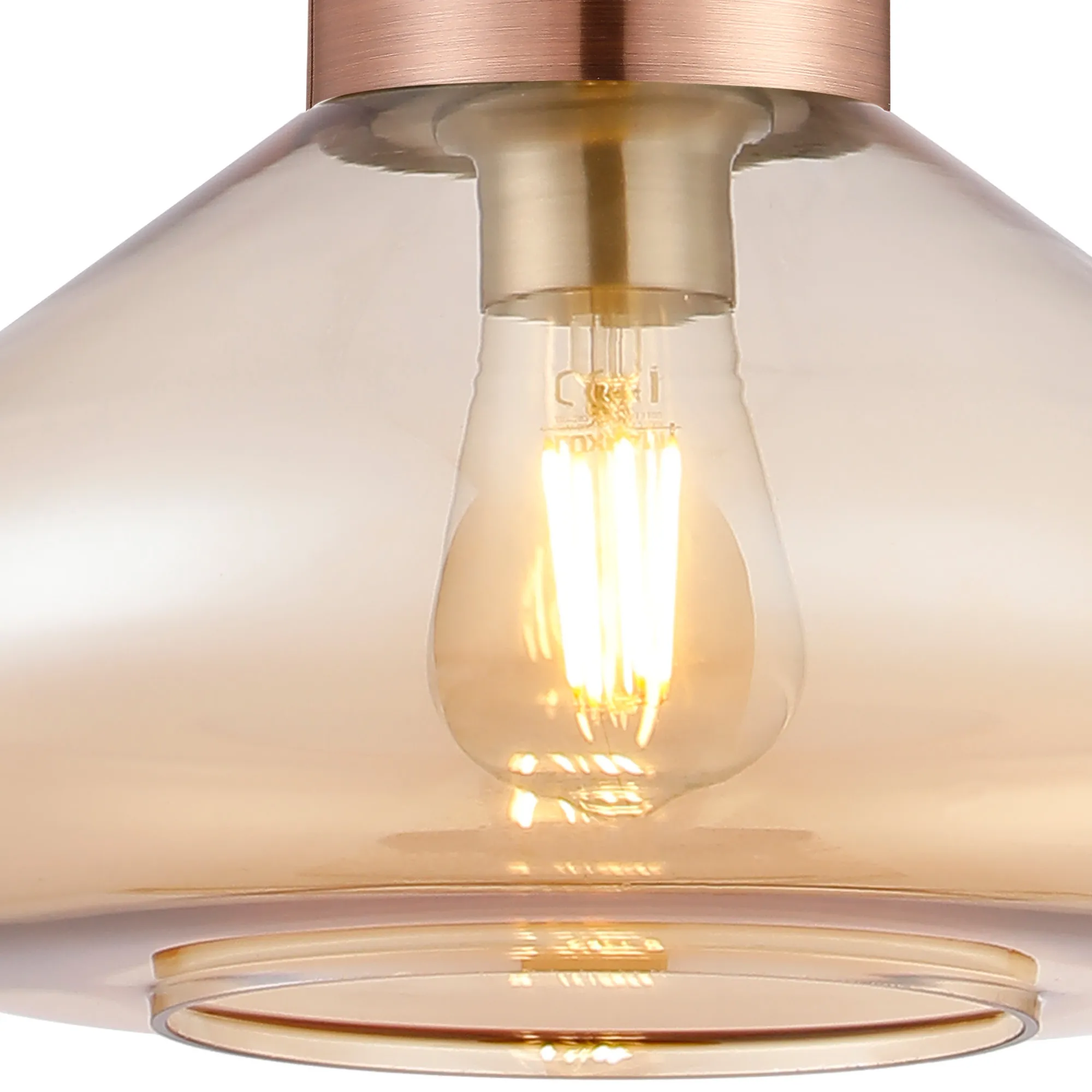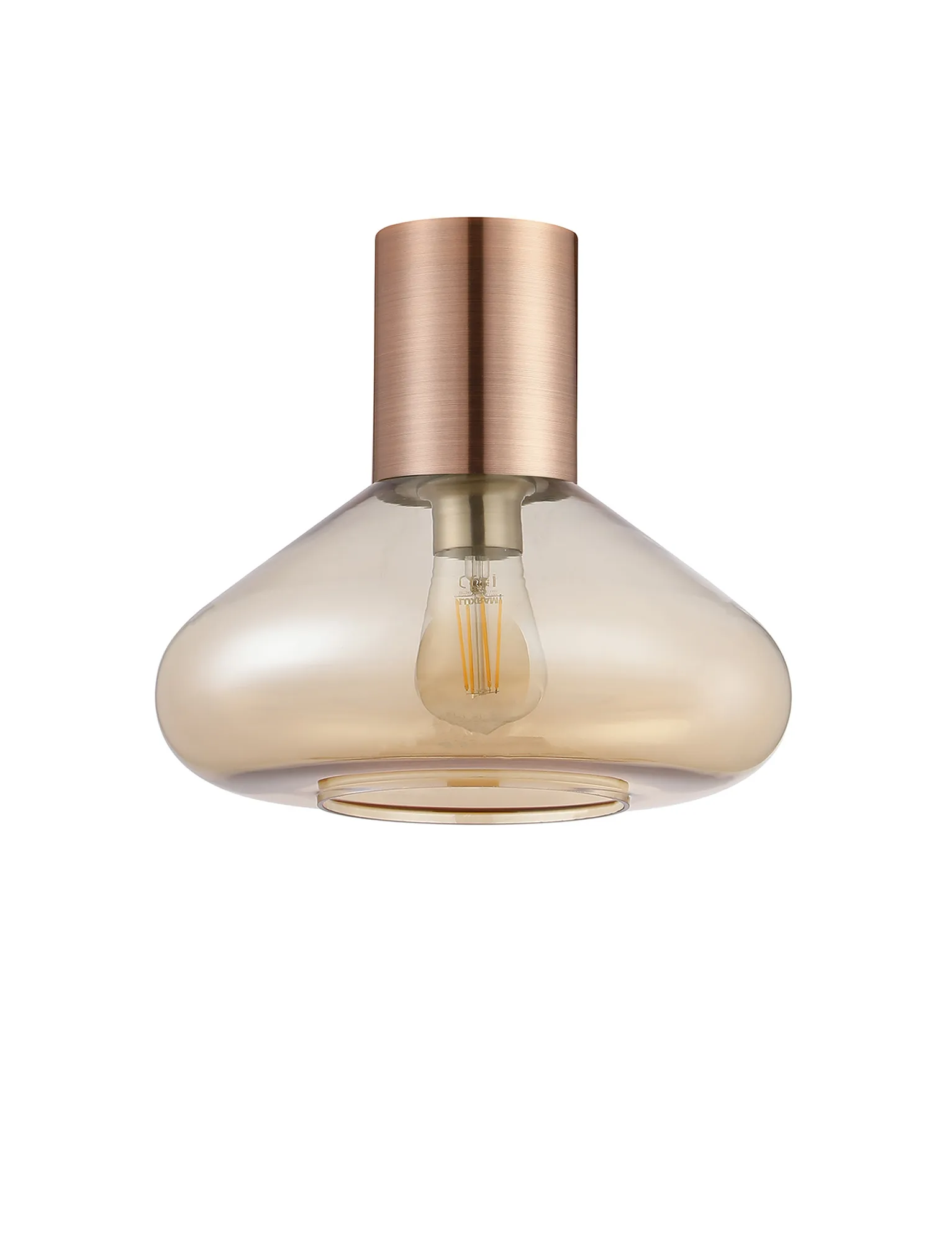 Clyde Ceiling Light With Narrow Glass, 1 x E27, Antique Copper/Amber
