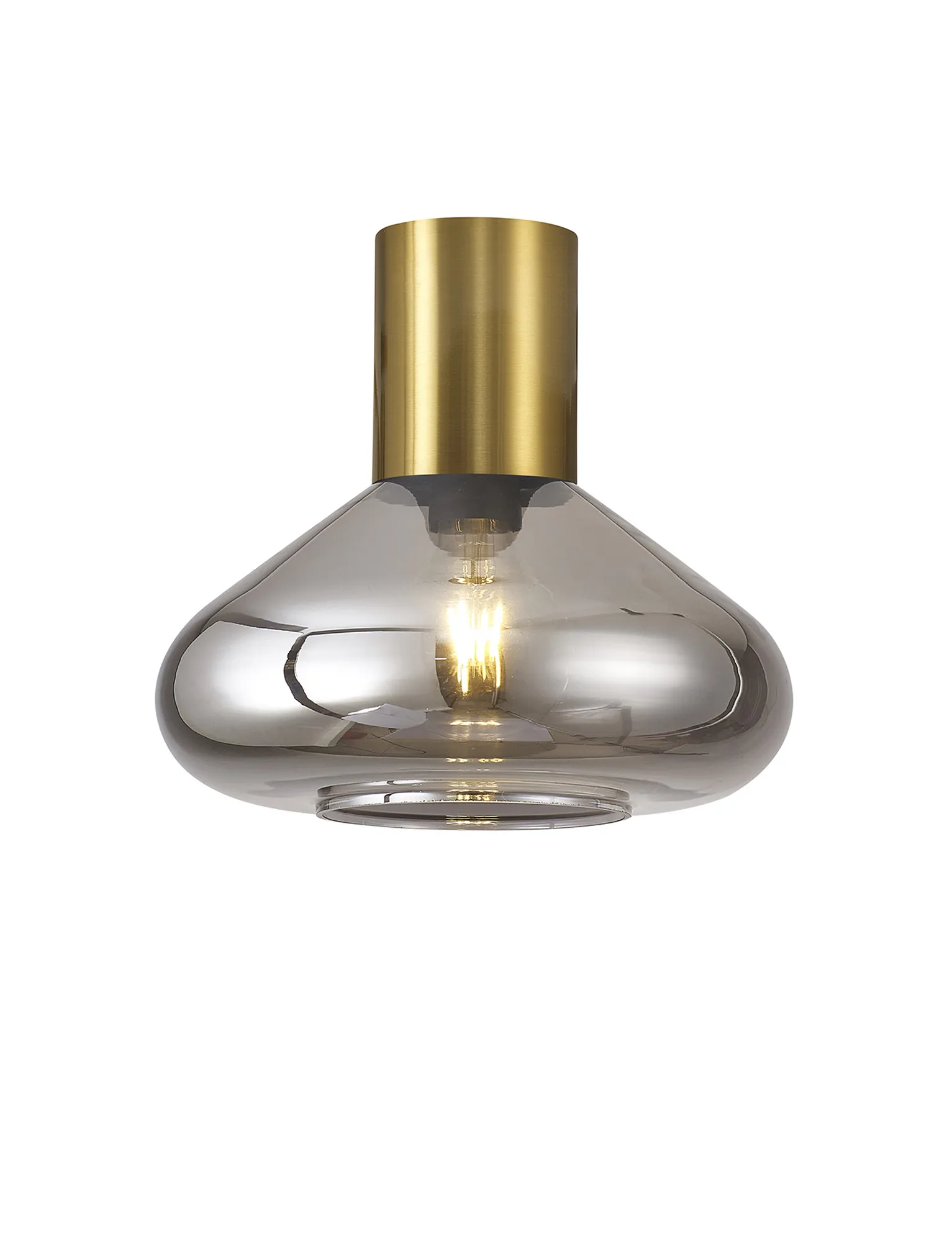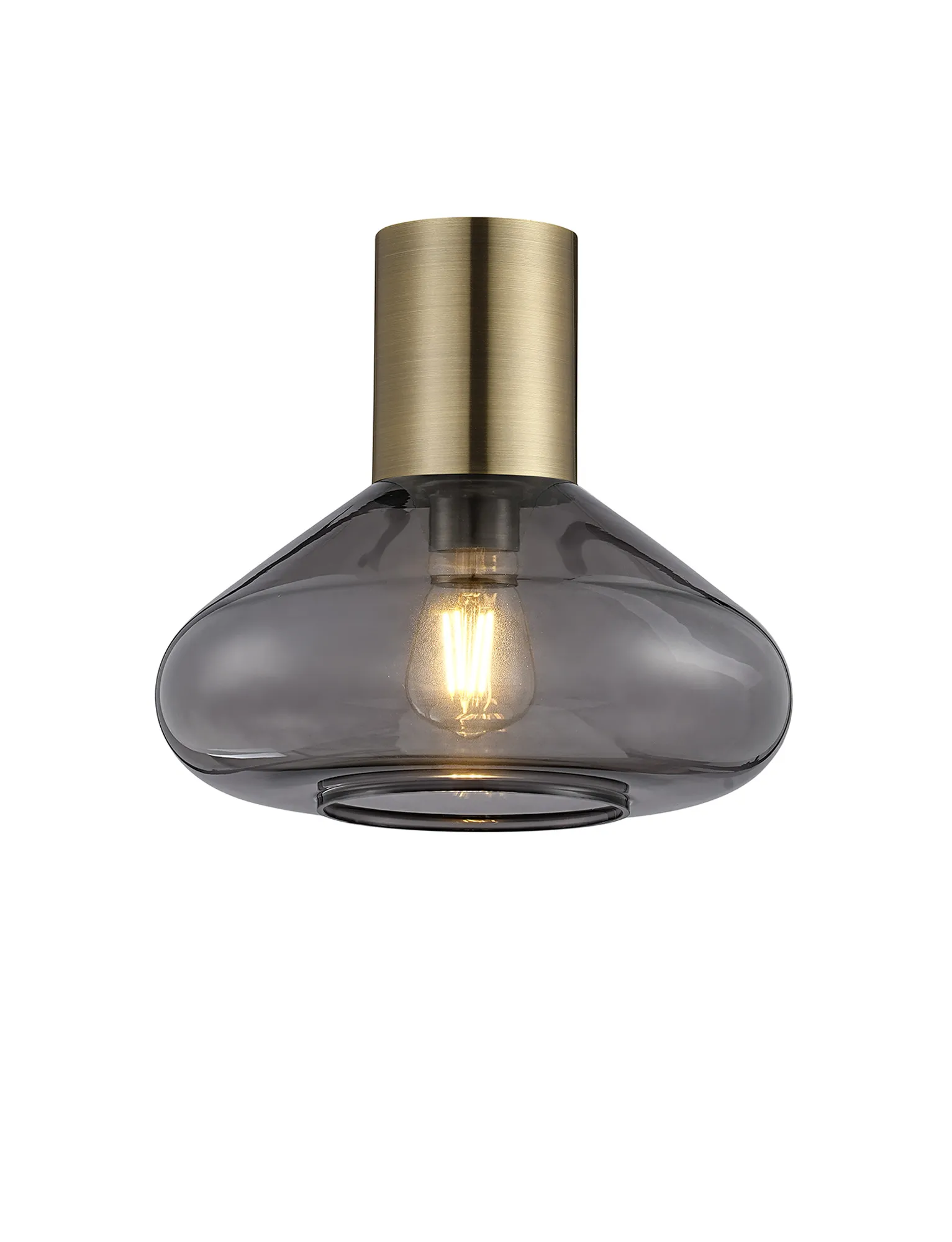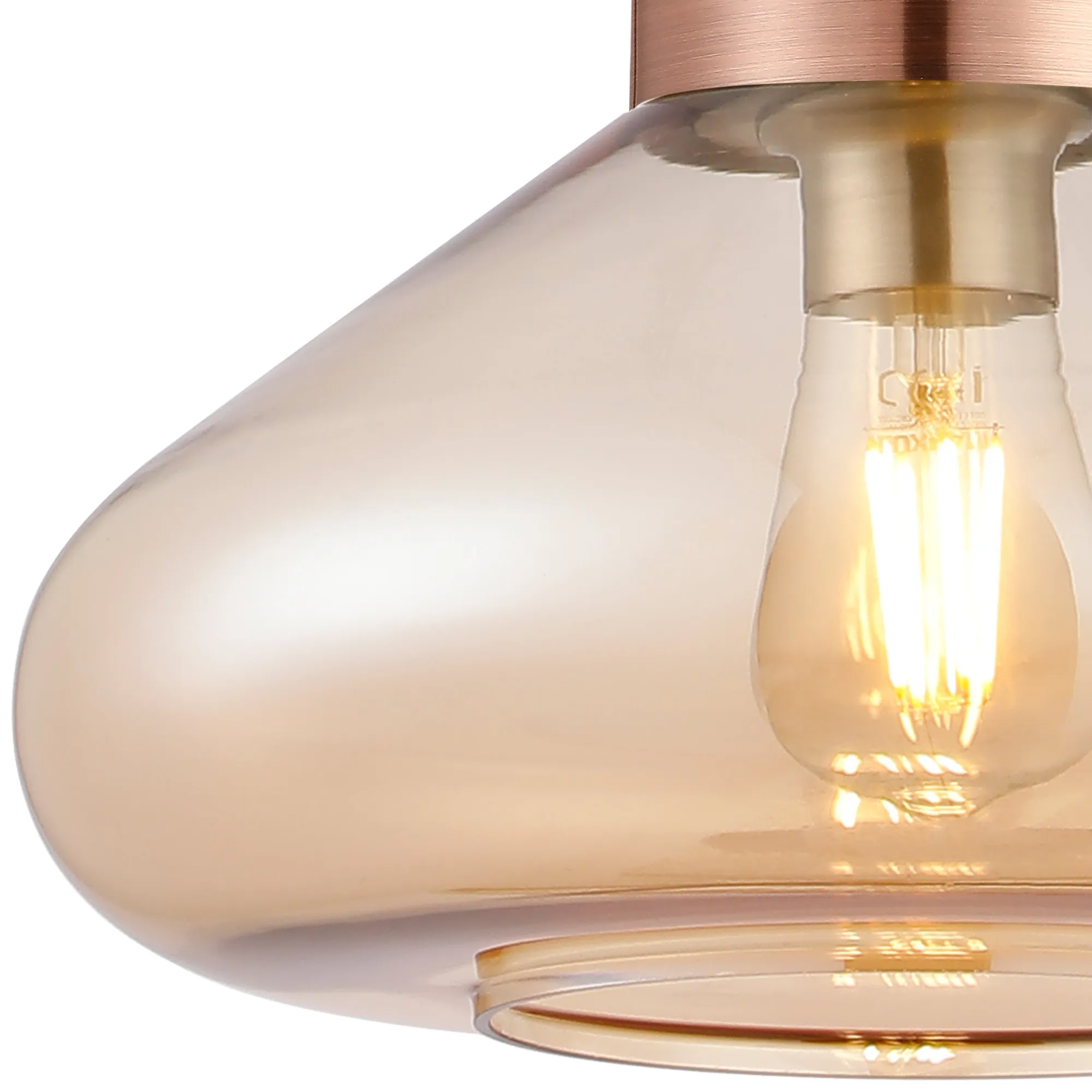 Clyde Ceiling Light With Narrow Glass, 1 x E27, Antique Copper/Amber