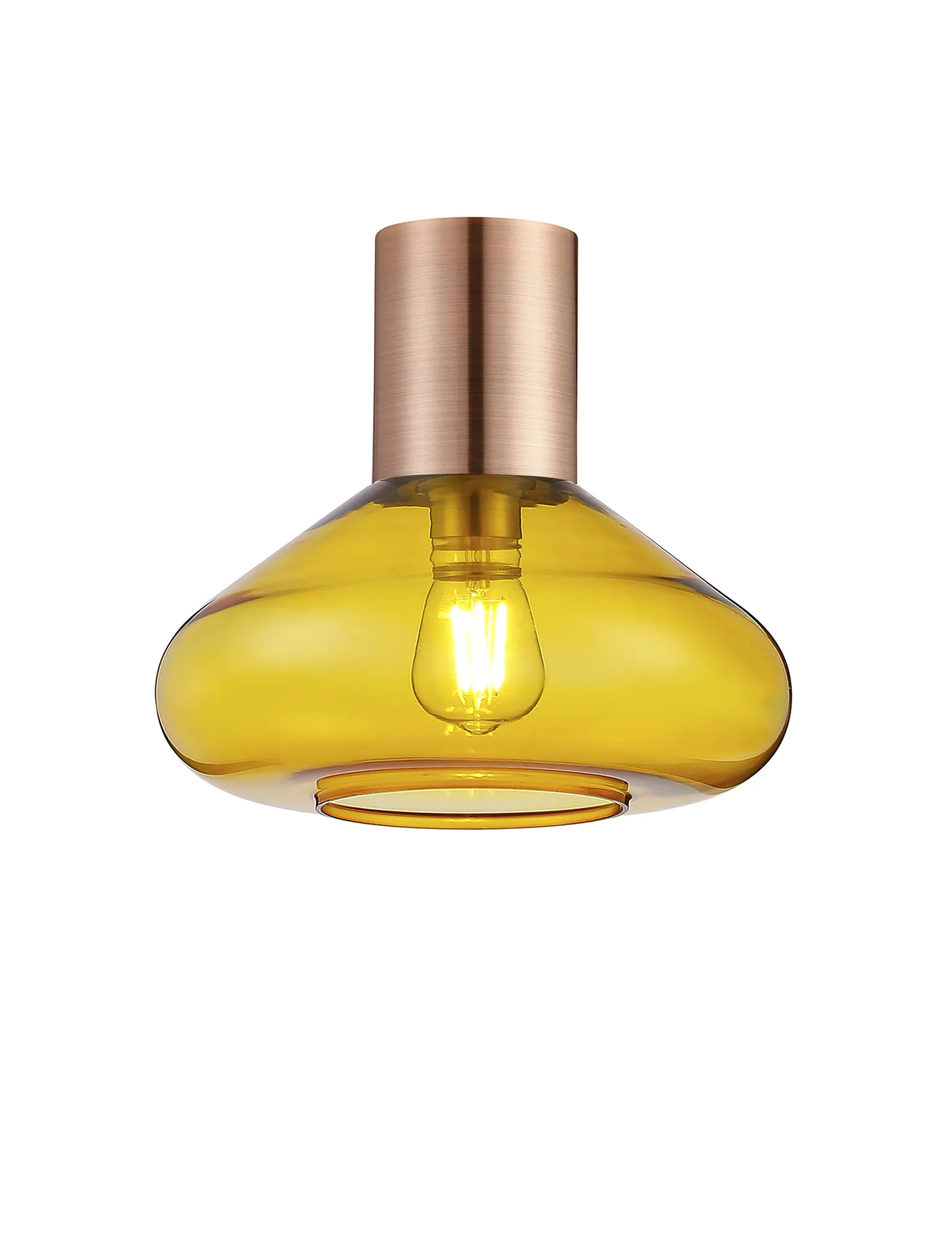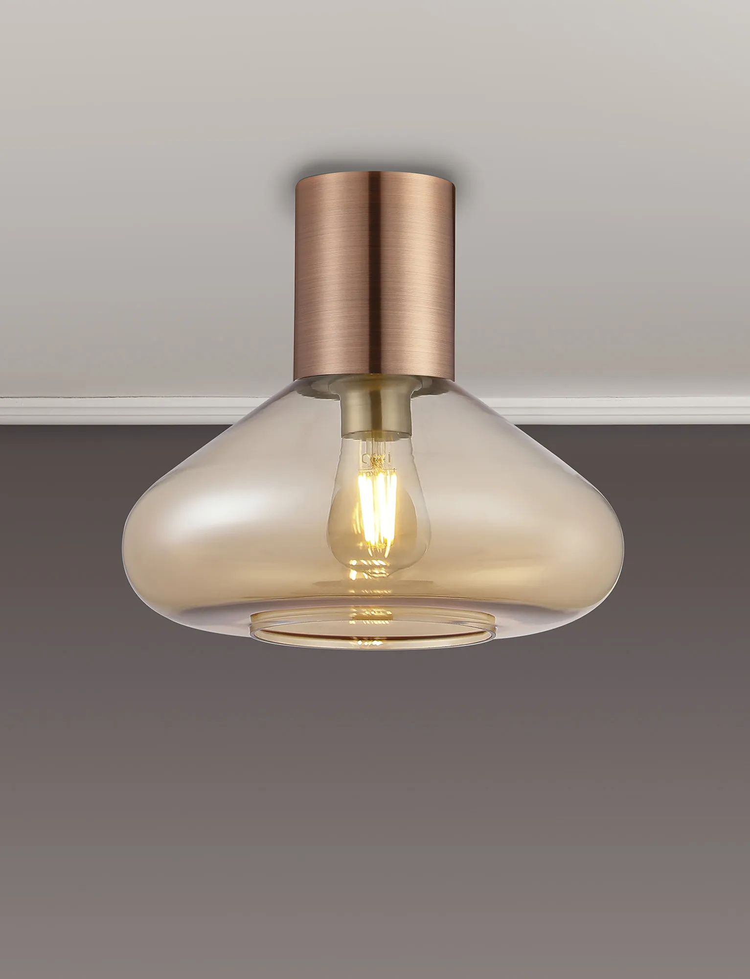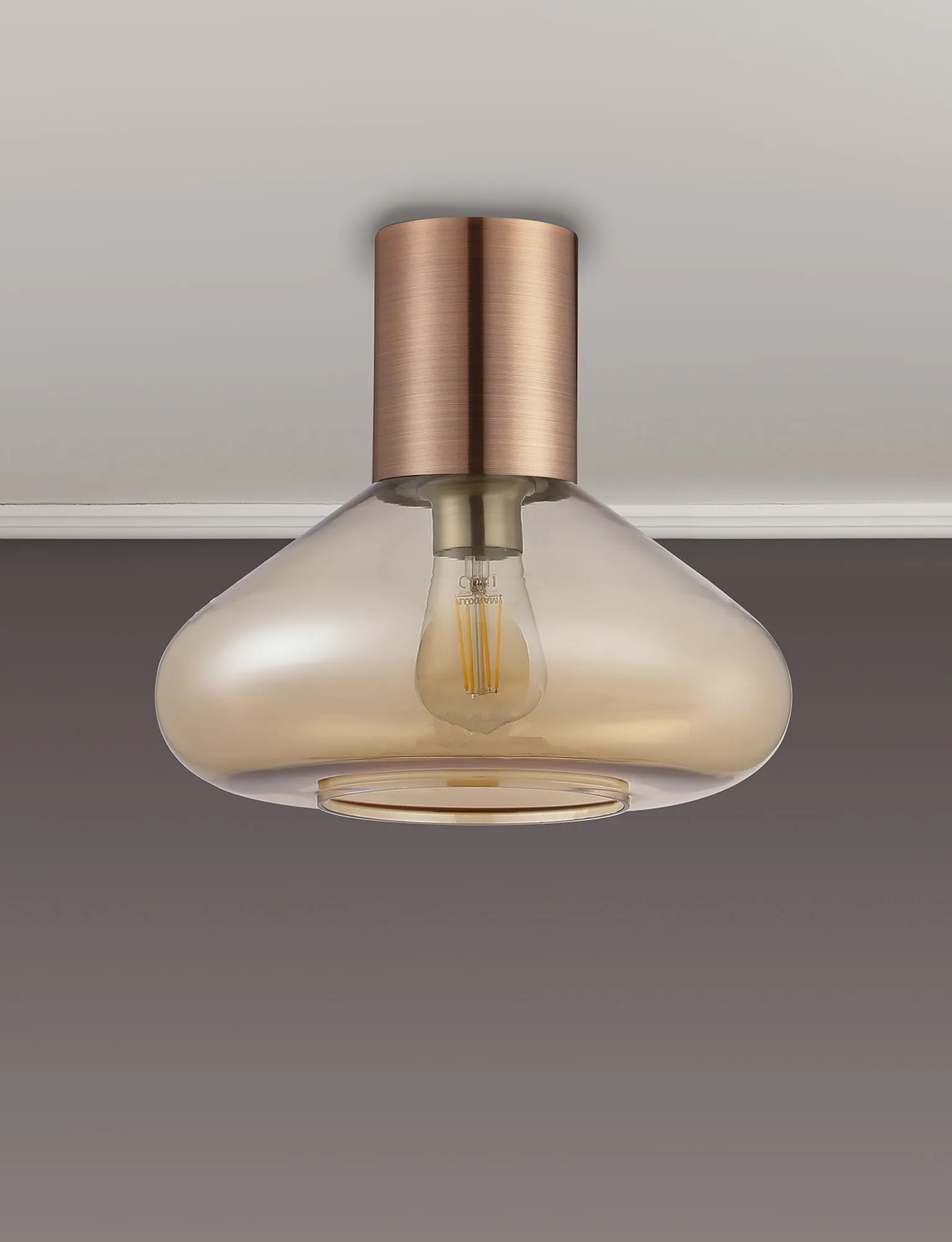 Clyde 23cm Ceiling Light With Narrow Glass, 1 x E27, Antique Copper/Amber
