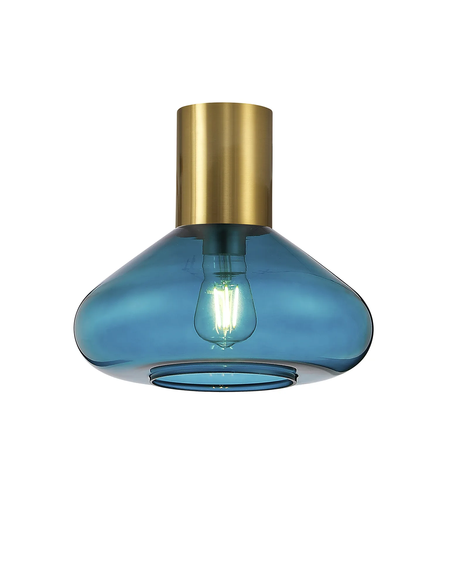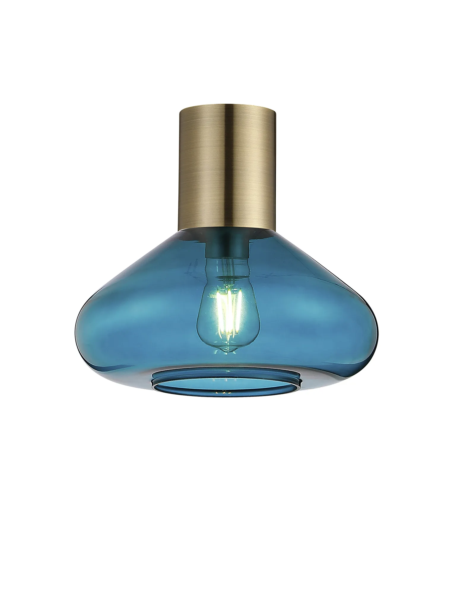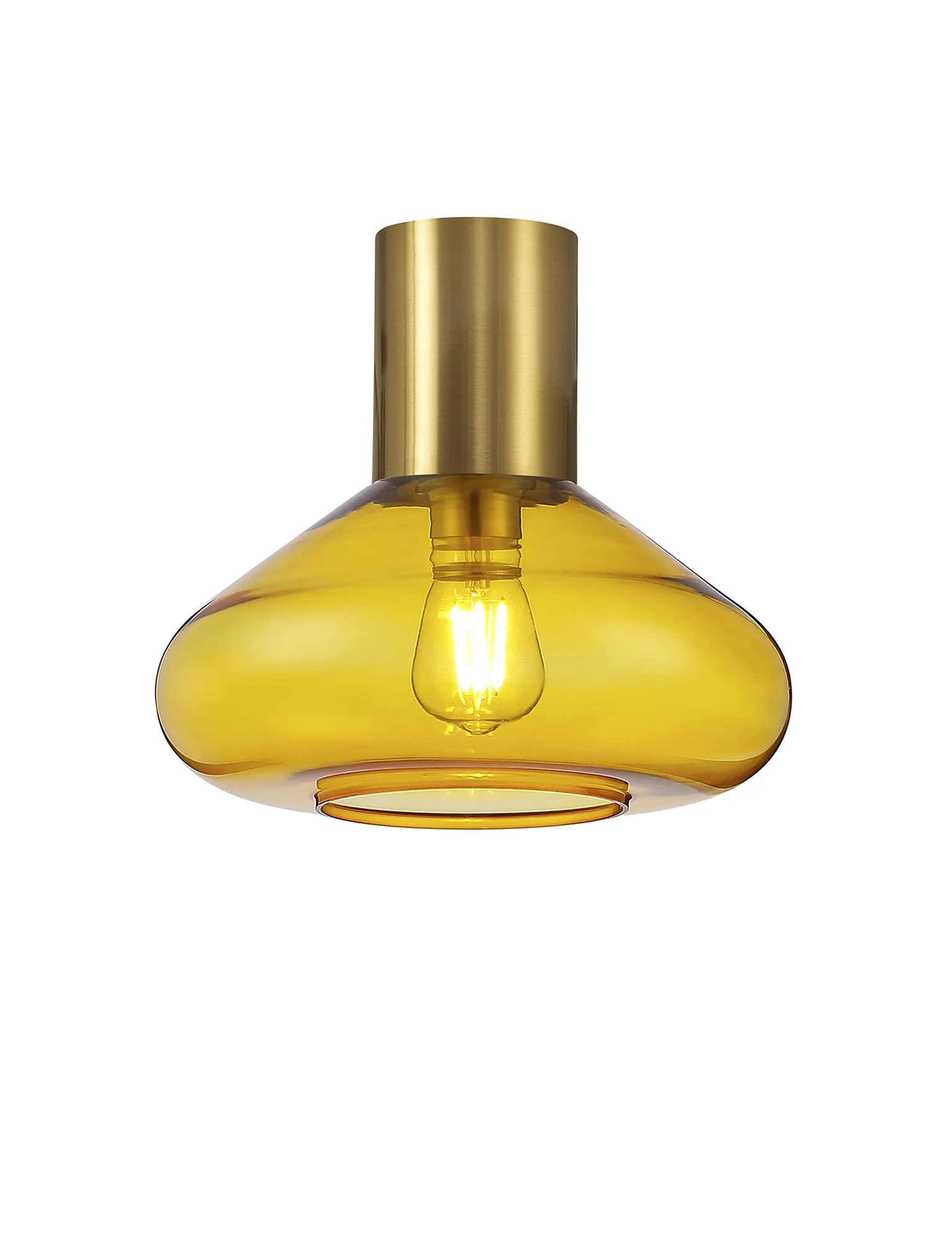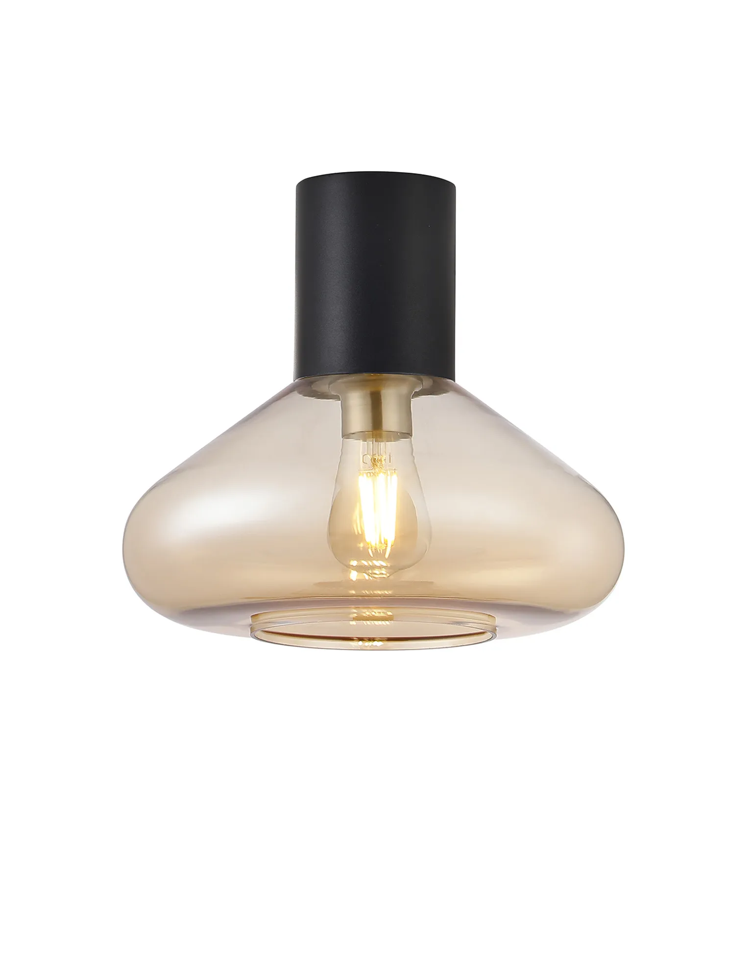 Clyde 23cm Ceiling Light With Narrow Glass, 1 x E27, Antique Copper/Amber