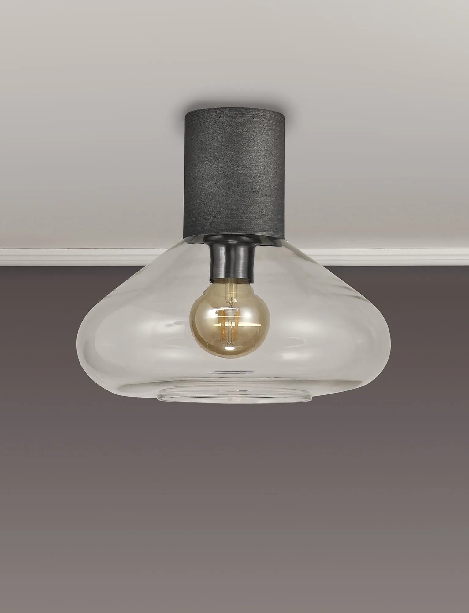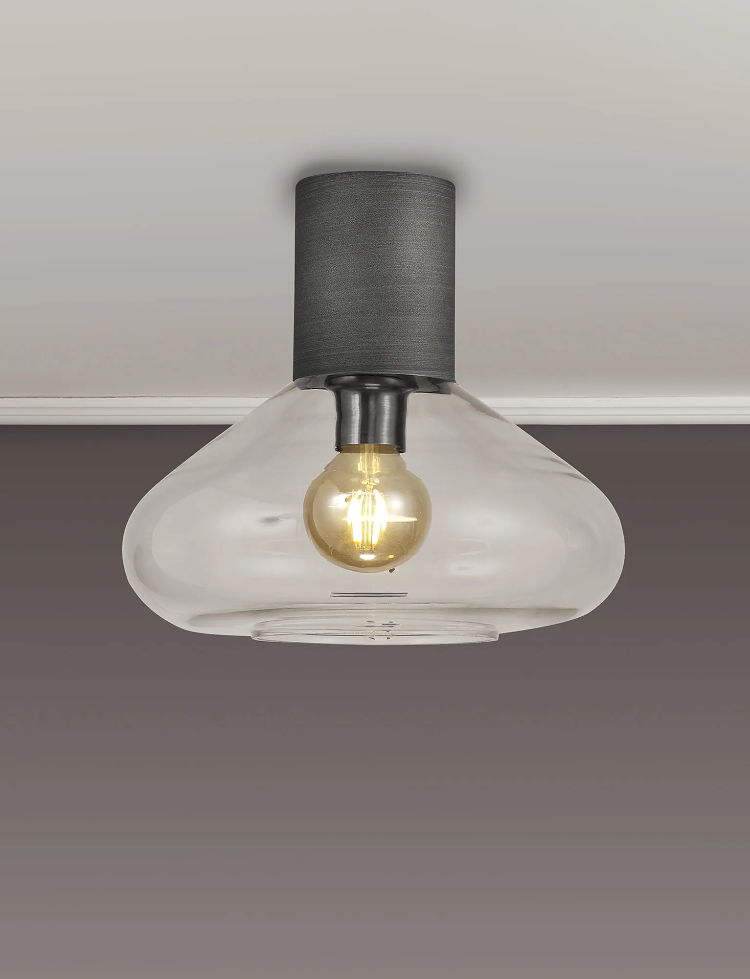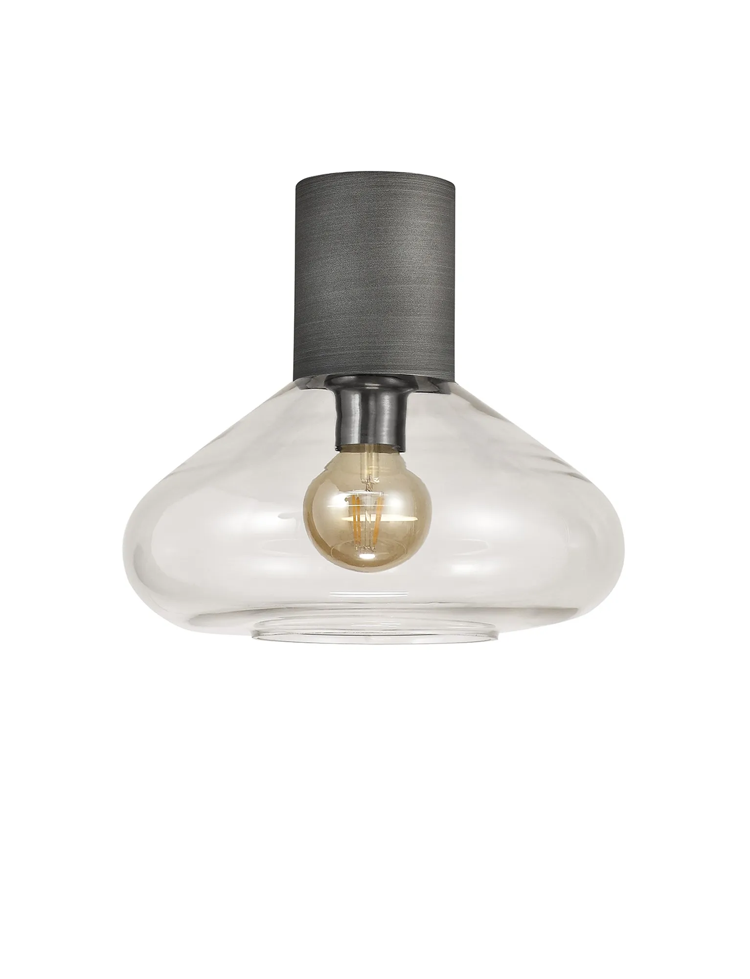 Clyde Ceiling Light With Narrow Glass, 1 x E27, Pewter/Clear