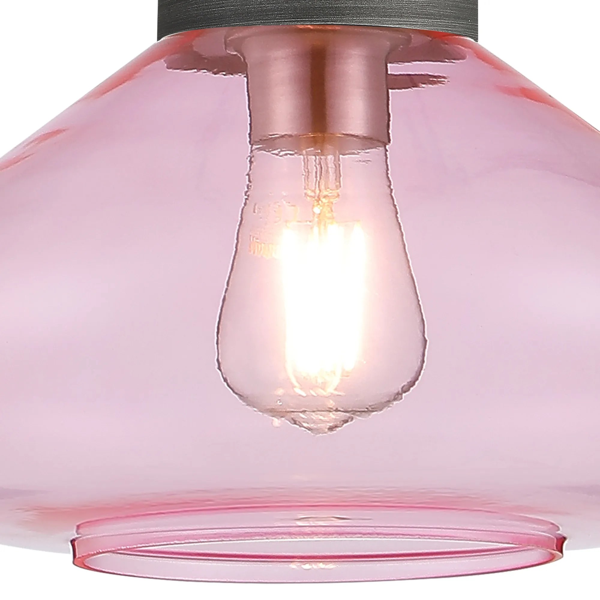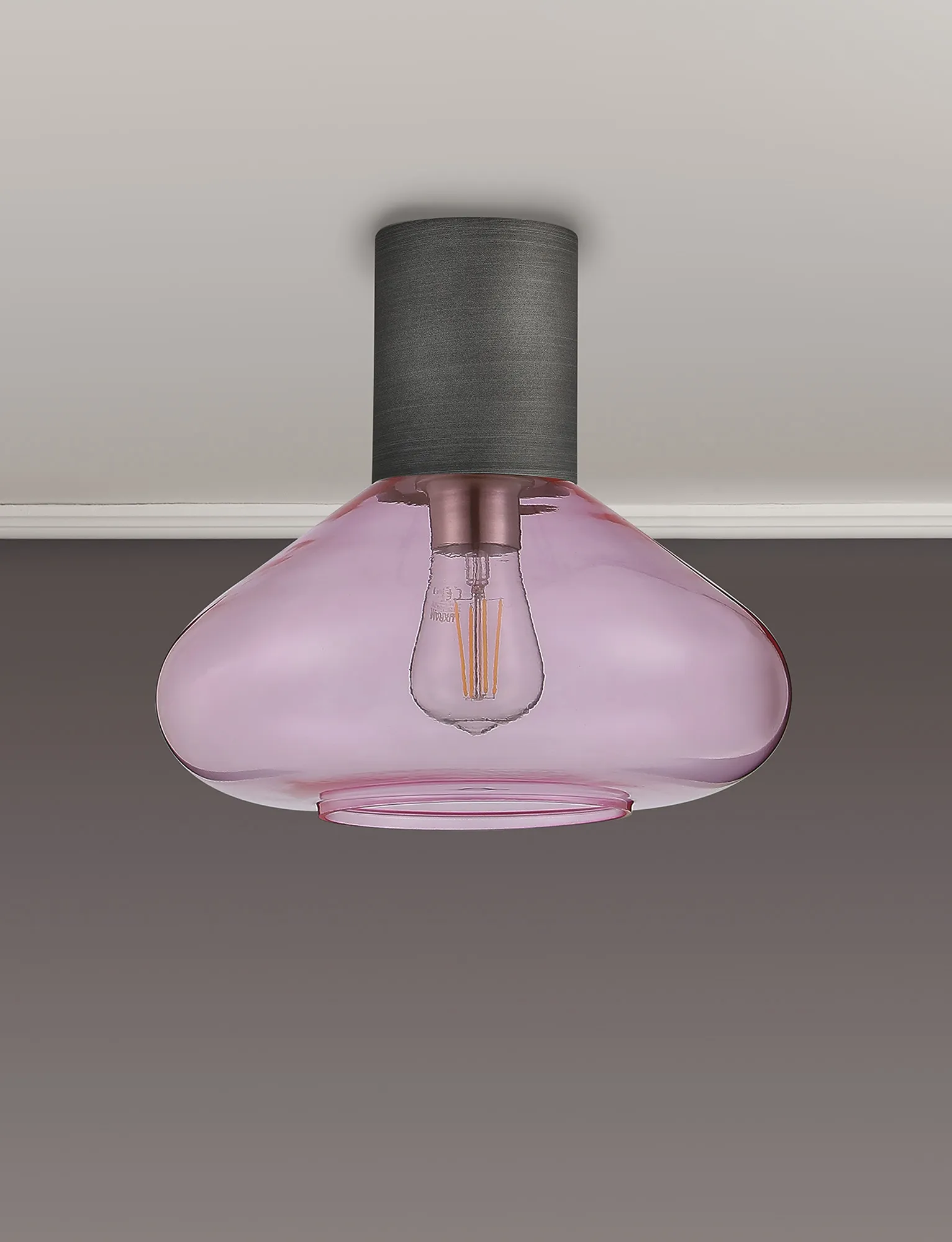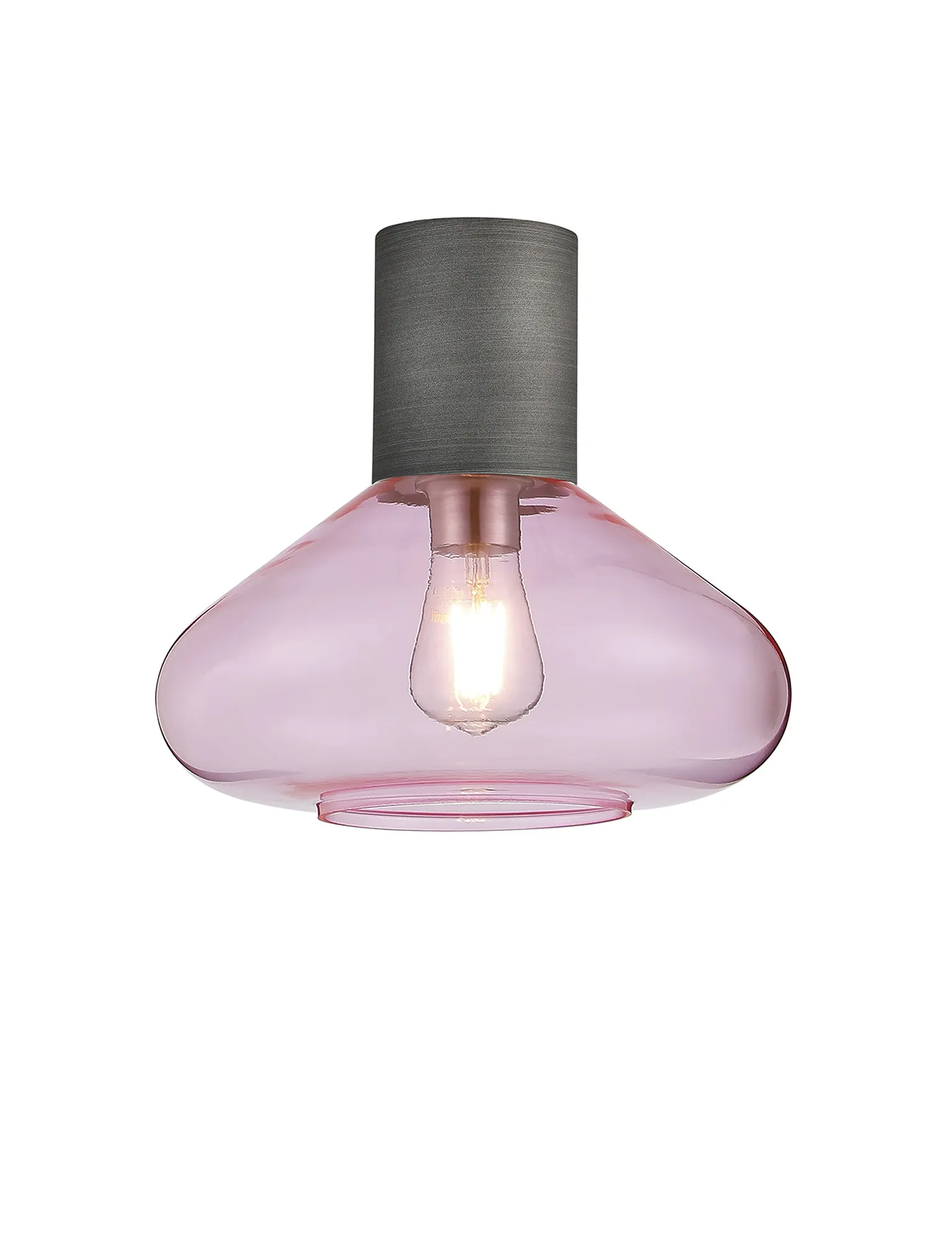 Clyde 23cm Ceiling Light With Narrow Glass, 1 x E27, Pewter/Pink