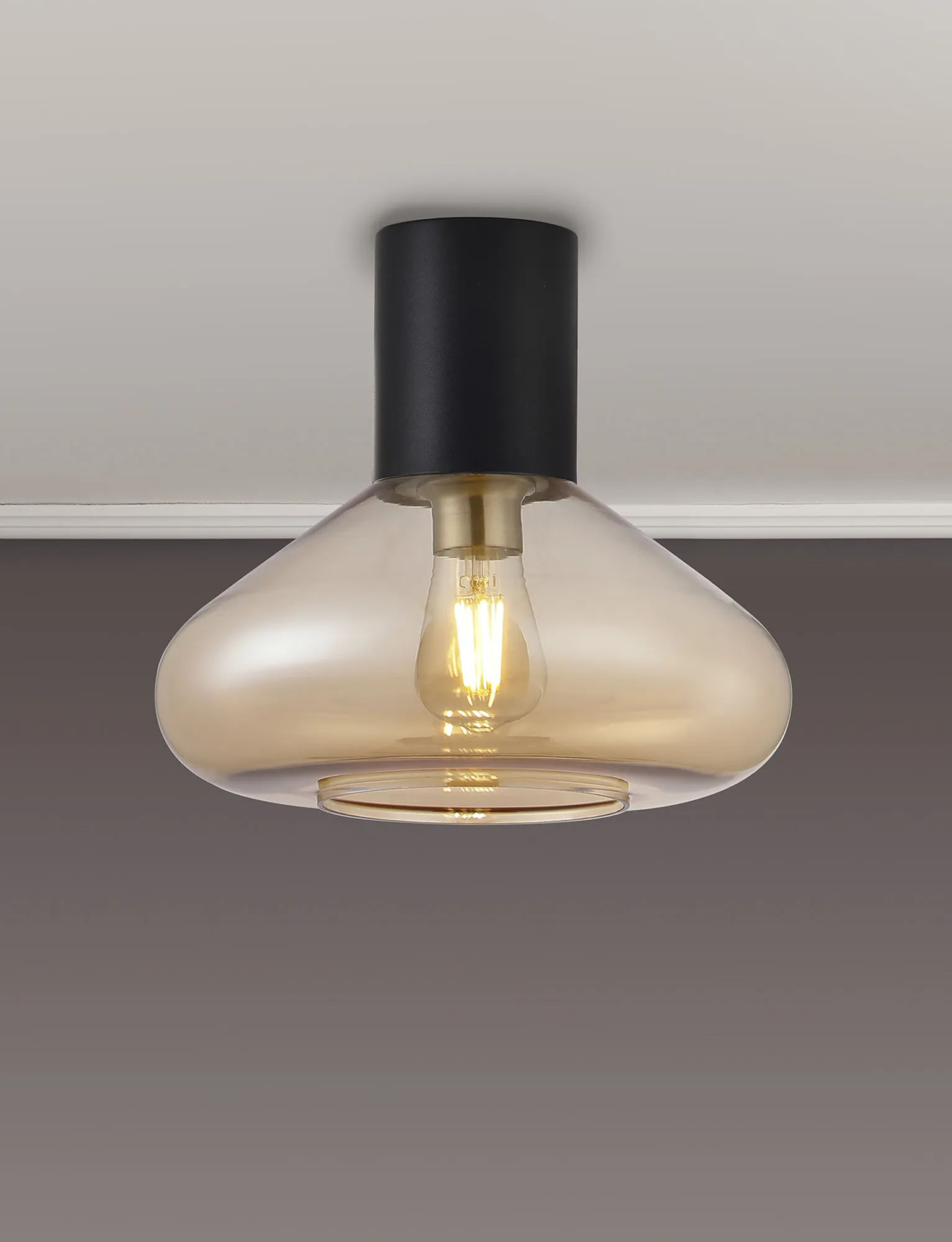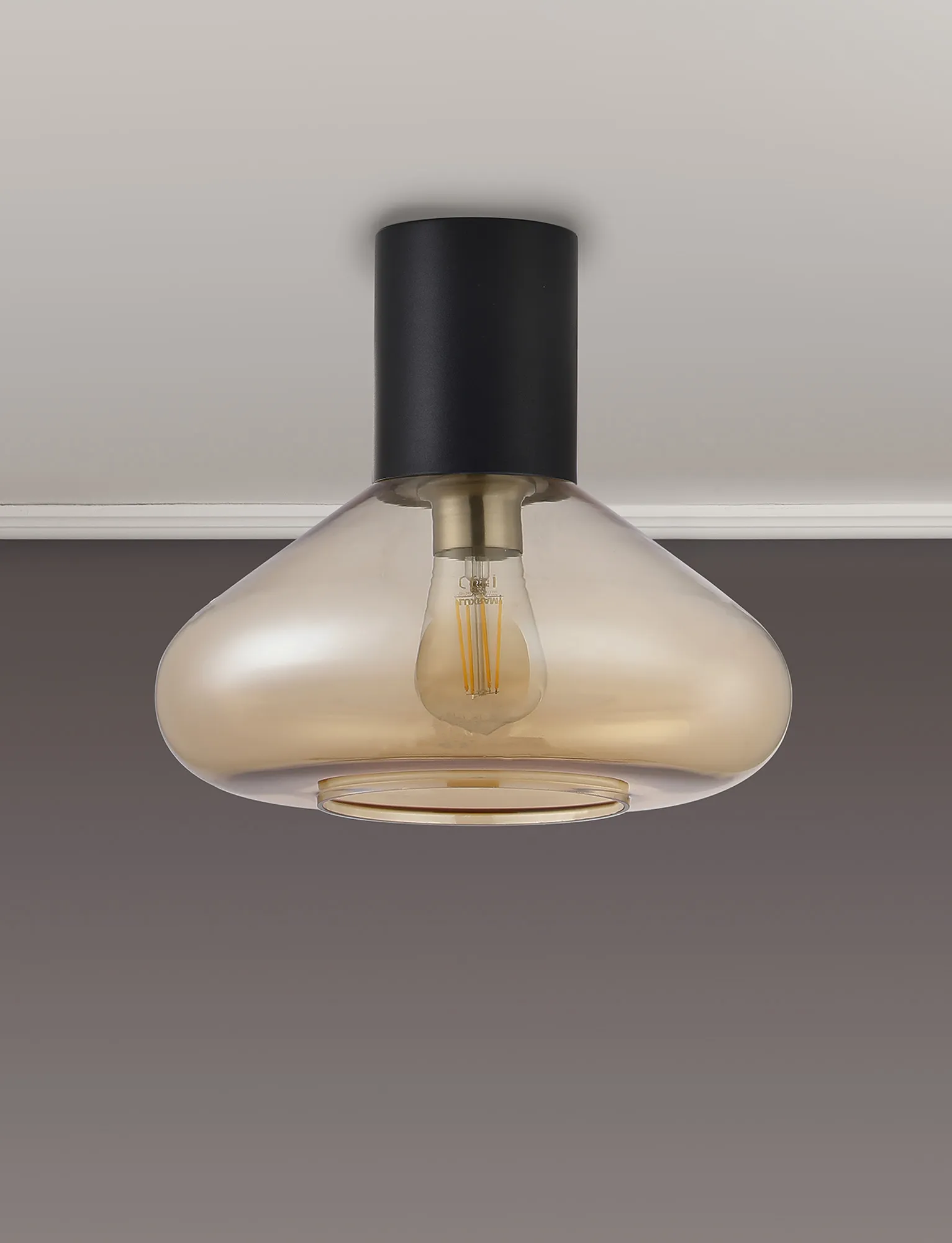 OTHER Clyde Ceiling Light With Wide Glass, 1 x E27, Satin Black/Amber