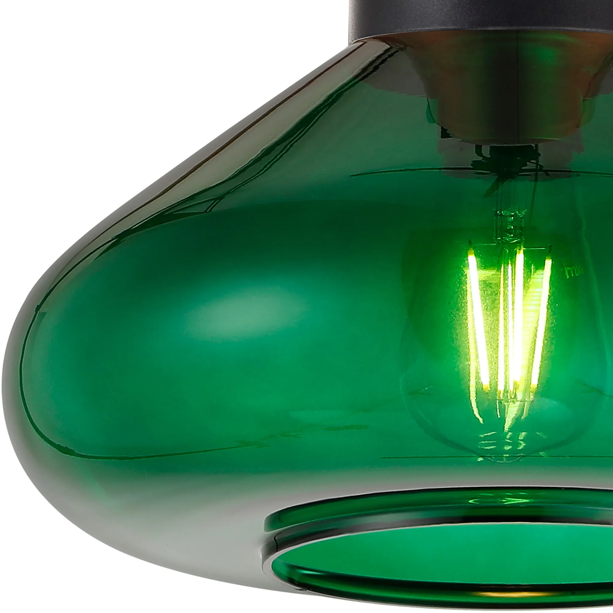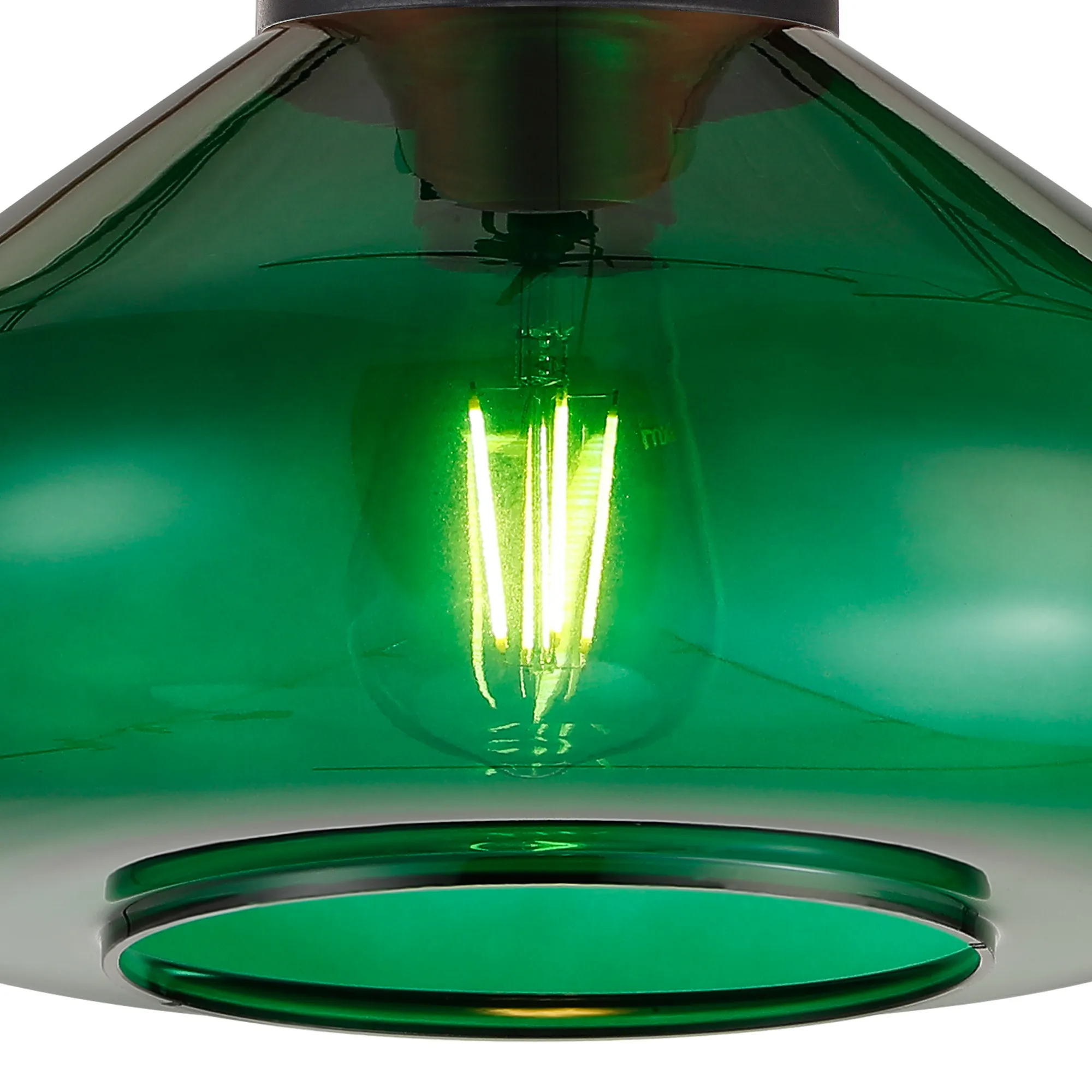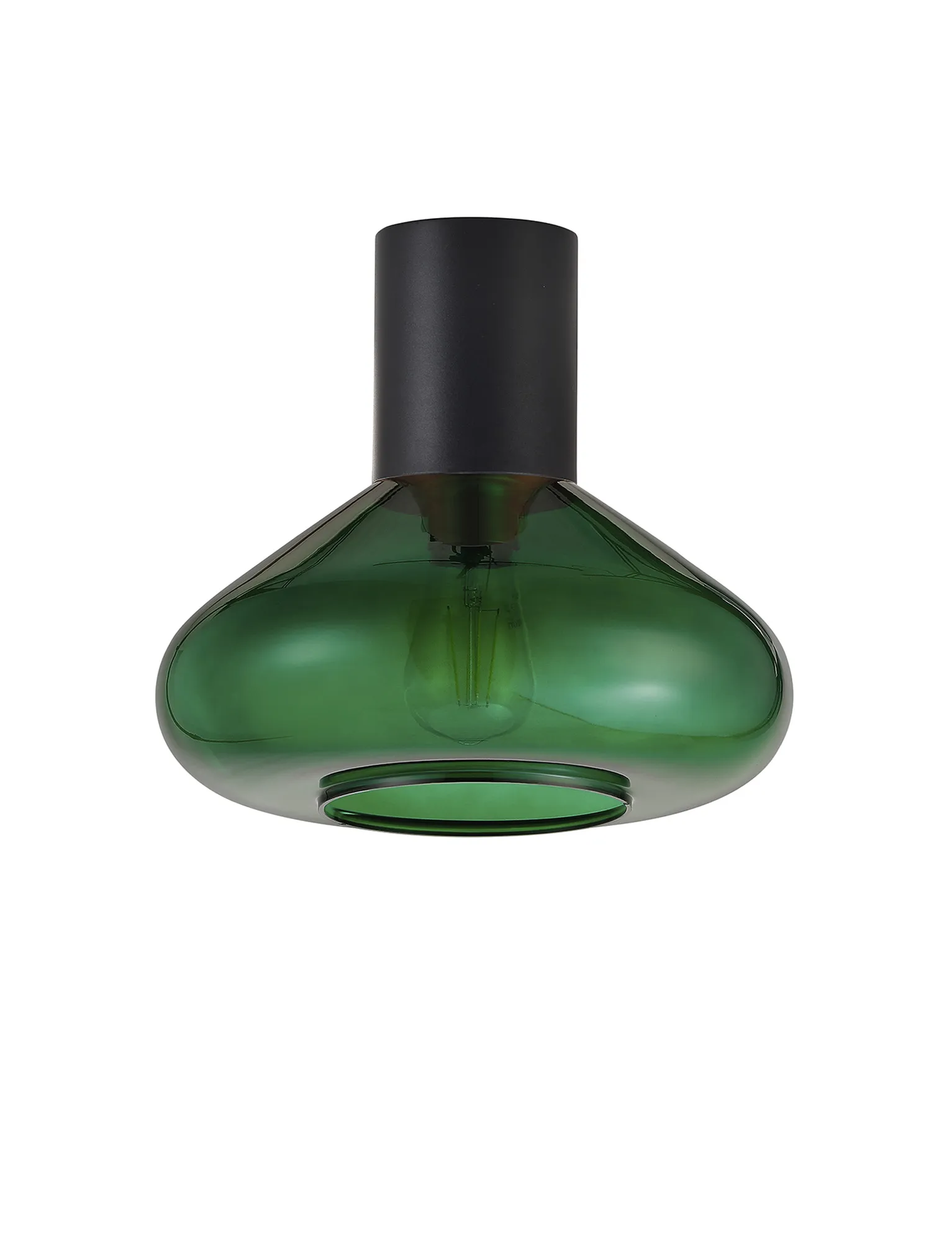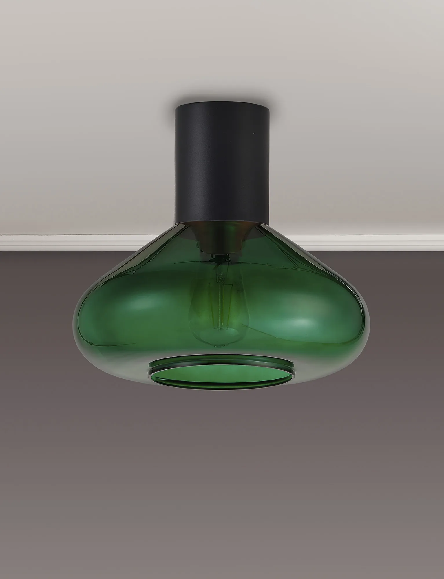 Clyde 23cm Ceiling Light With Narrow Glass, 1 x E27, Satin Black/Bottle Green