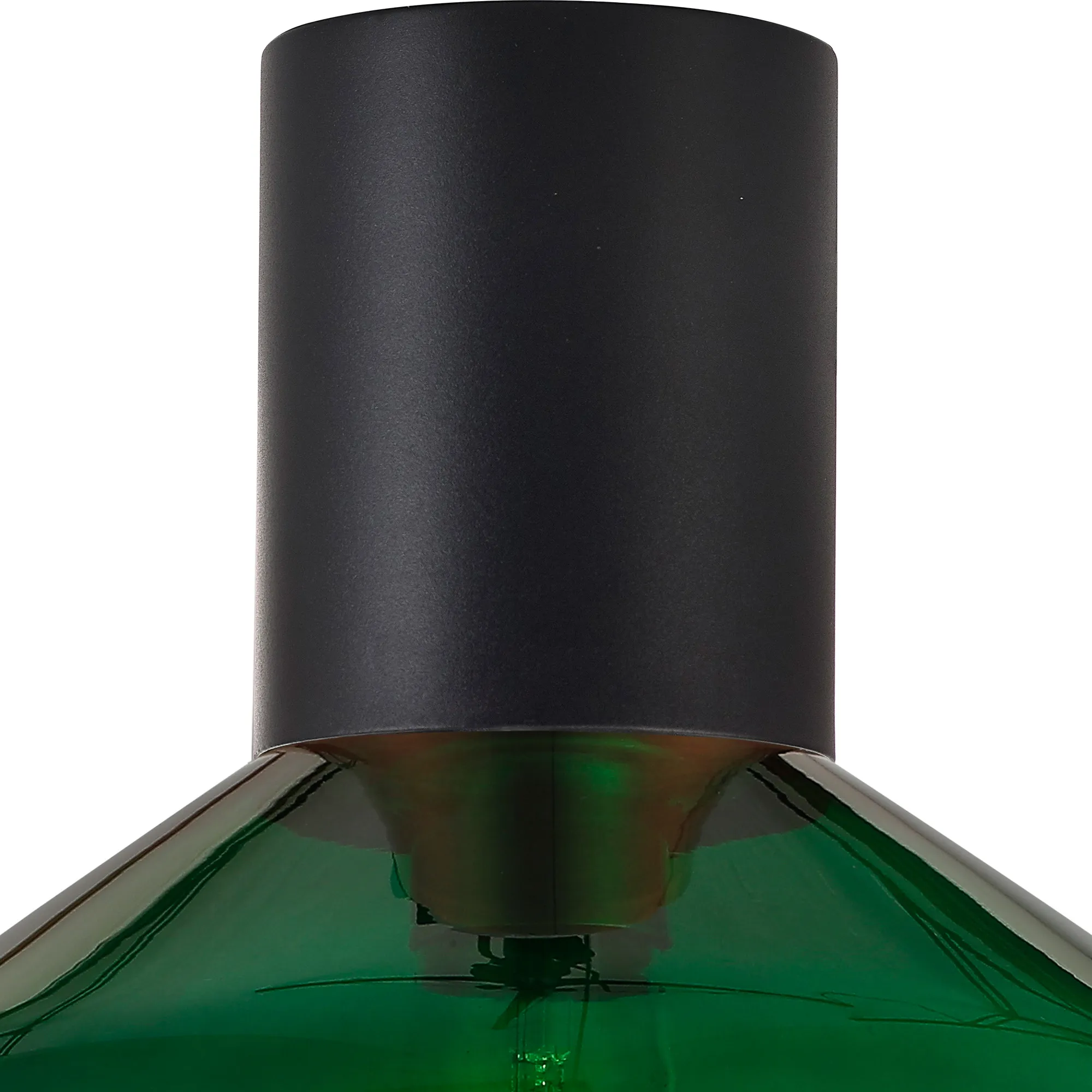 Clyde Ceiling Light With Narrow Glass, 1 x E27, Satin Black/Bottle Green