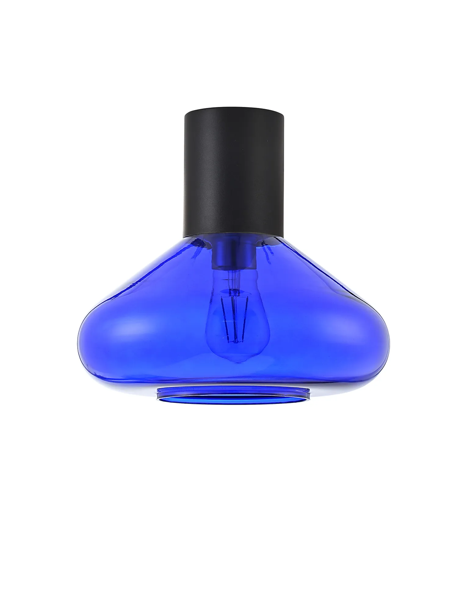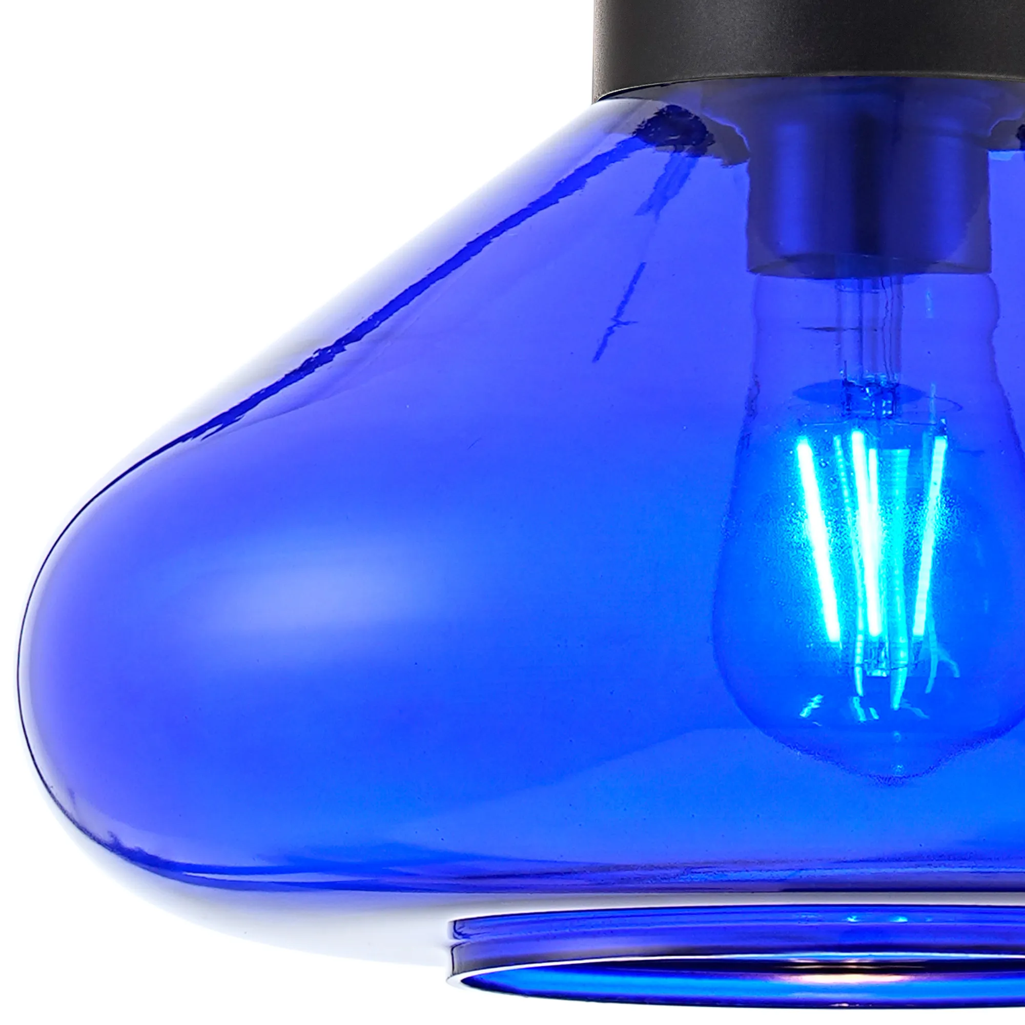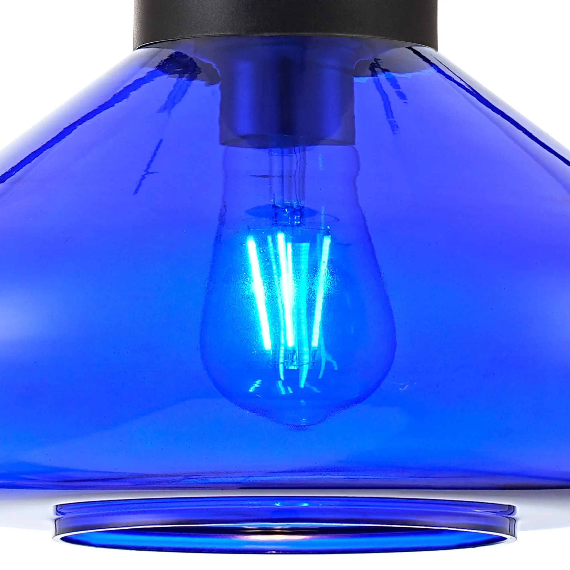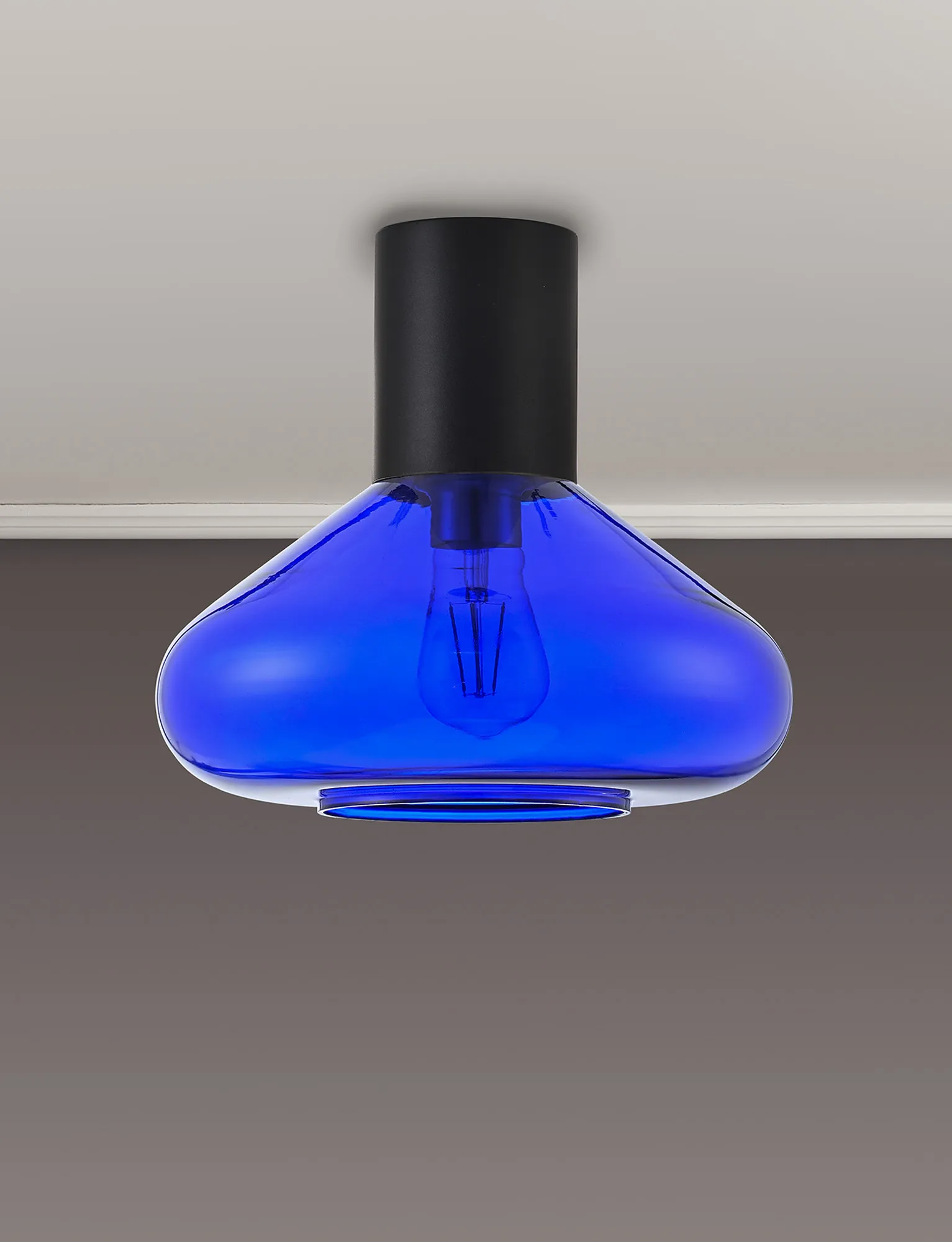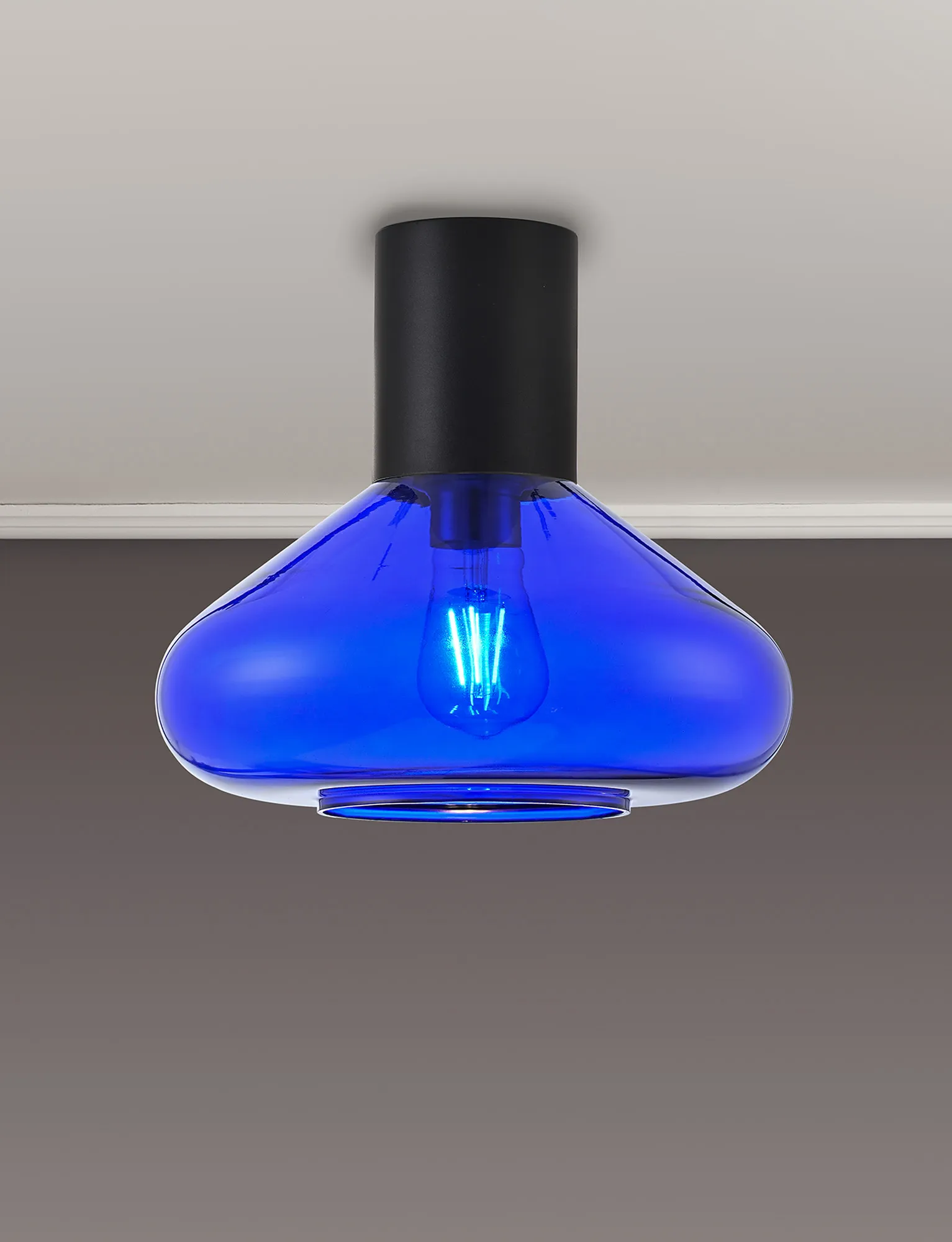 Clyde 23cm Ceiling Light With Narrow Glass, 1 x E27, Satin Black/Blue Ink