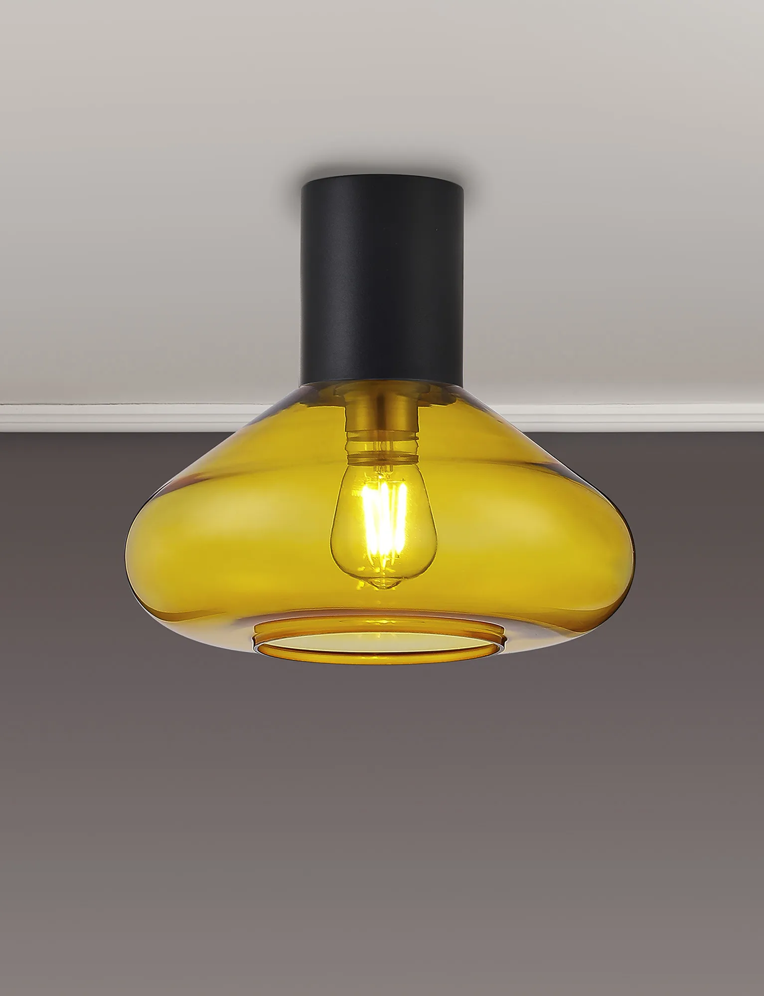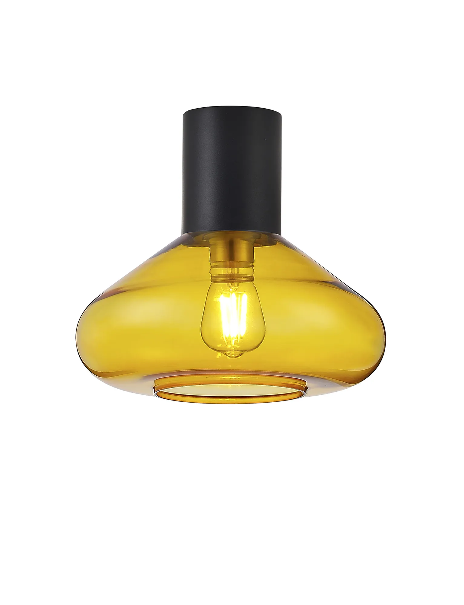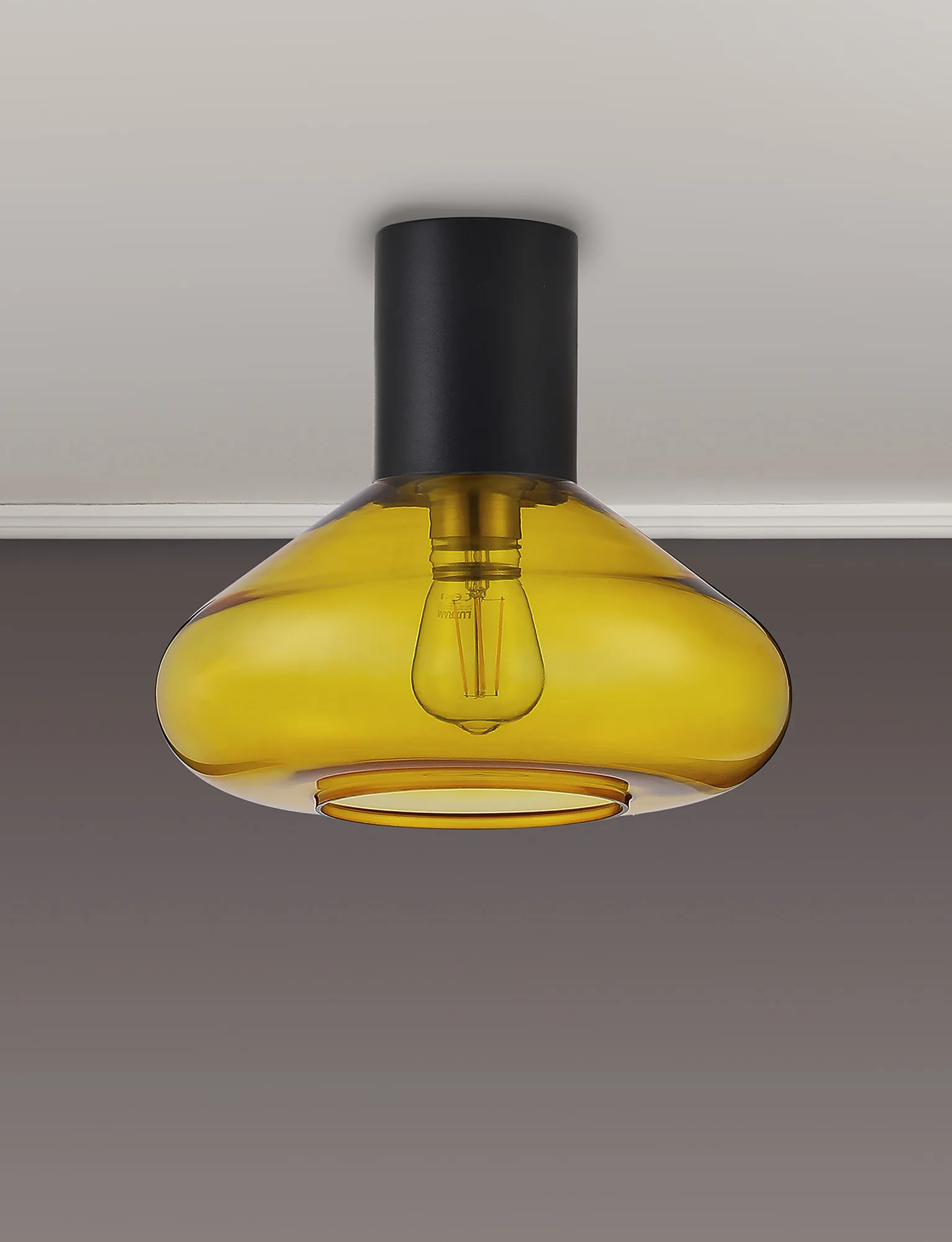 Clyde 23cm Ceiling Light With Narrow Glass, 1 x E27, Satin Black/Yellow