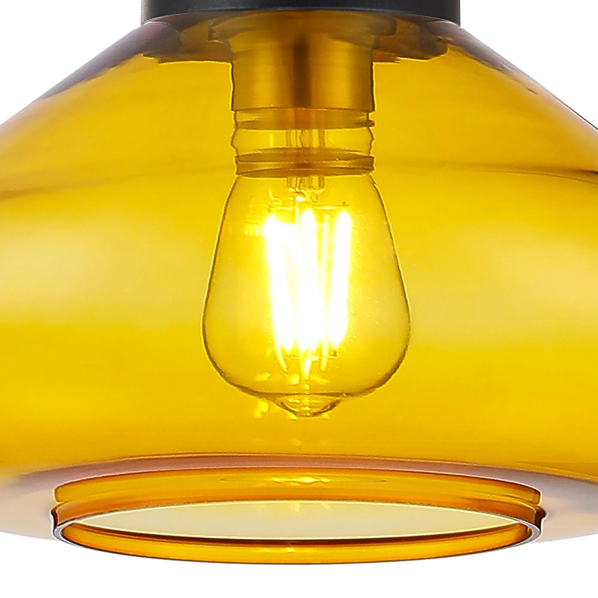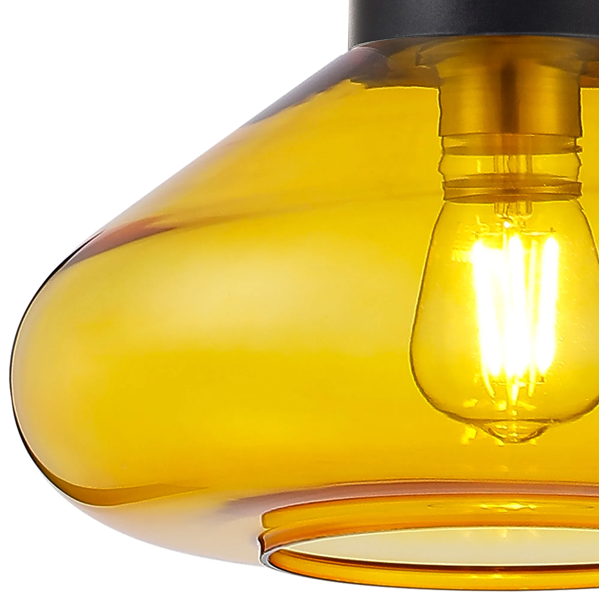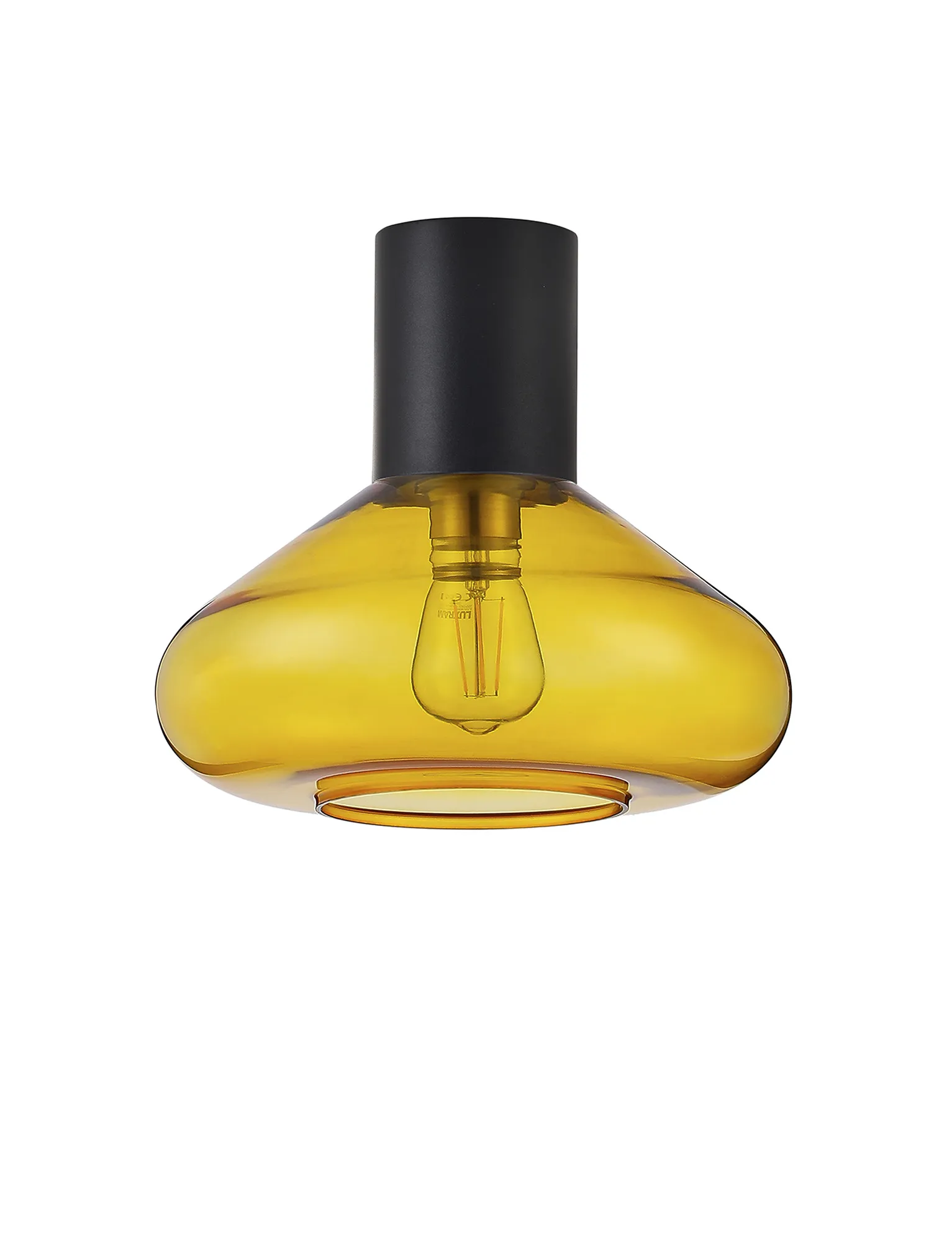 Clyde 23cm Ceiling Light With Narrow Glass, 1 x E27, Satin Black/Yellow