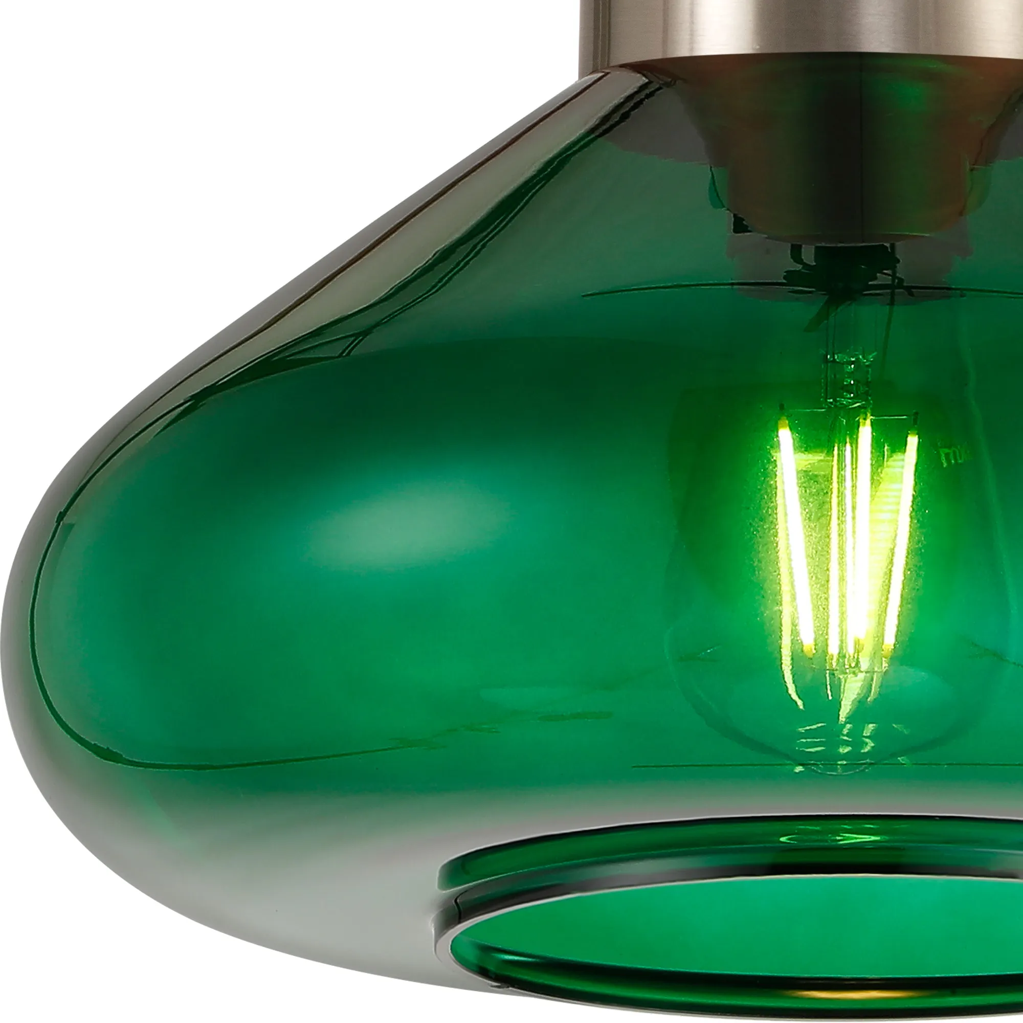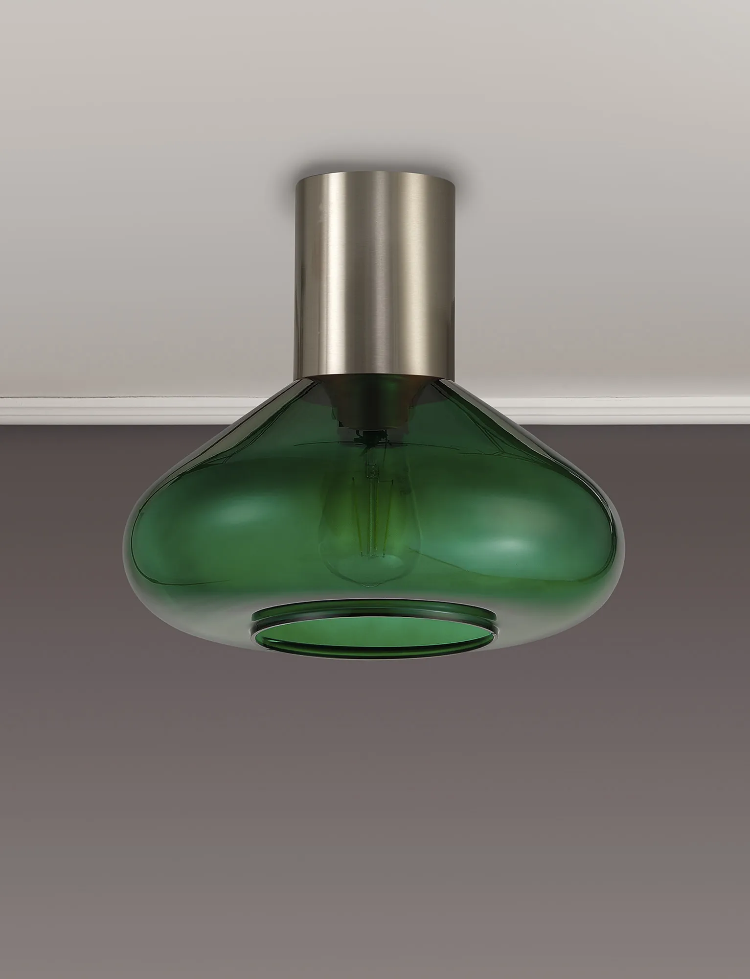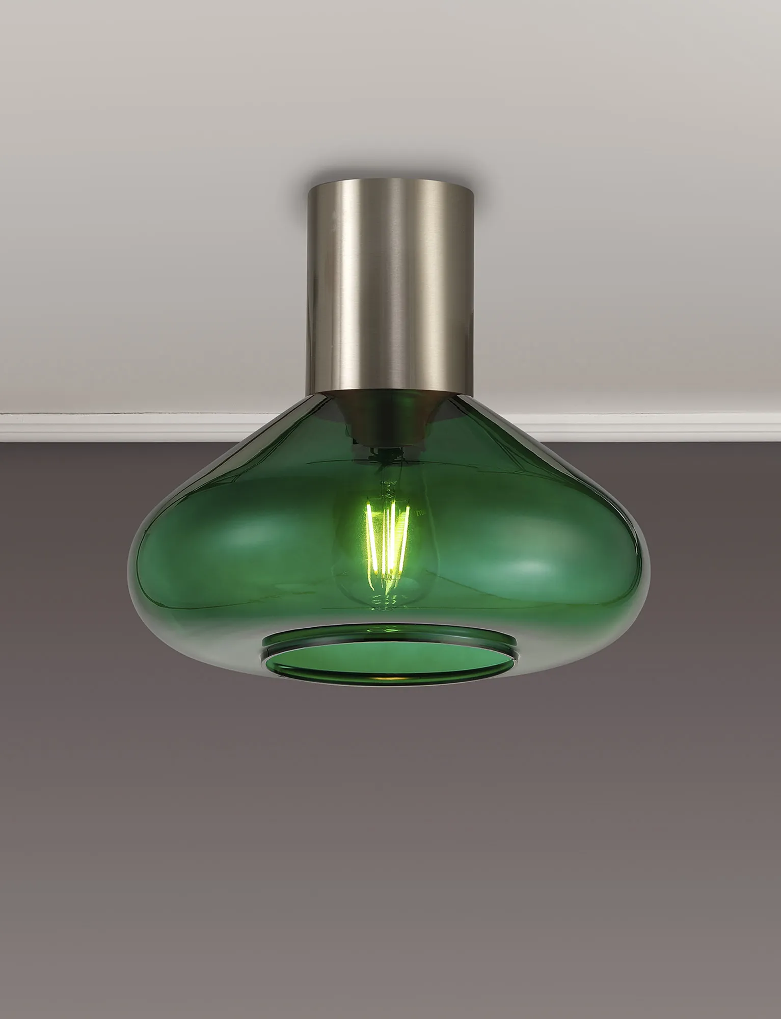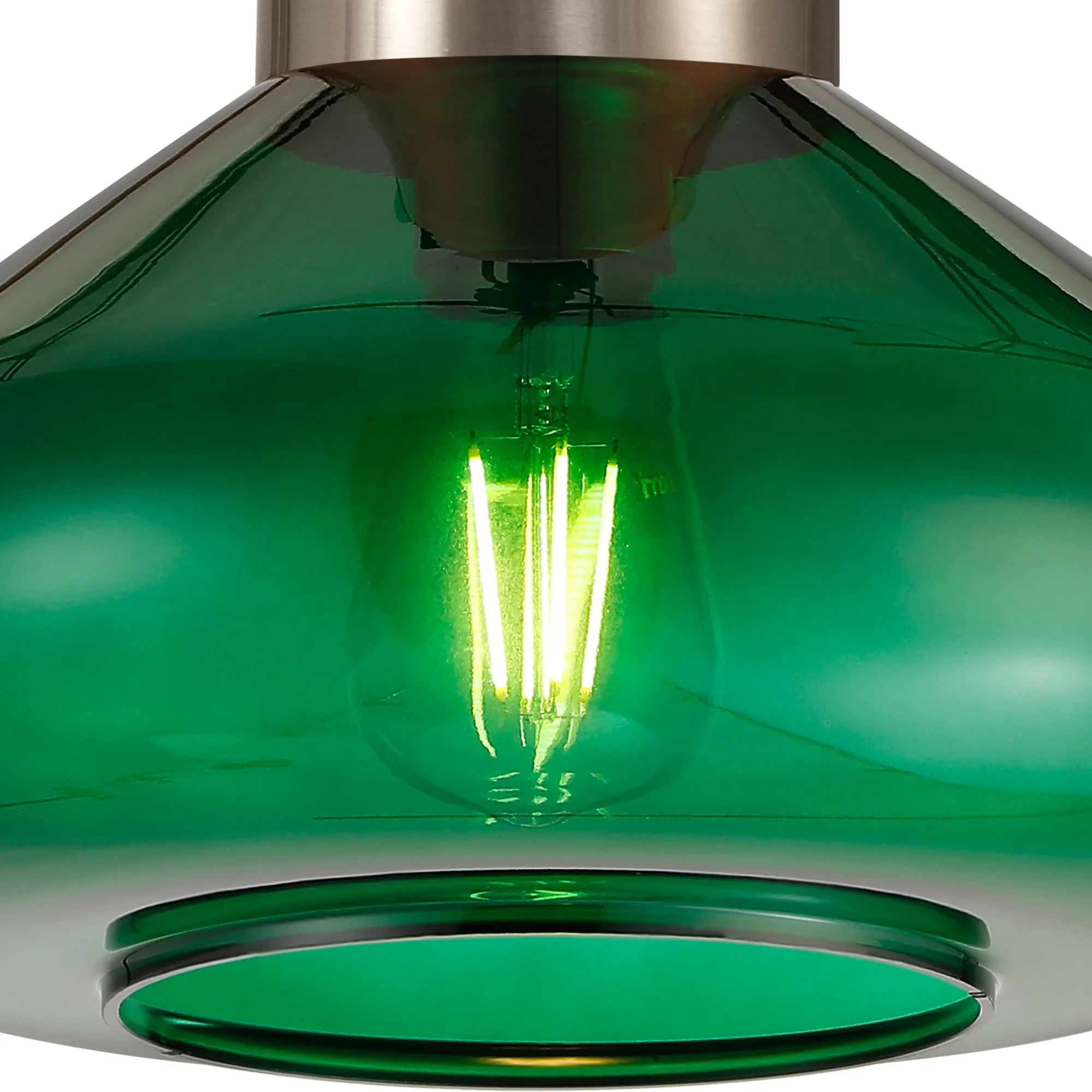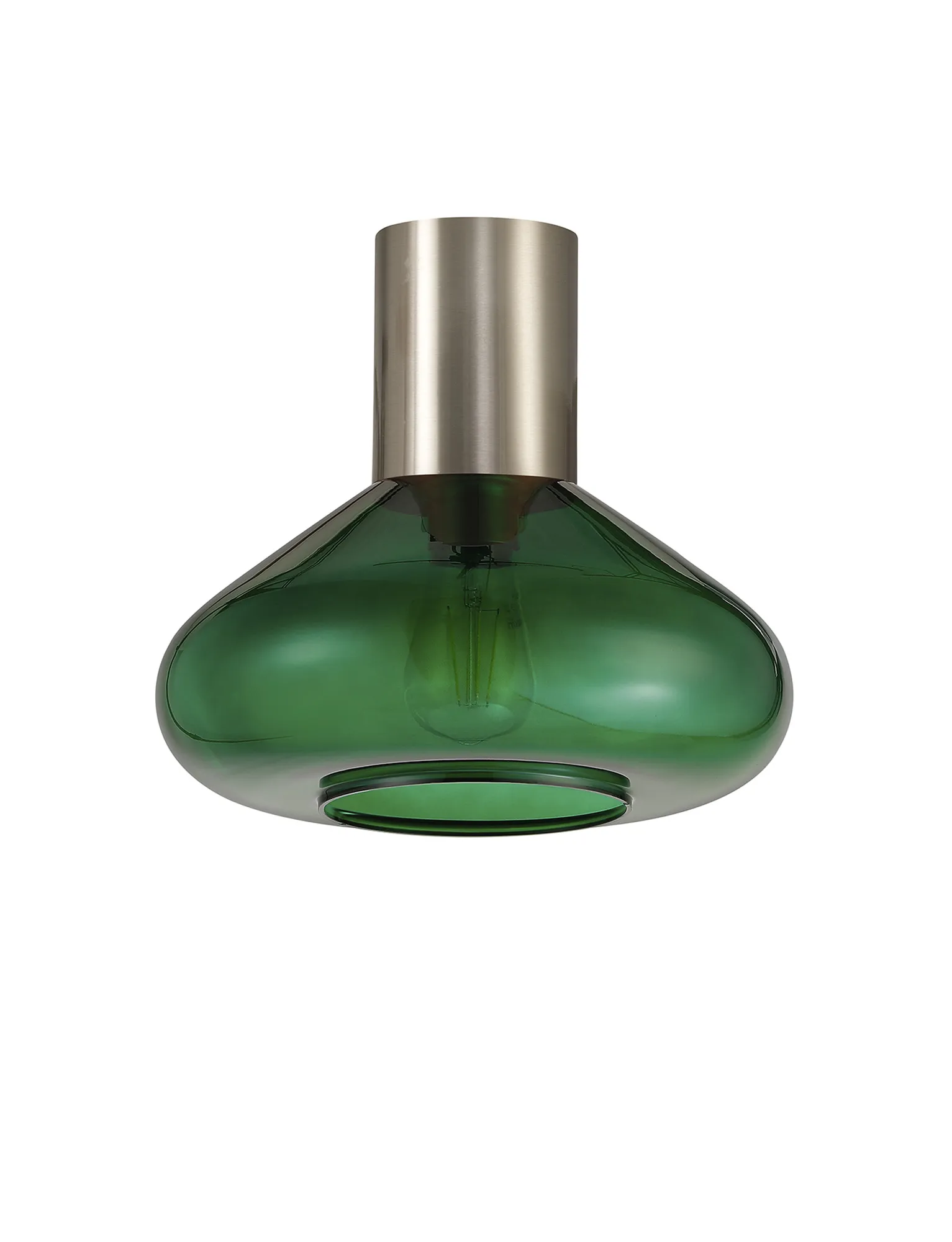 Clyde 23cm Ceiling Light With Narrow Glass, 1 x E27, Satin Nickel/Bottle Green