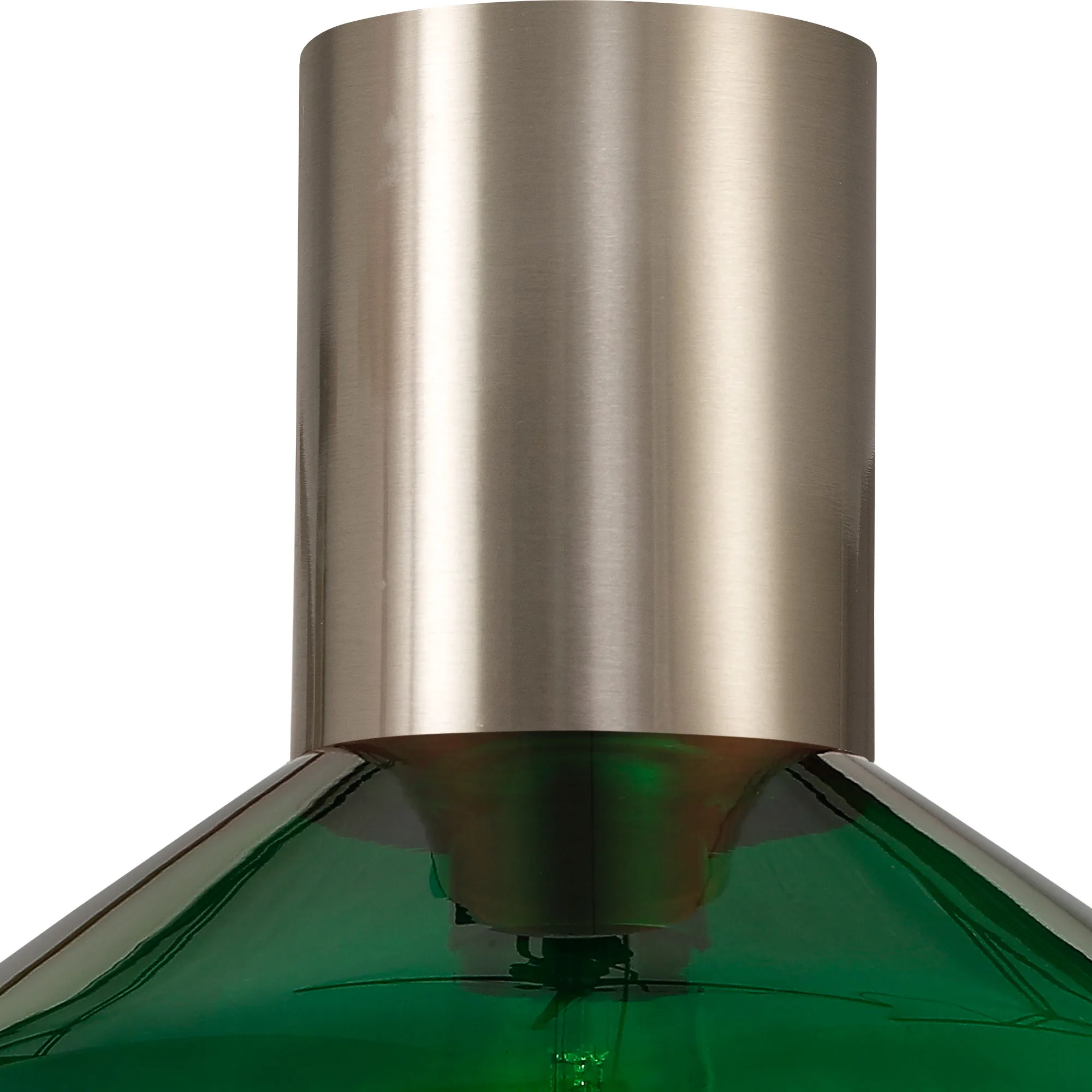 Clyde Ceiling Light With Narrow Glass, 1 x E27, Satin Nickel/Bottle Green