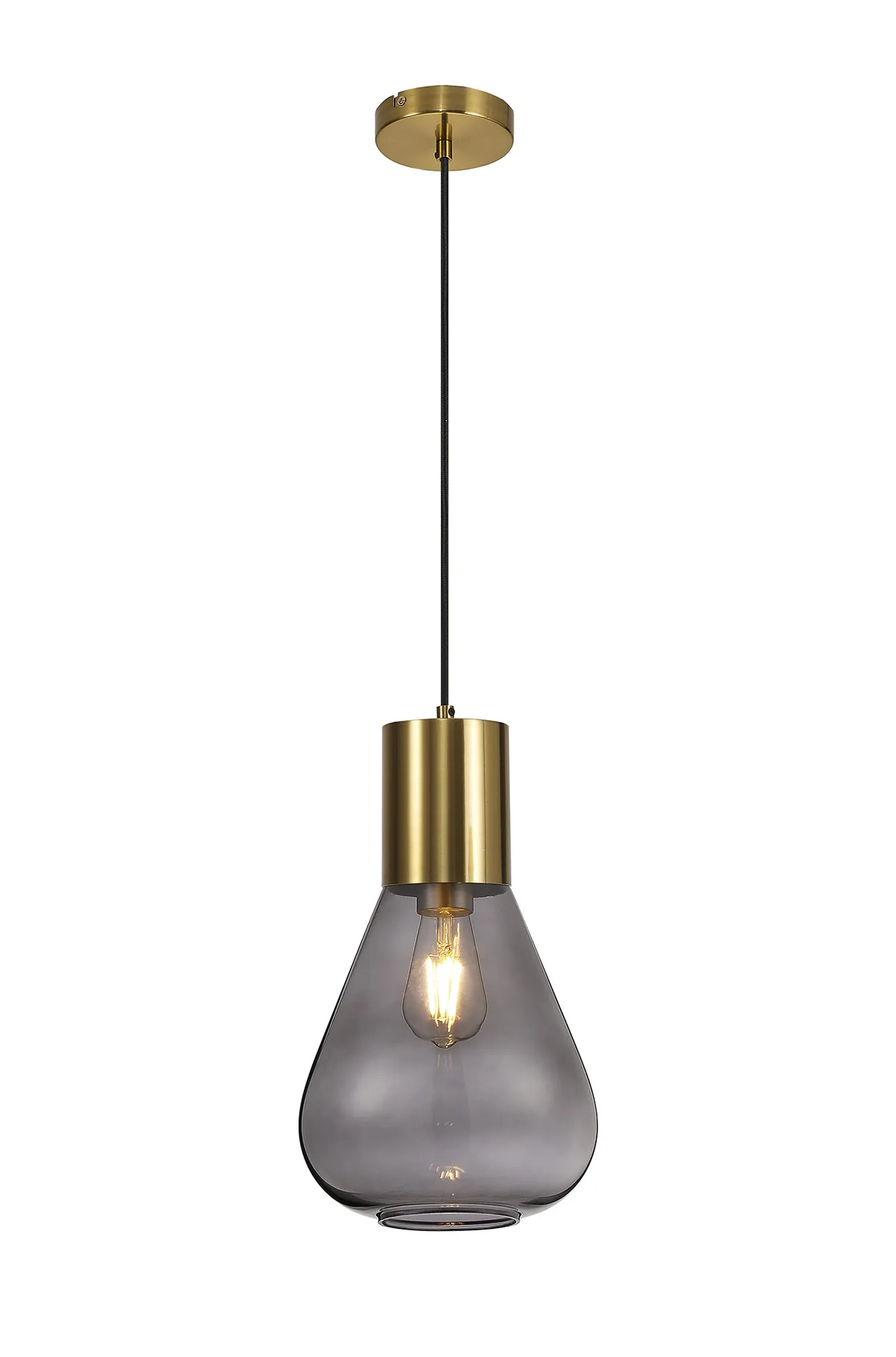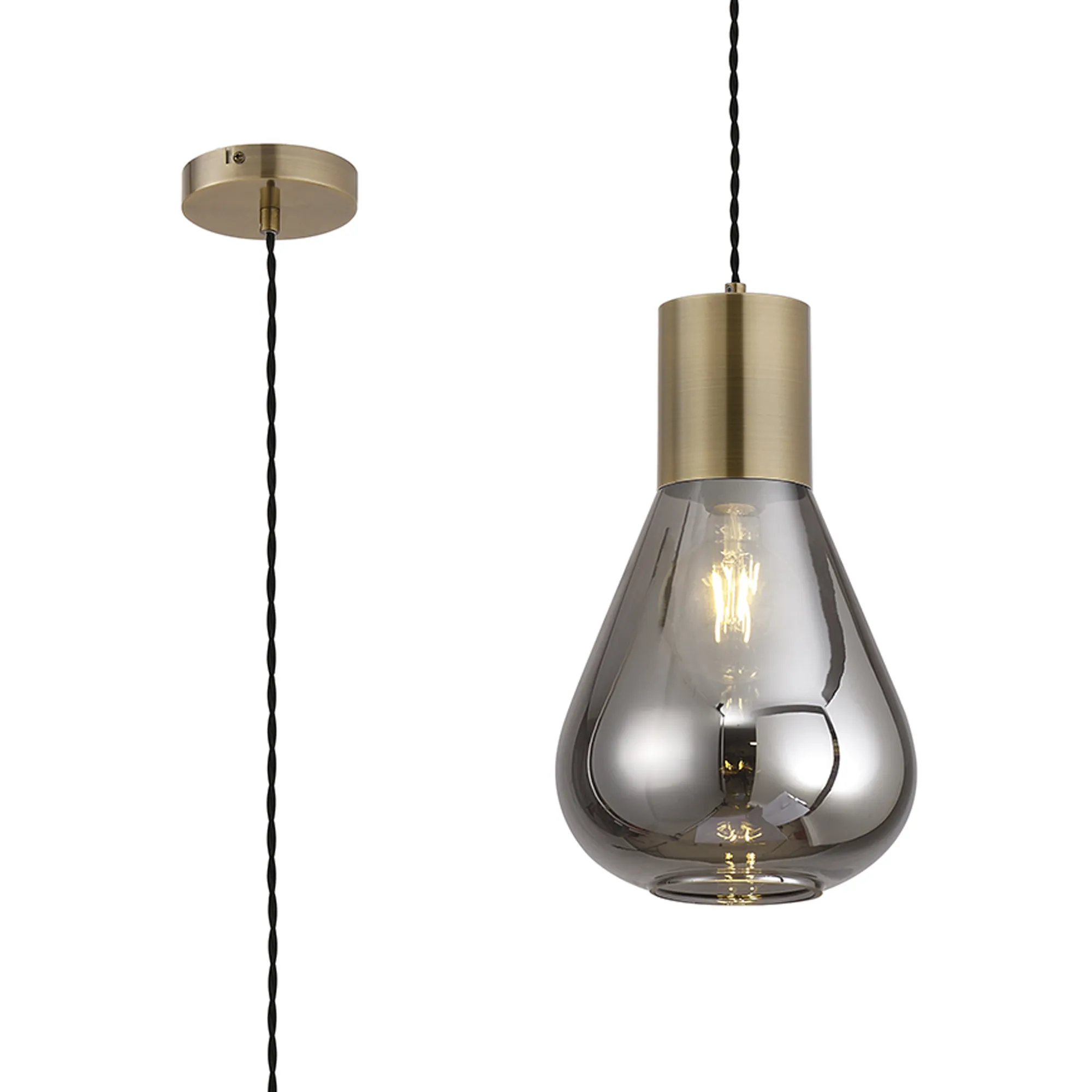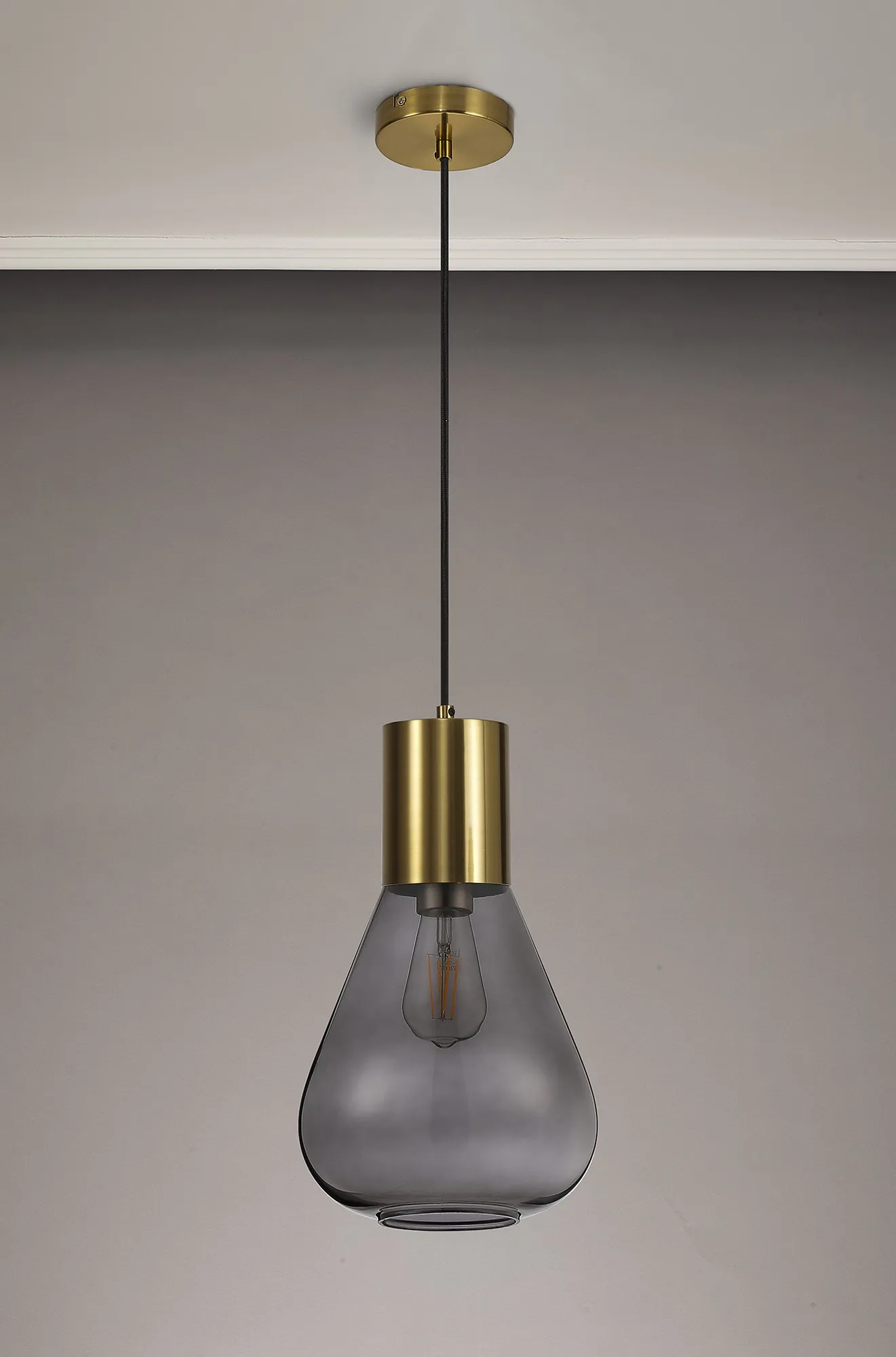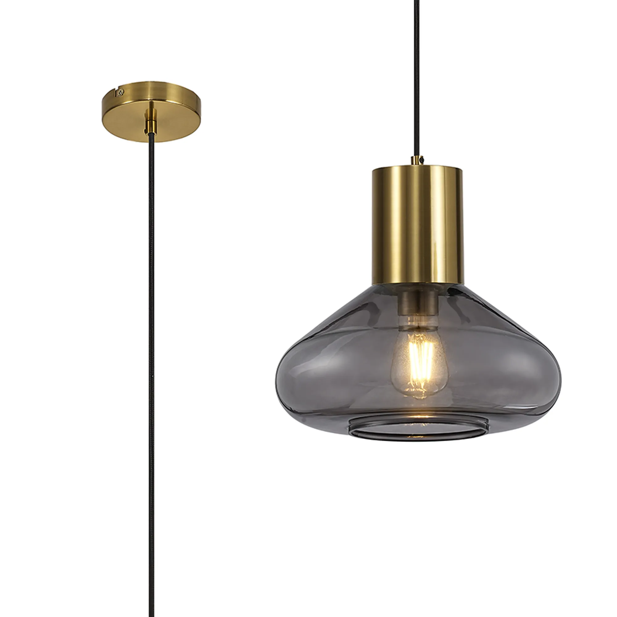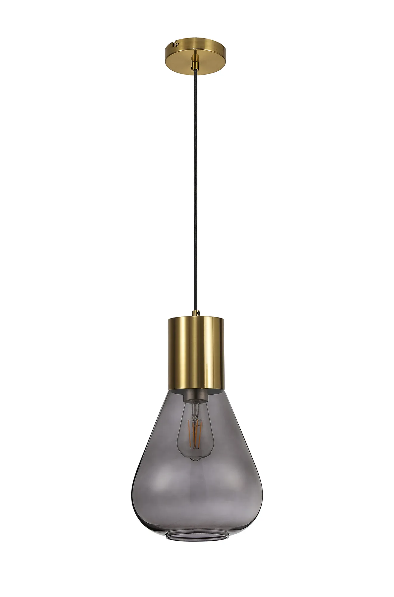 Clyde Ceiling Light With Narrow Glass, 1 x E27, Aged Brass/Inky Black