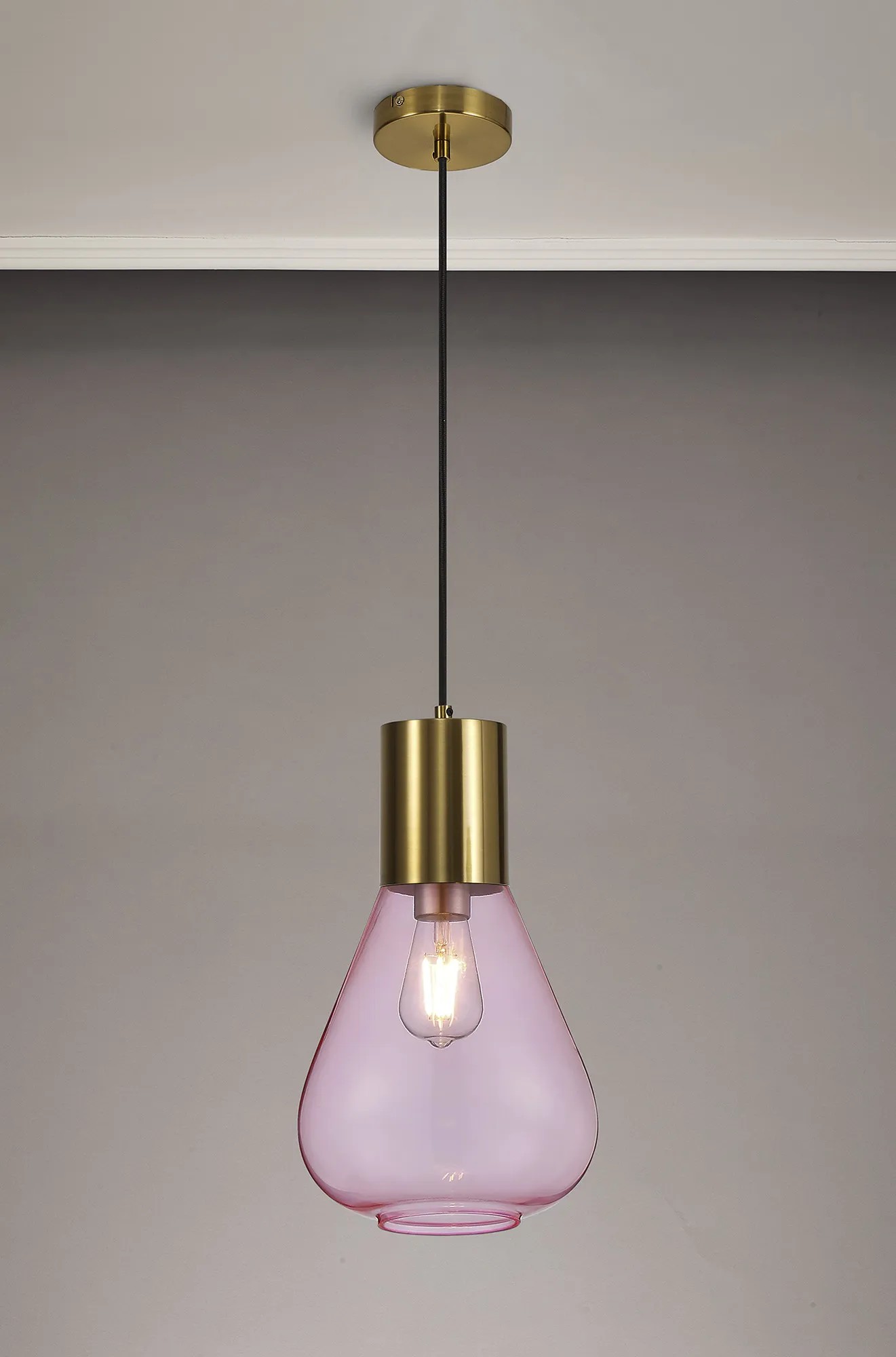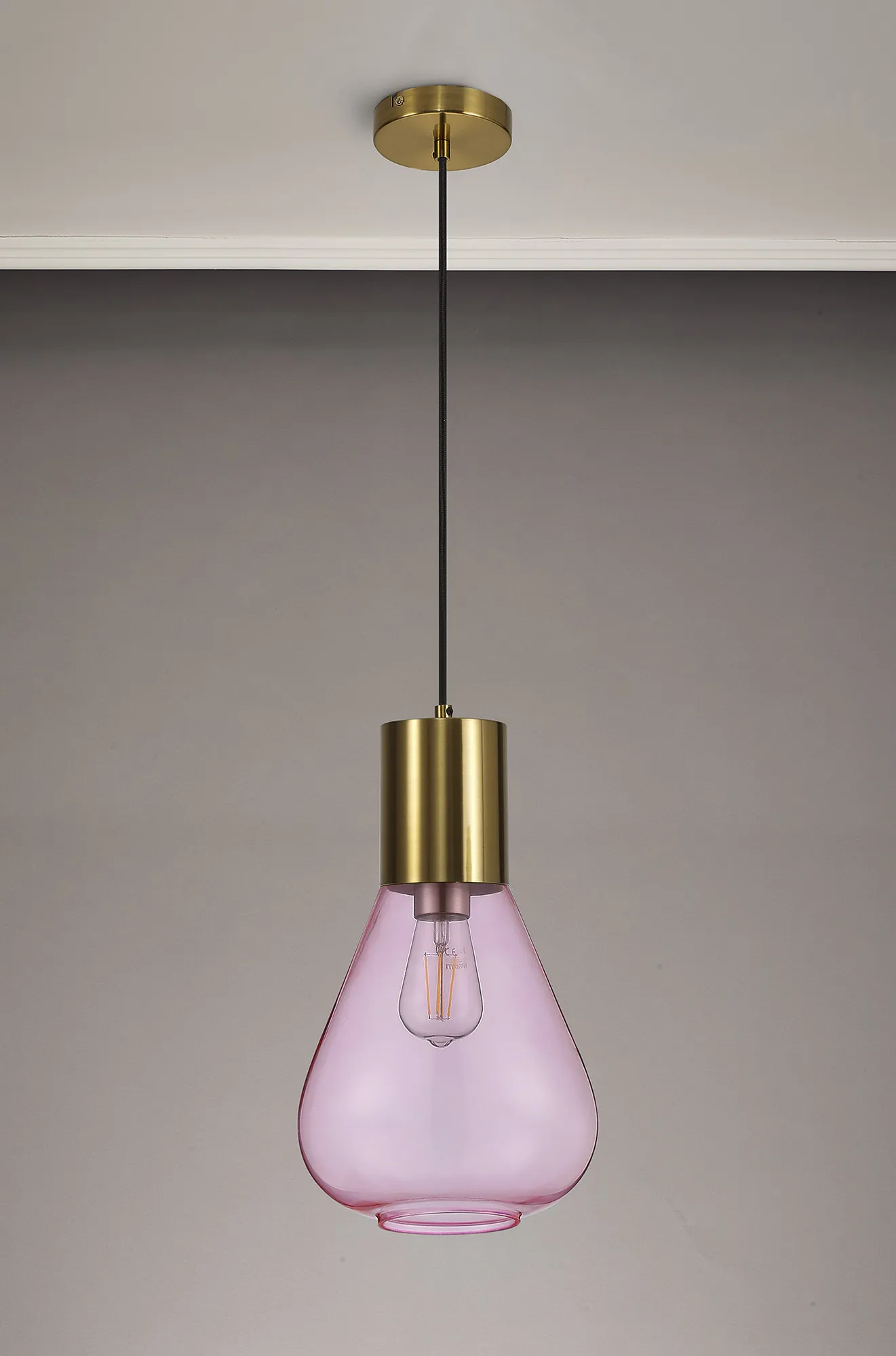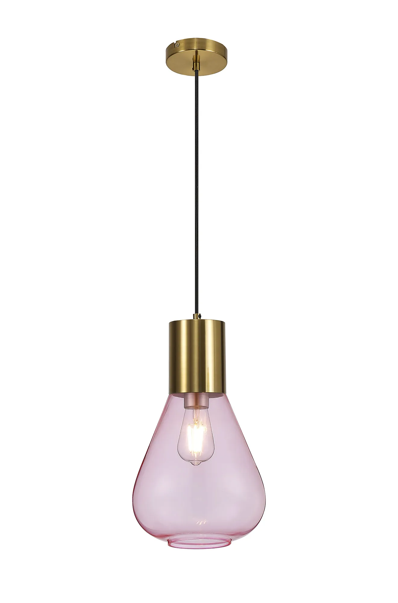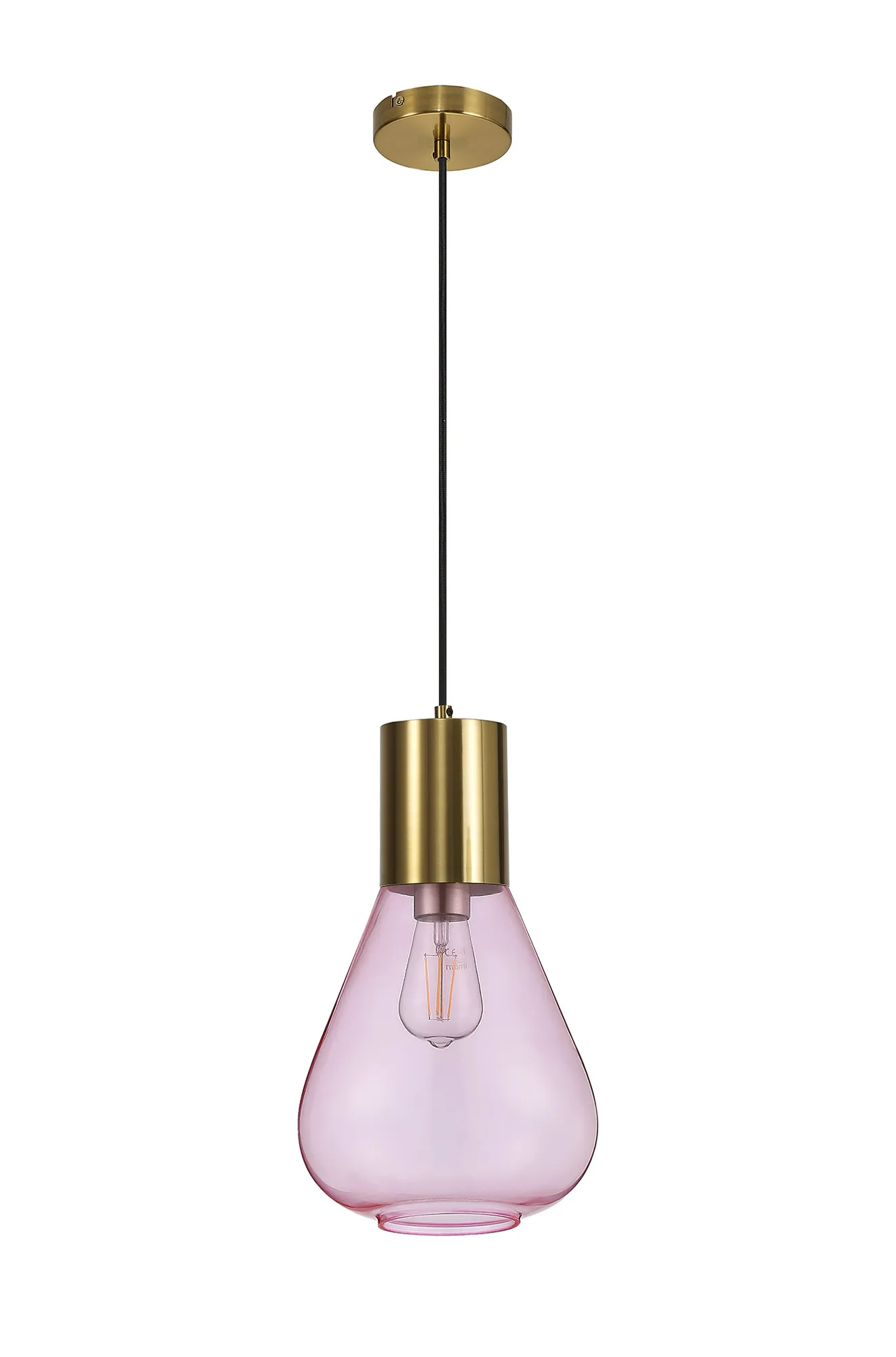 Clyde Ceiling Light With Narrow Glass, 1 x E27, Aged Brass/Pink