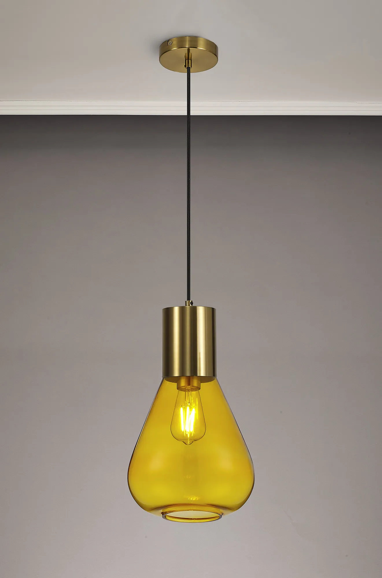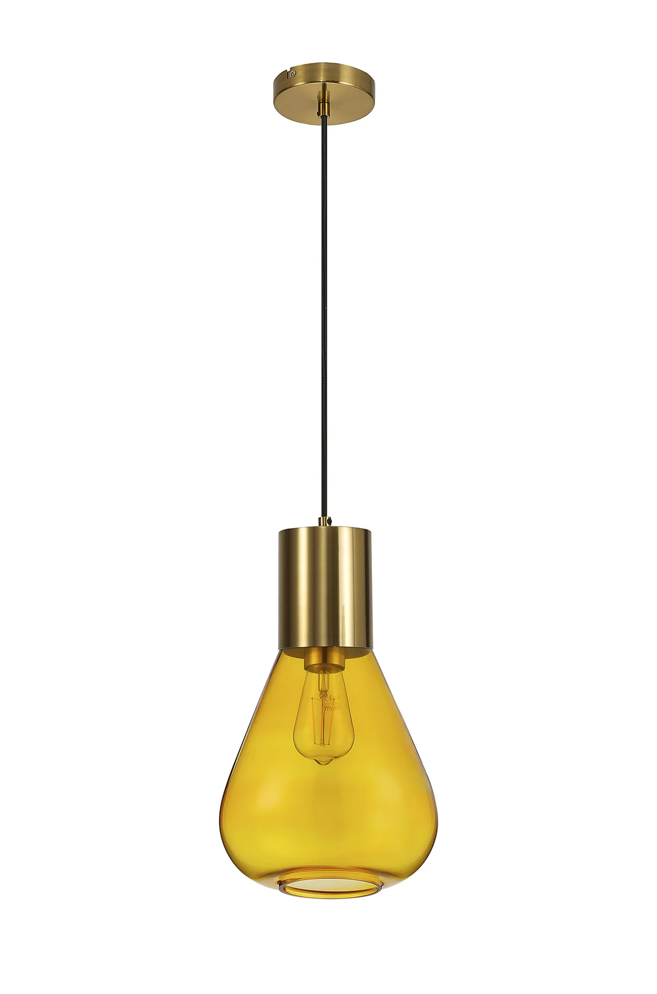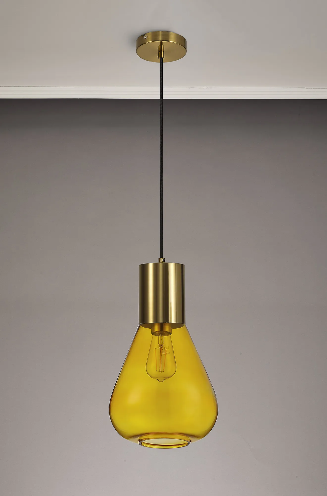 Clyde Ceiling Light With Narrow Glass, 1 x E27, Aged Brass/Yellow