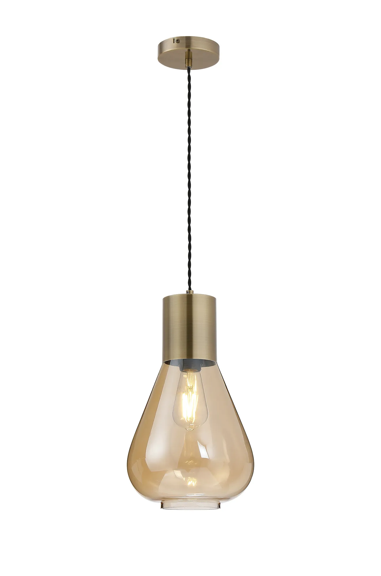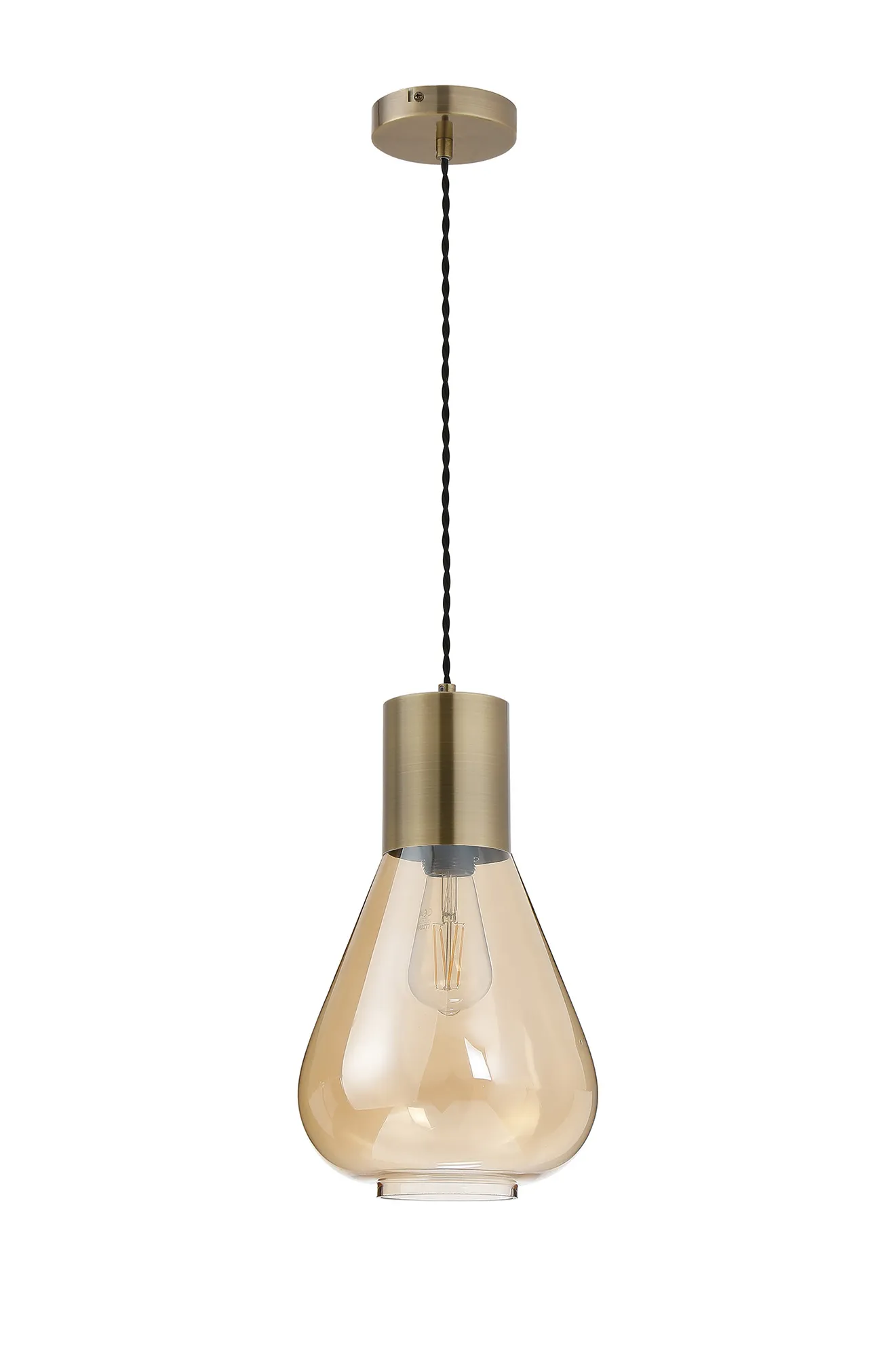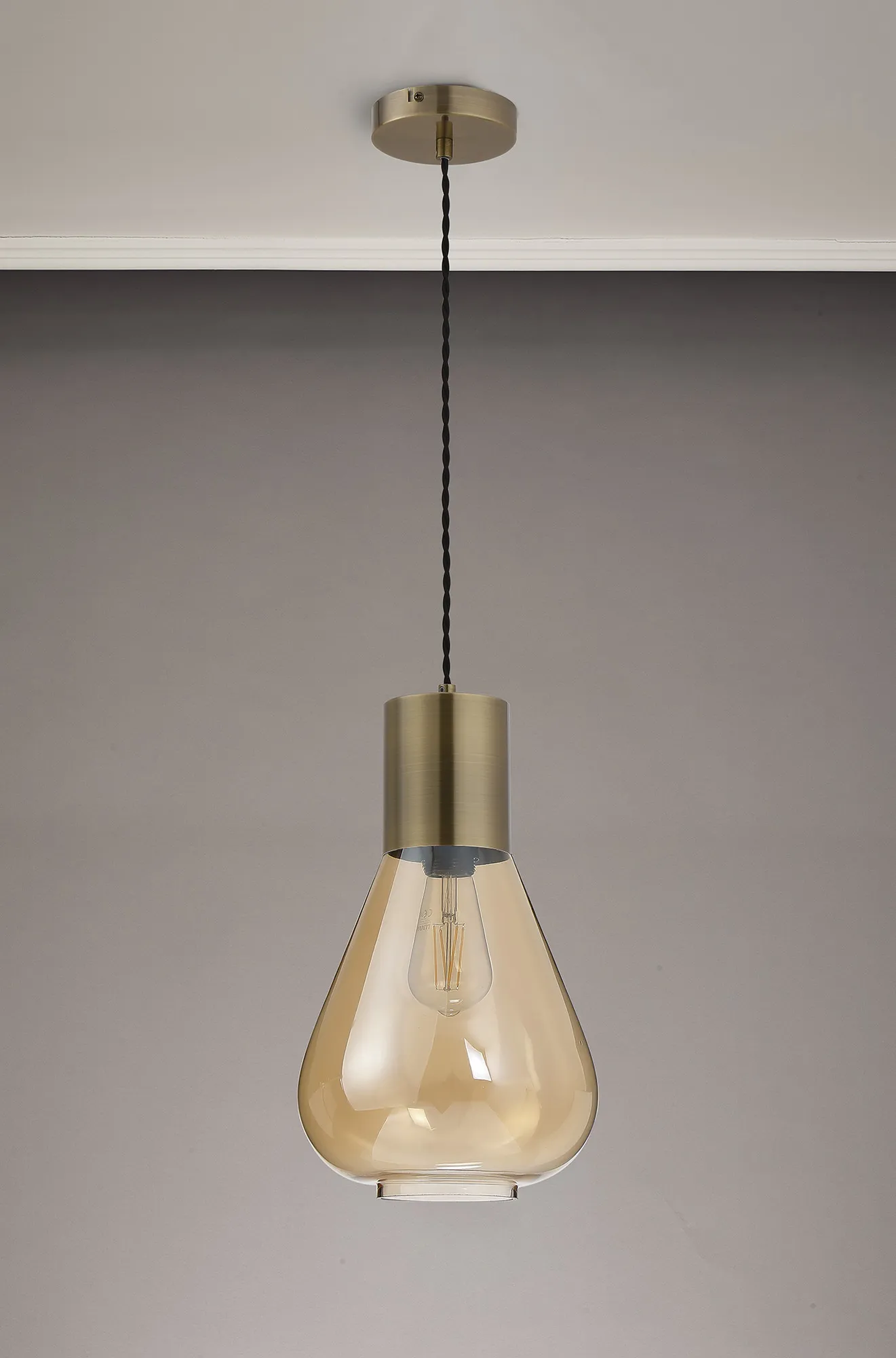 Clyde Pendant (FRAME ONLY), 1 x E27, Antique Brass/Black Braided Twisted Cable
