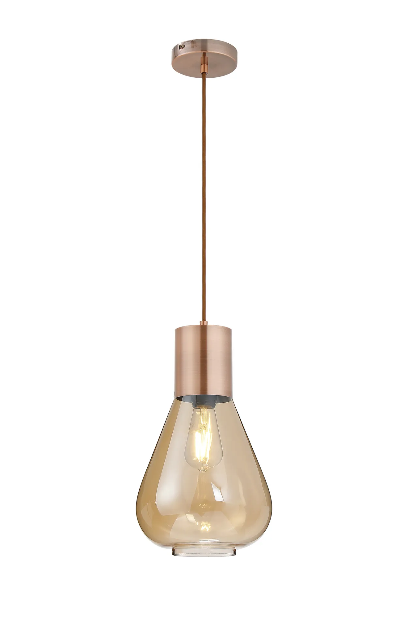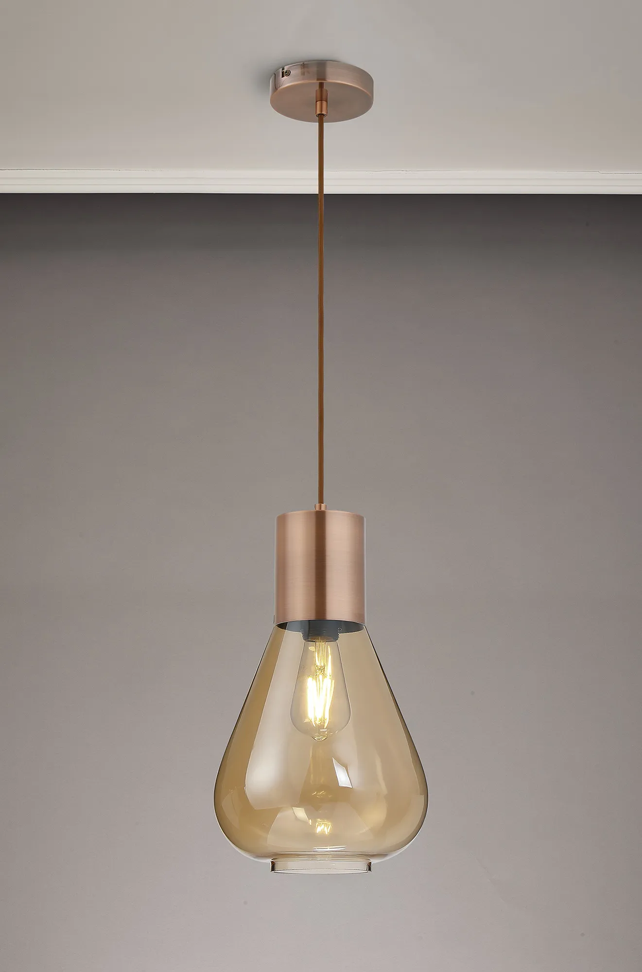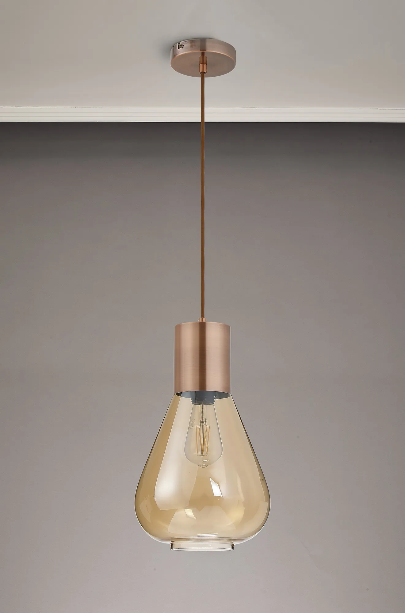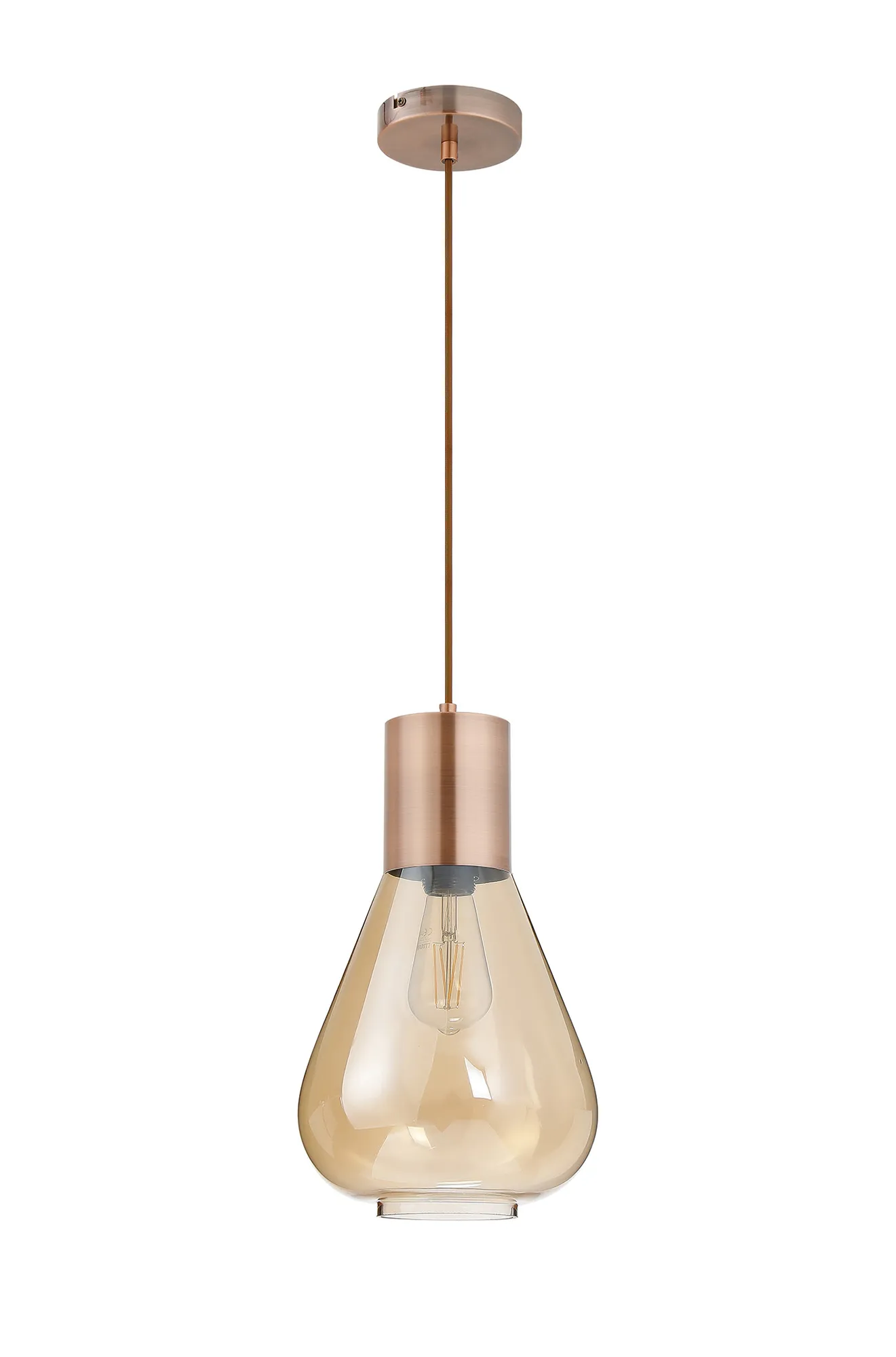 Clyde Ceiling Light With Narrow Glass, 1 x E27, Antique Copper/Amber