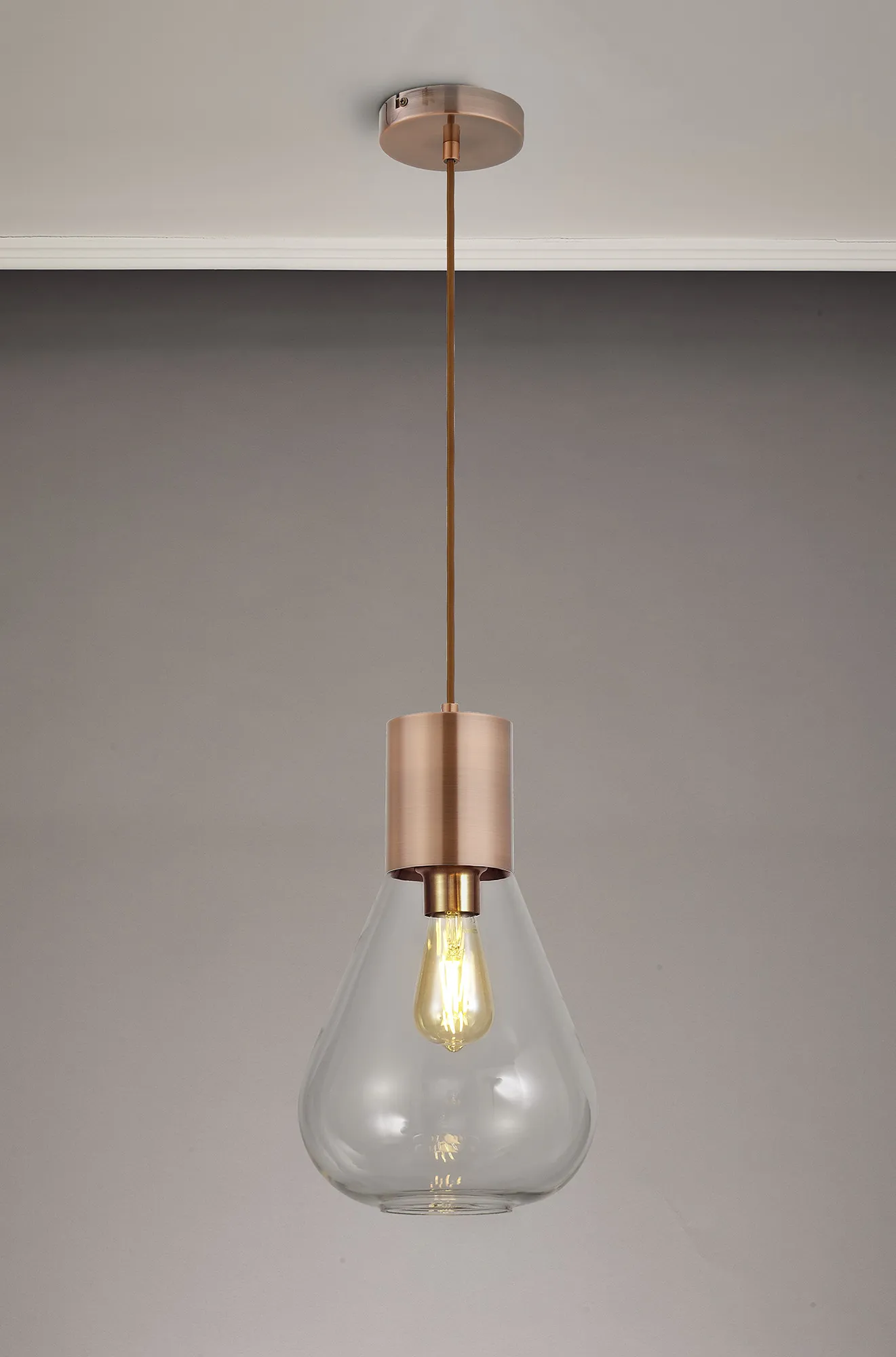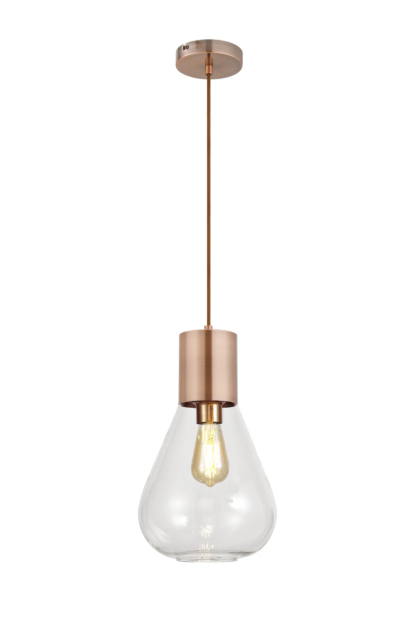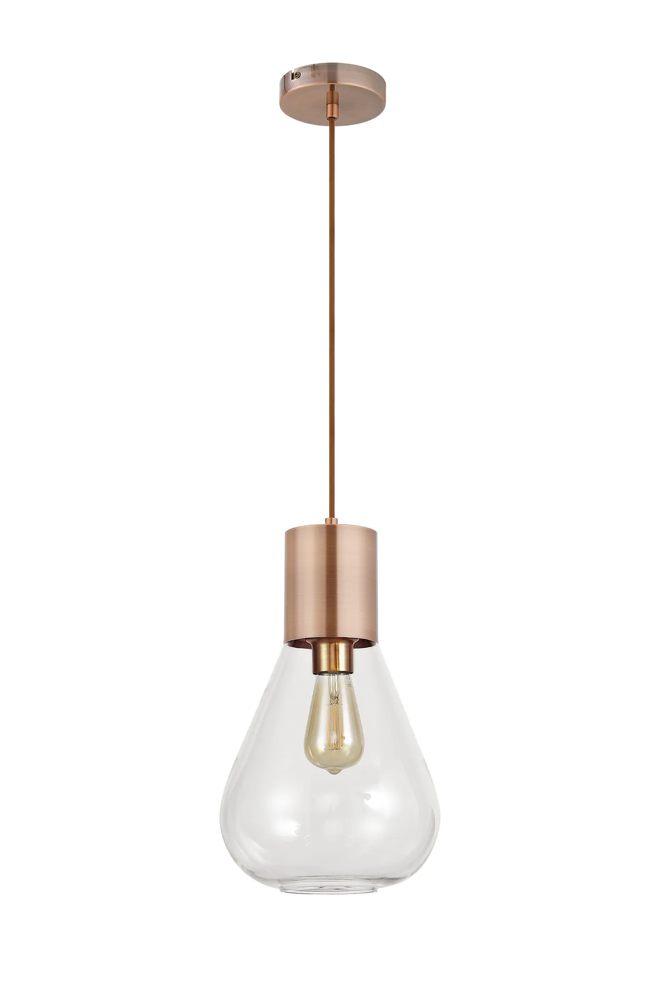 Clyde Ceiling Light With Narrow Glass, 1 x E27, Antique Copper/Clear