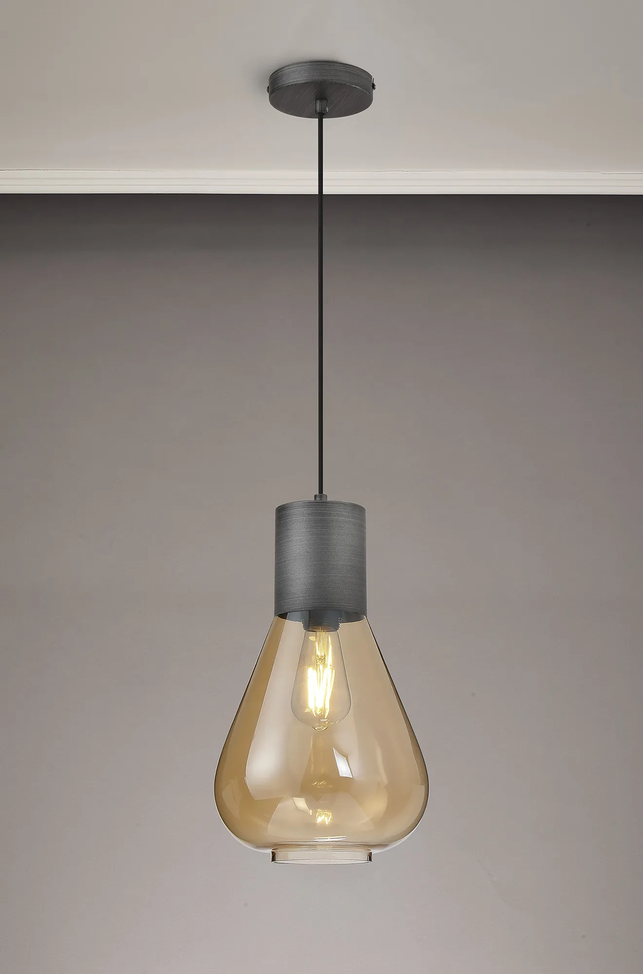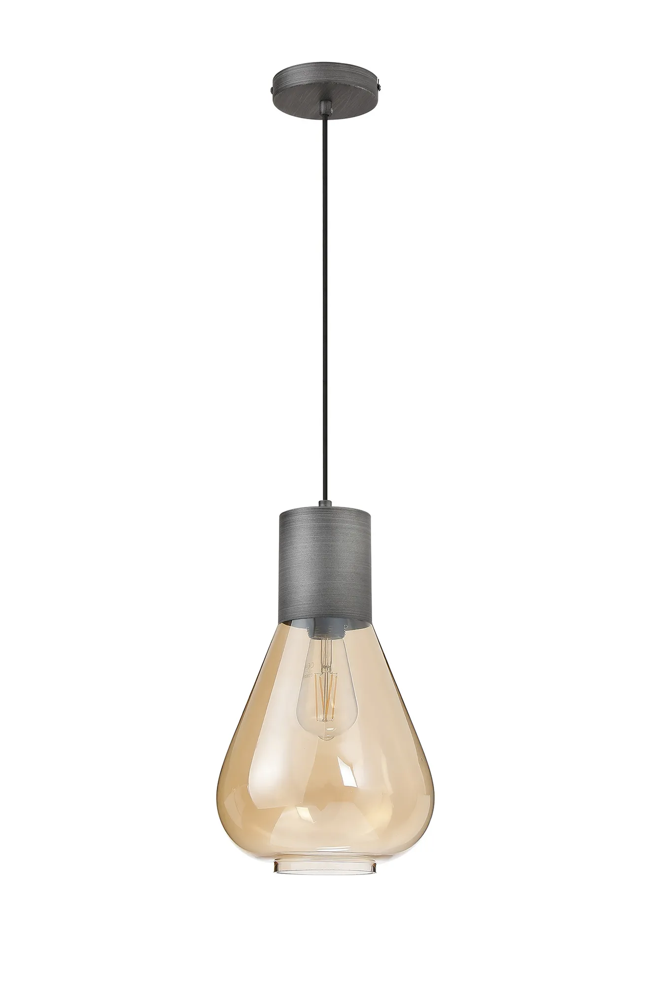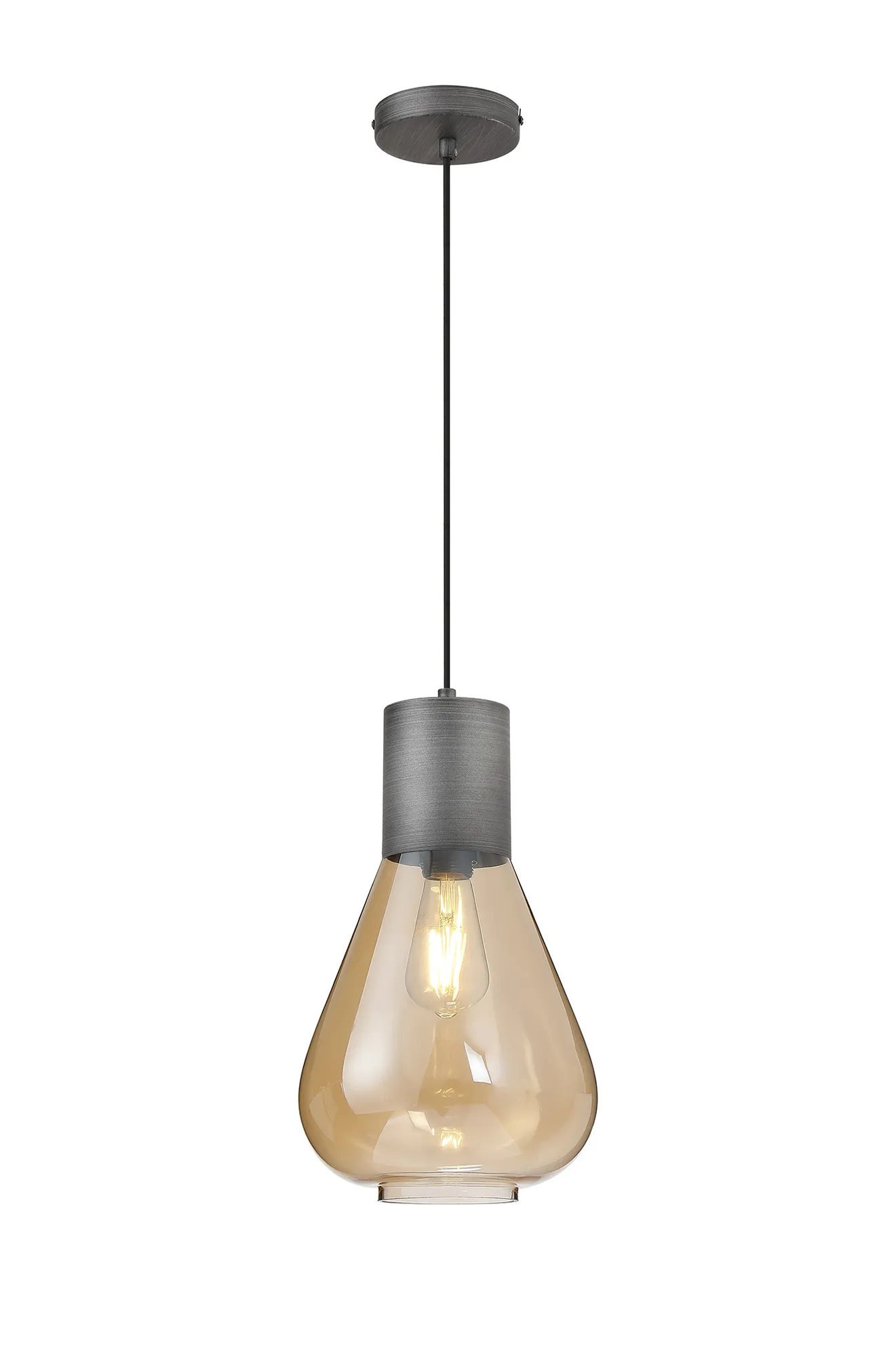 OTHER Clyde Narrow Pendant, 1 x E27, Pewter/Amber Glass