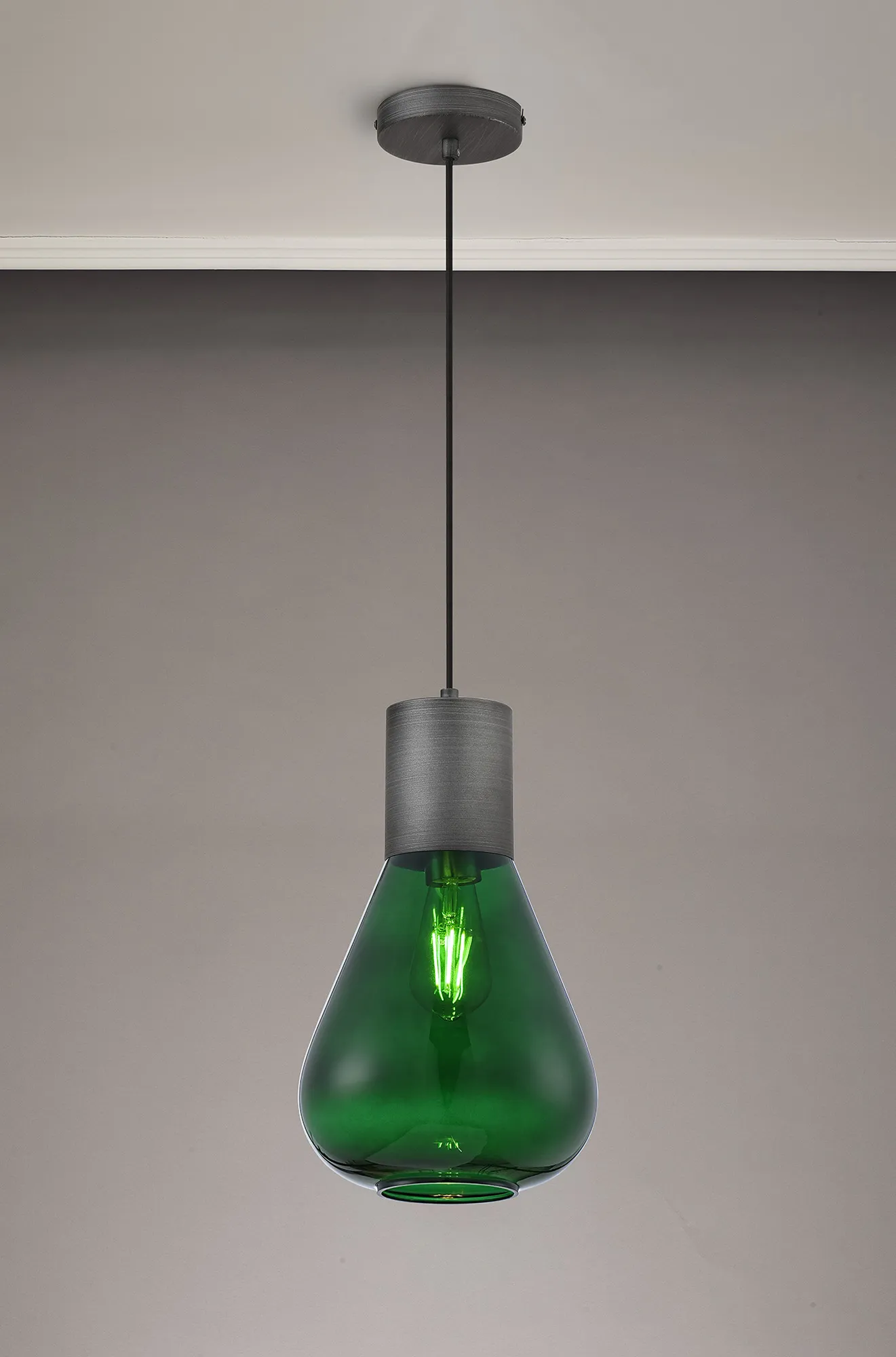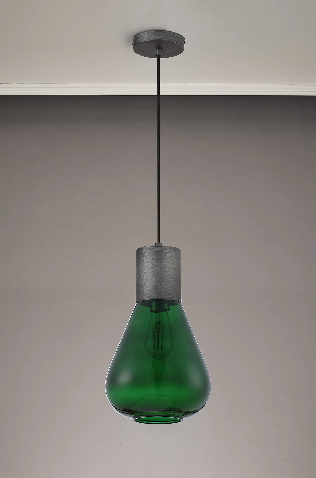 Clyde Ceiling Light With Narrow Glass, 1 x E27, Pewter/Bottle Green