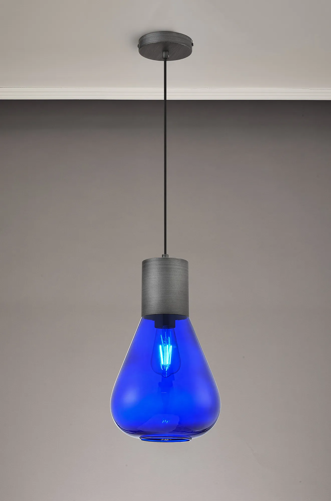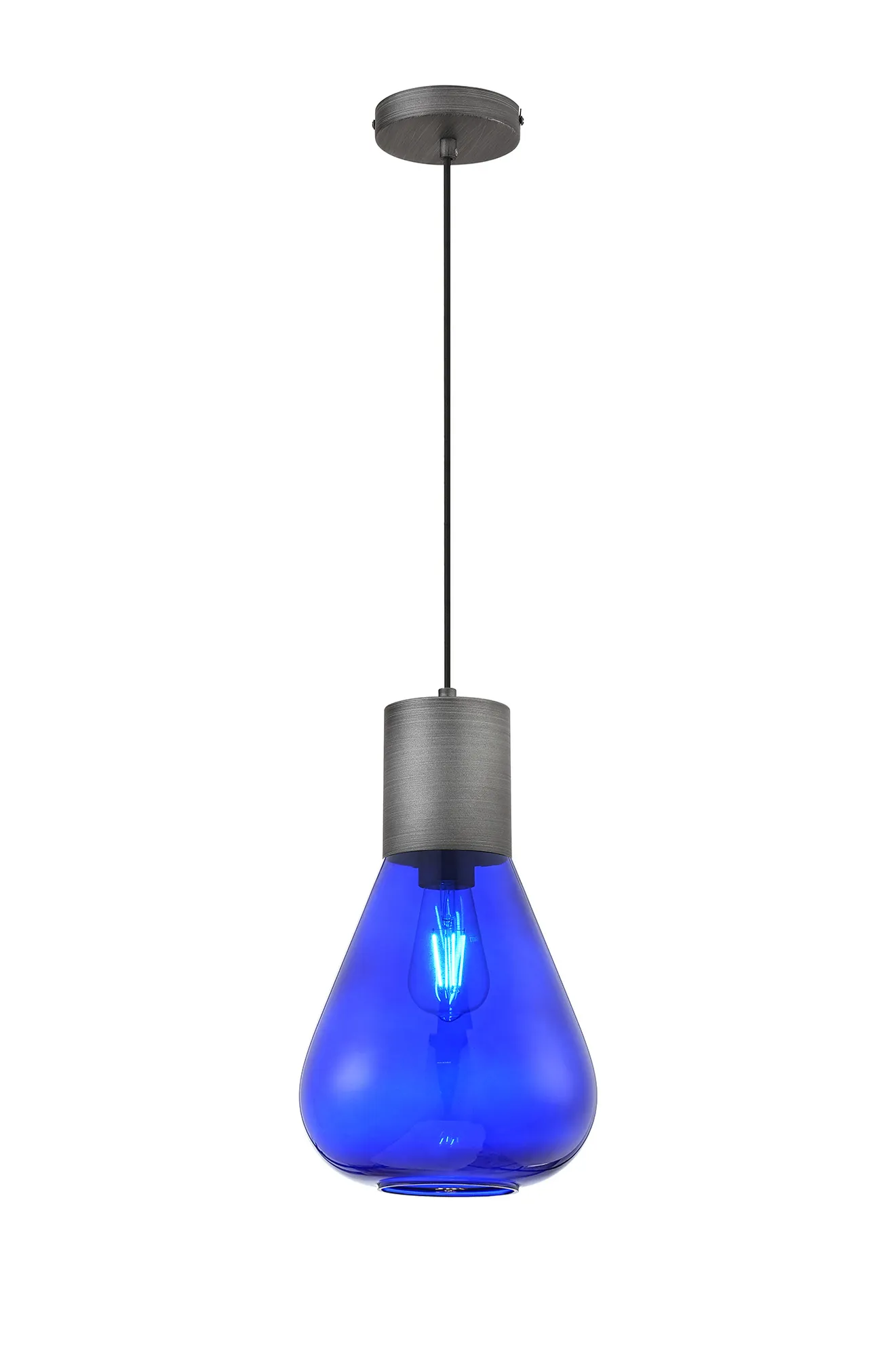 Clyde Ceiling Light With Narrow Glass, 1 x E27, Pewter/Blue Ink