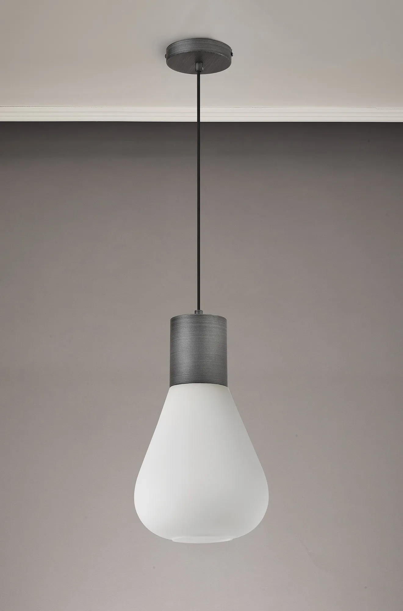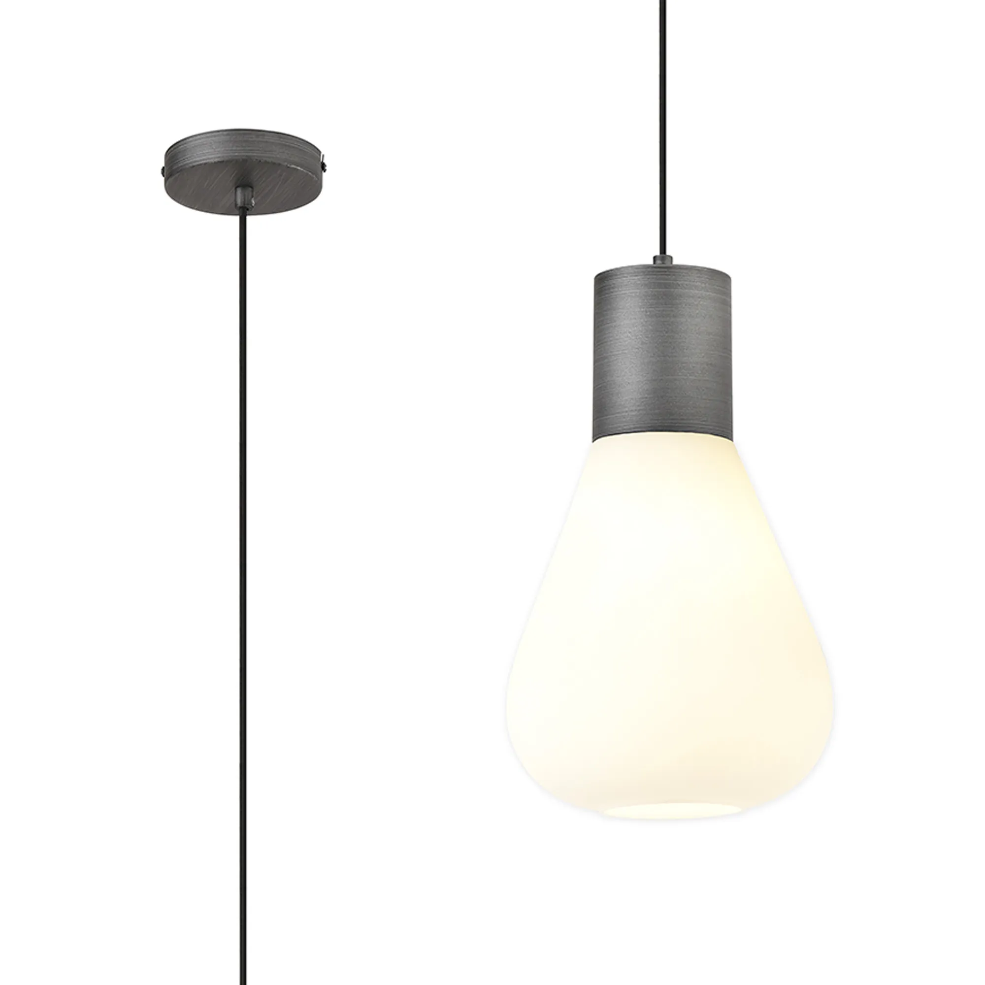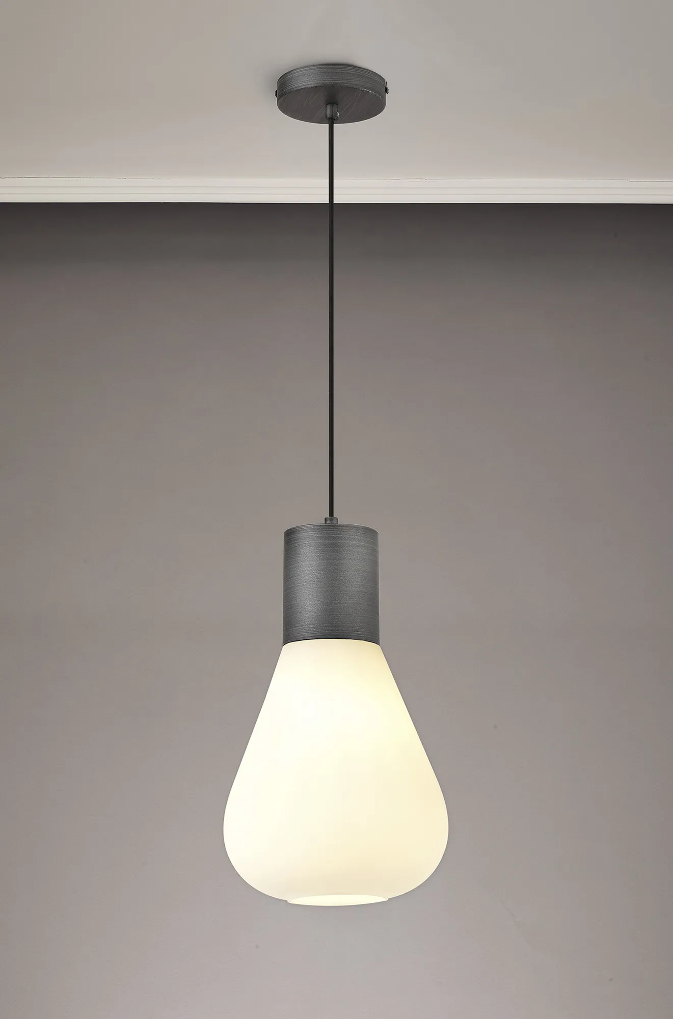 Clyde Ceiling Light With Narrow Glass, 1 x E27, Pewter/Opal
