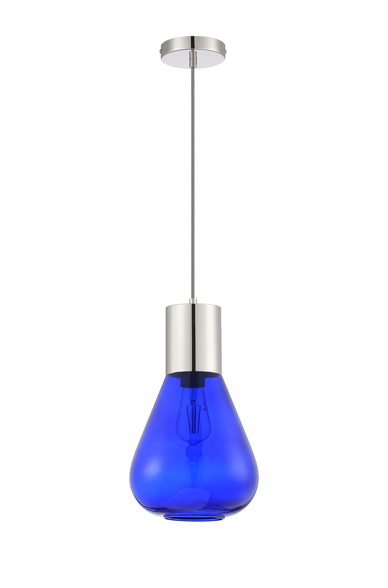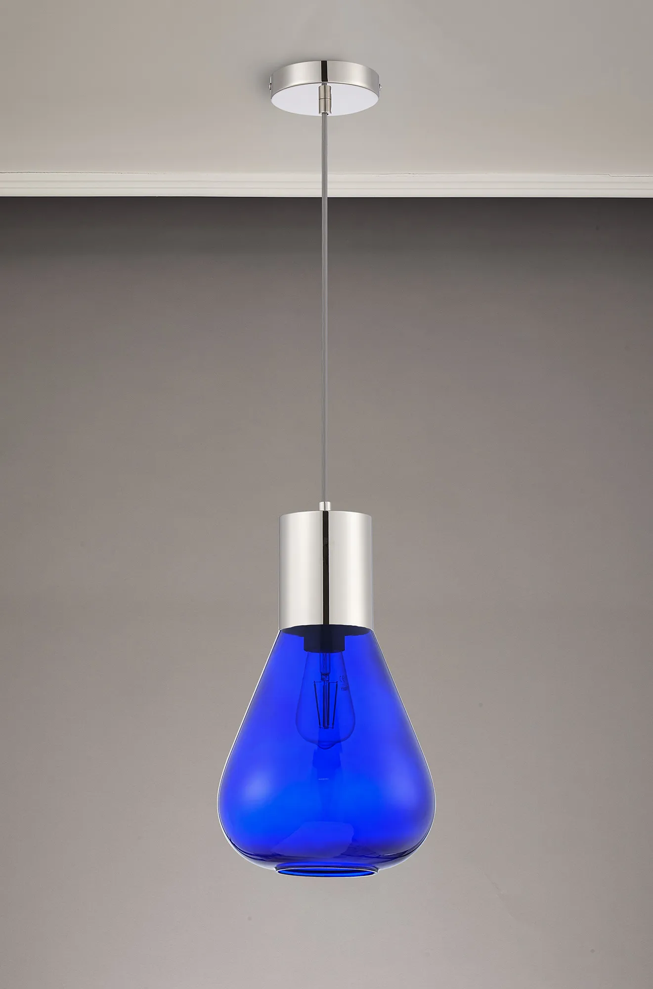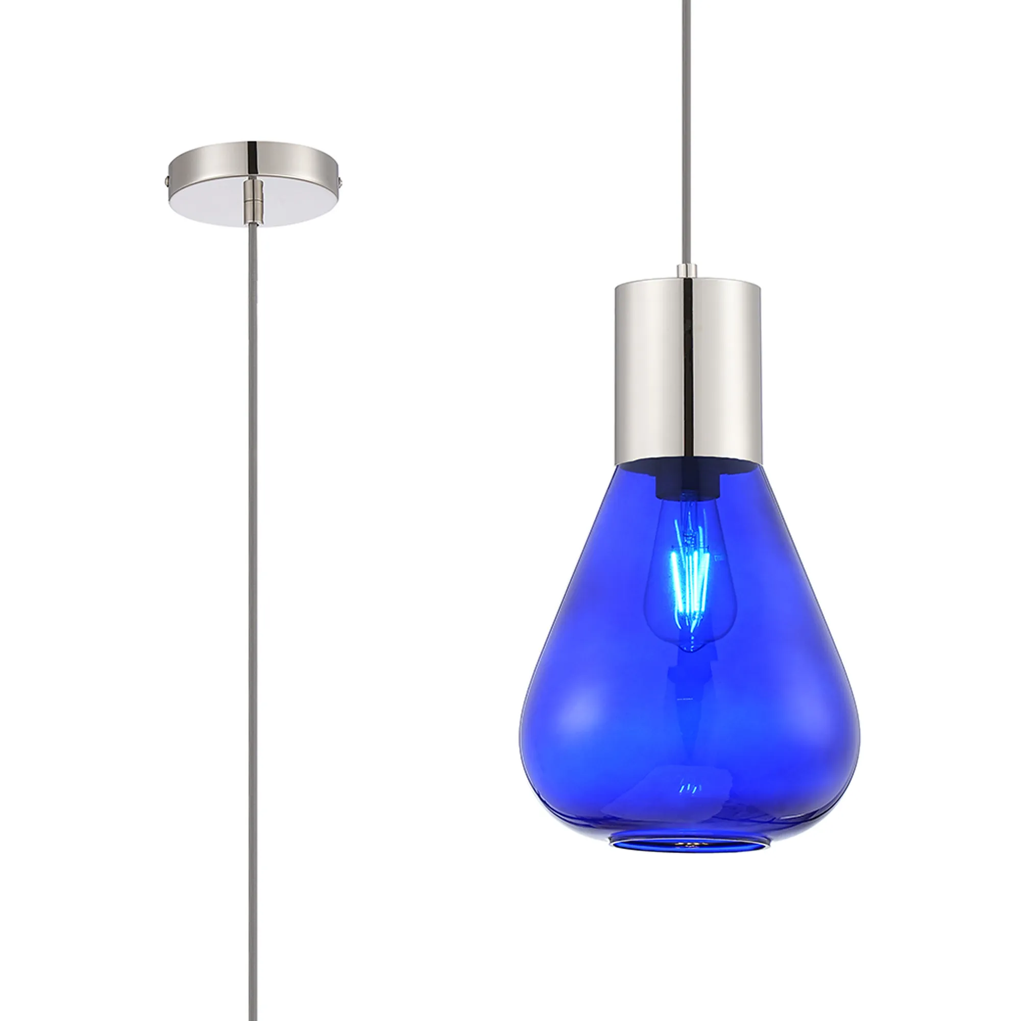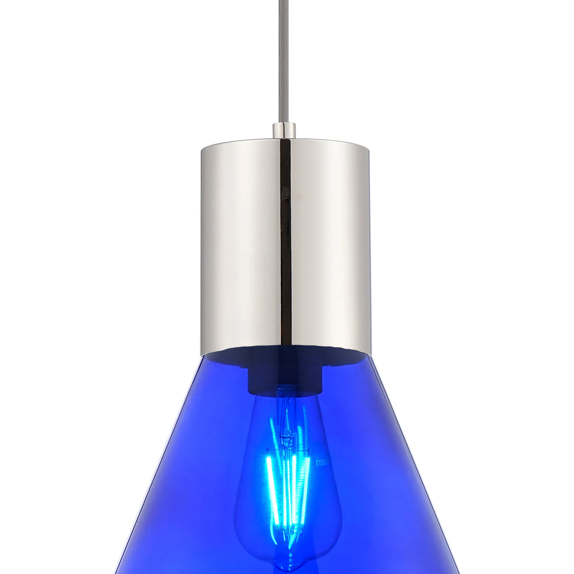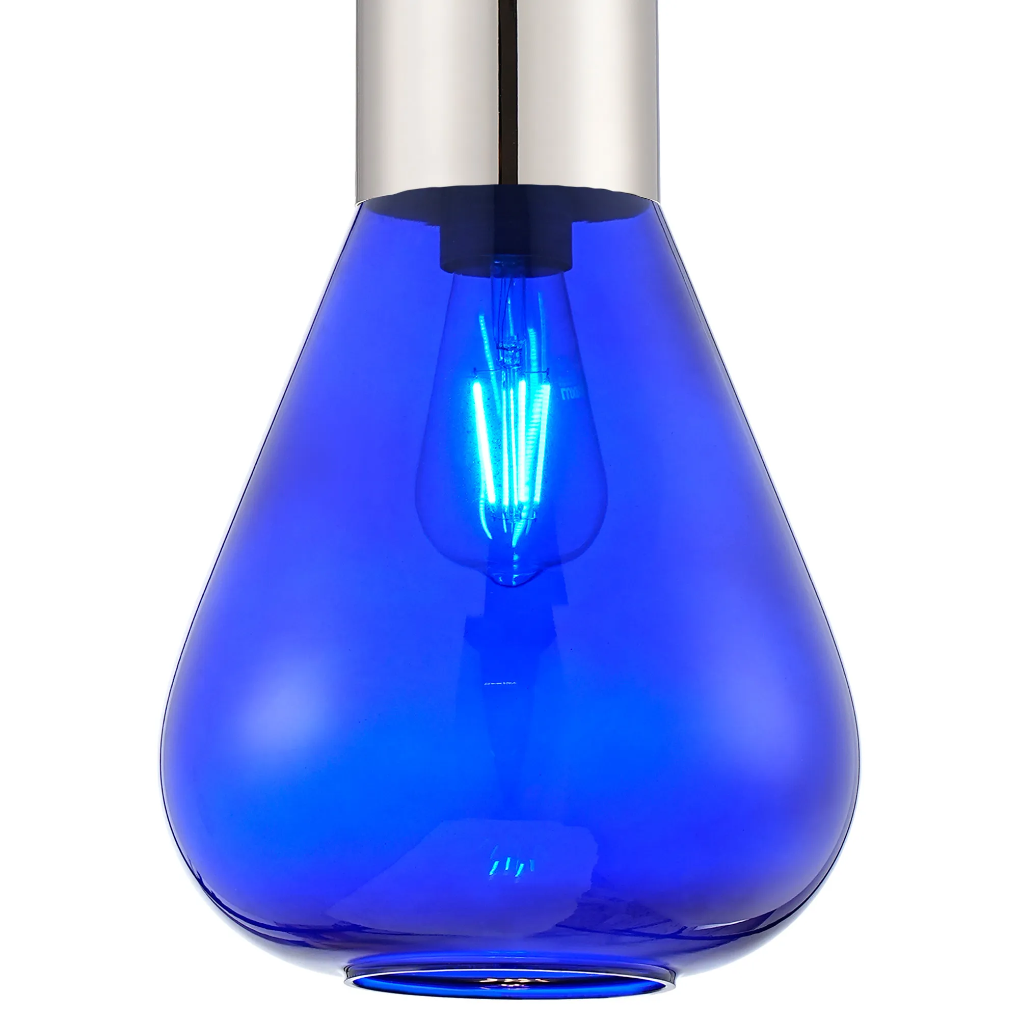 Clyde Table Lamp With Narrow Glass, 1 x E27, Polished Nickel/Blue Ink/Dark Grey Braided Cable