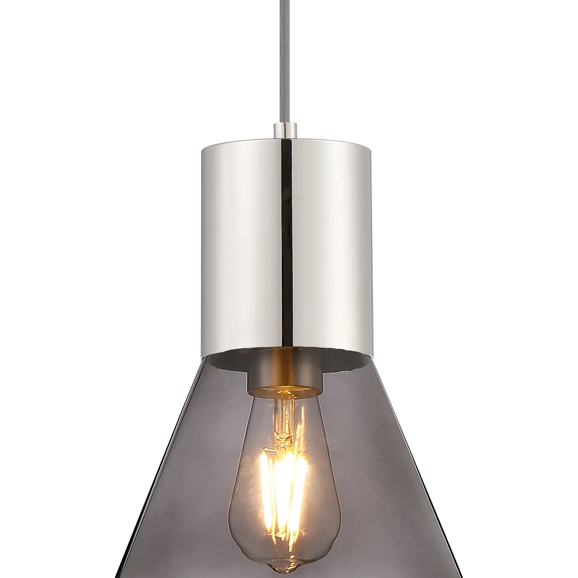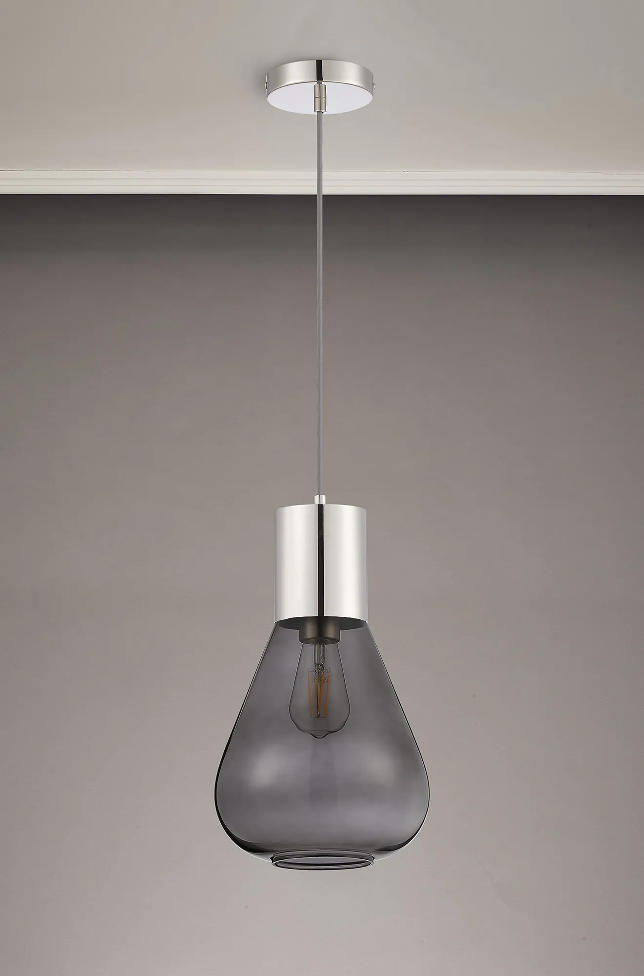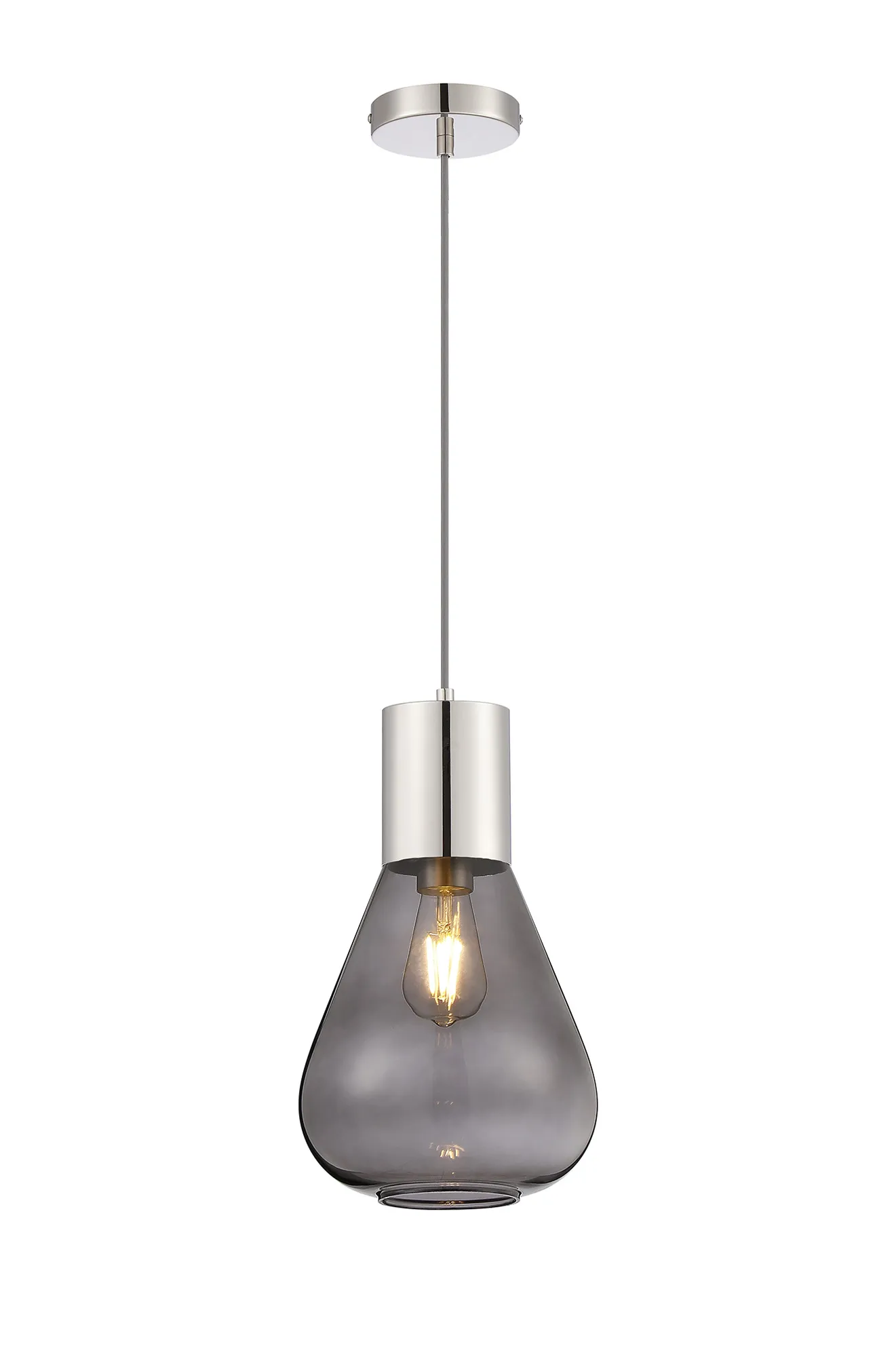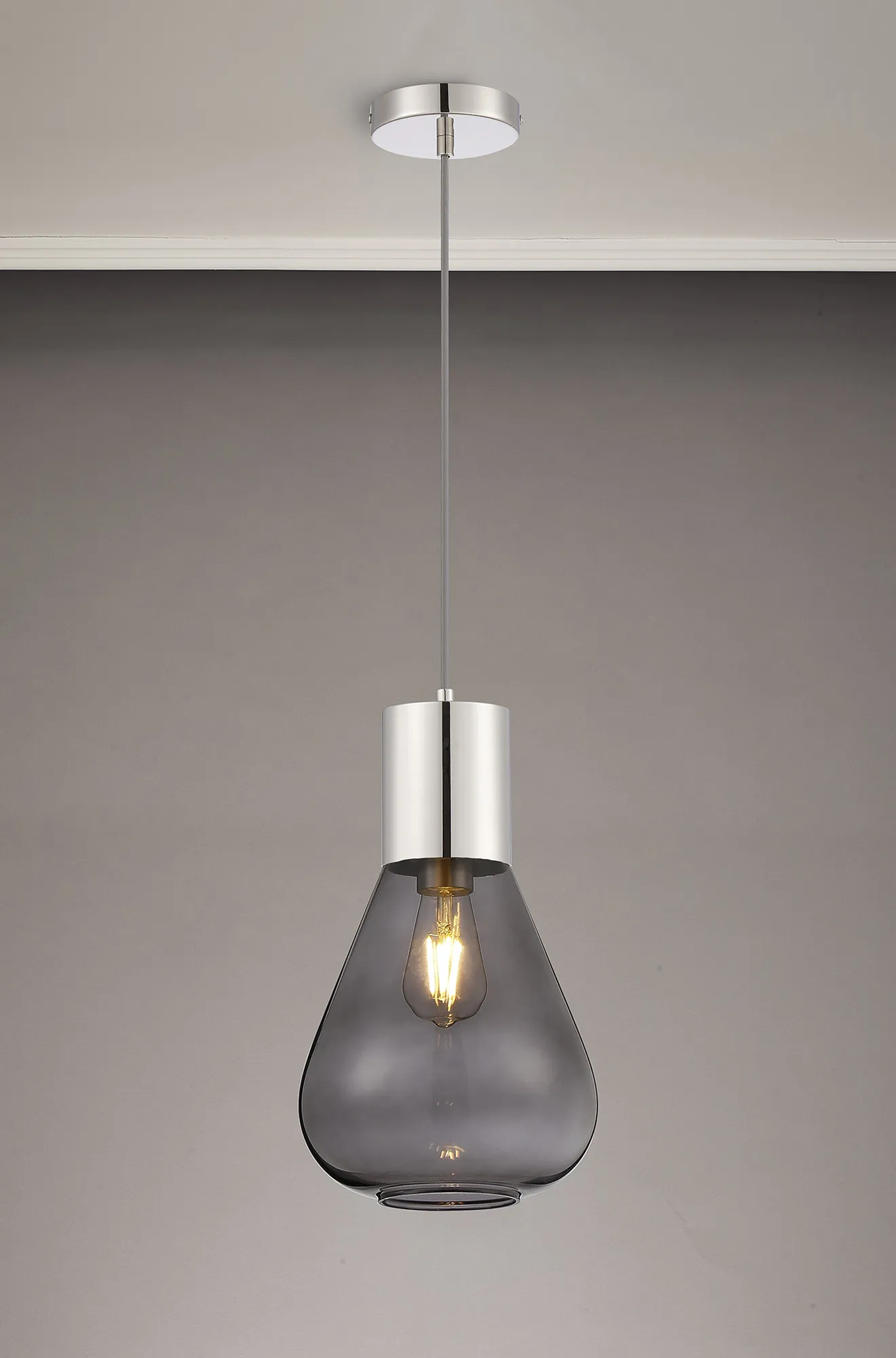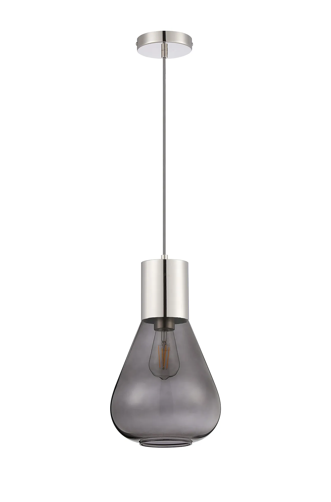 Clyde Table Lamp With Narrow Glass, 1 x E27, Polished Nickel/Inky Black/Dark Grey Braided Cable