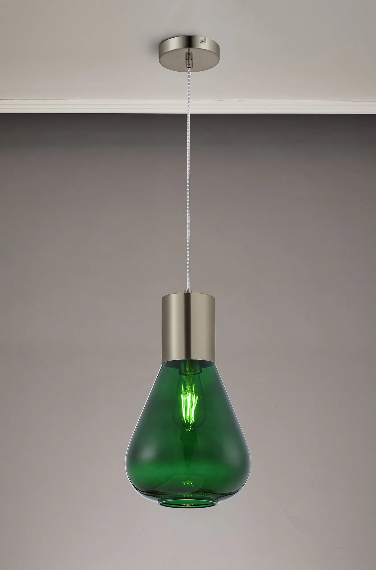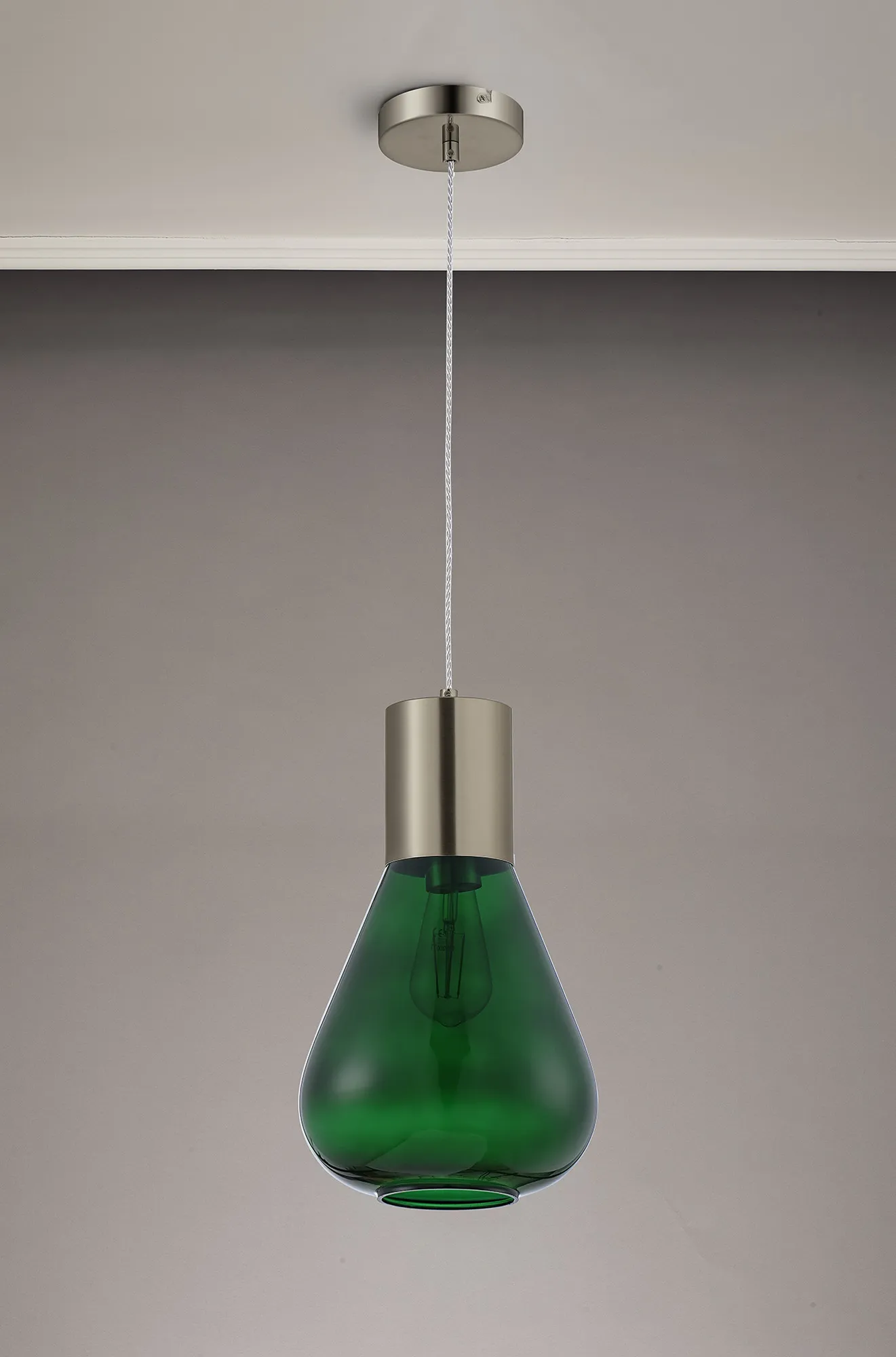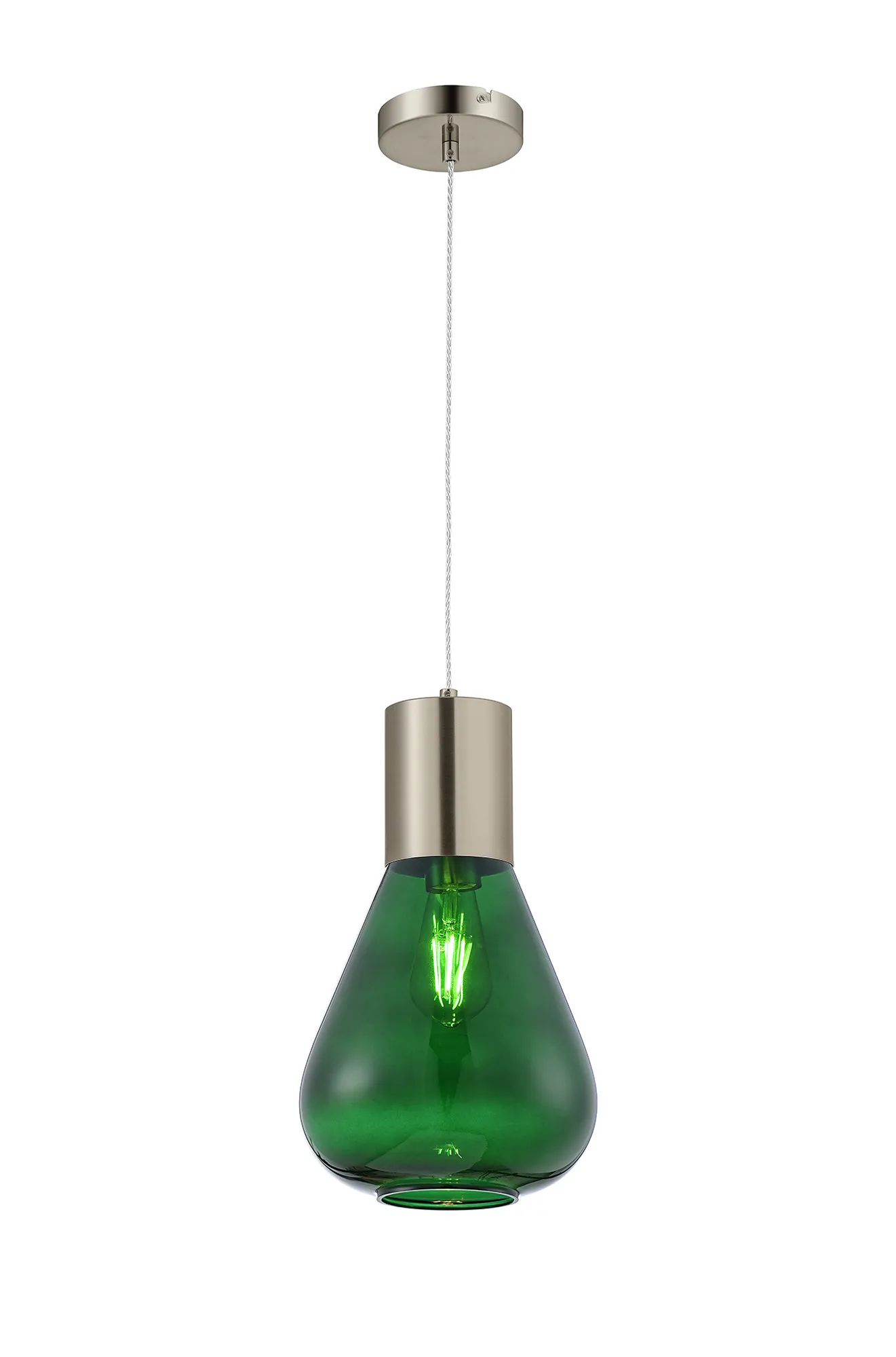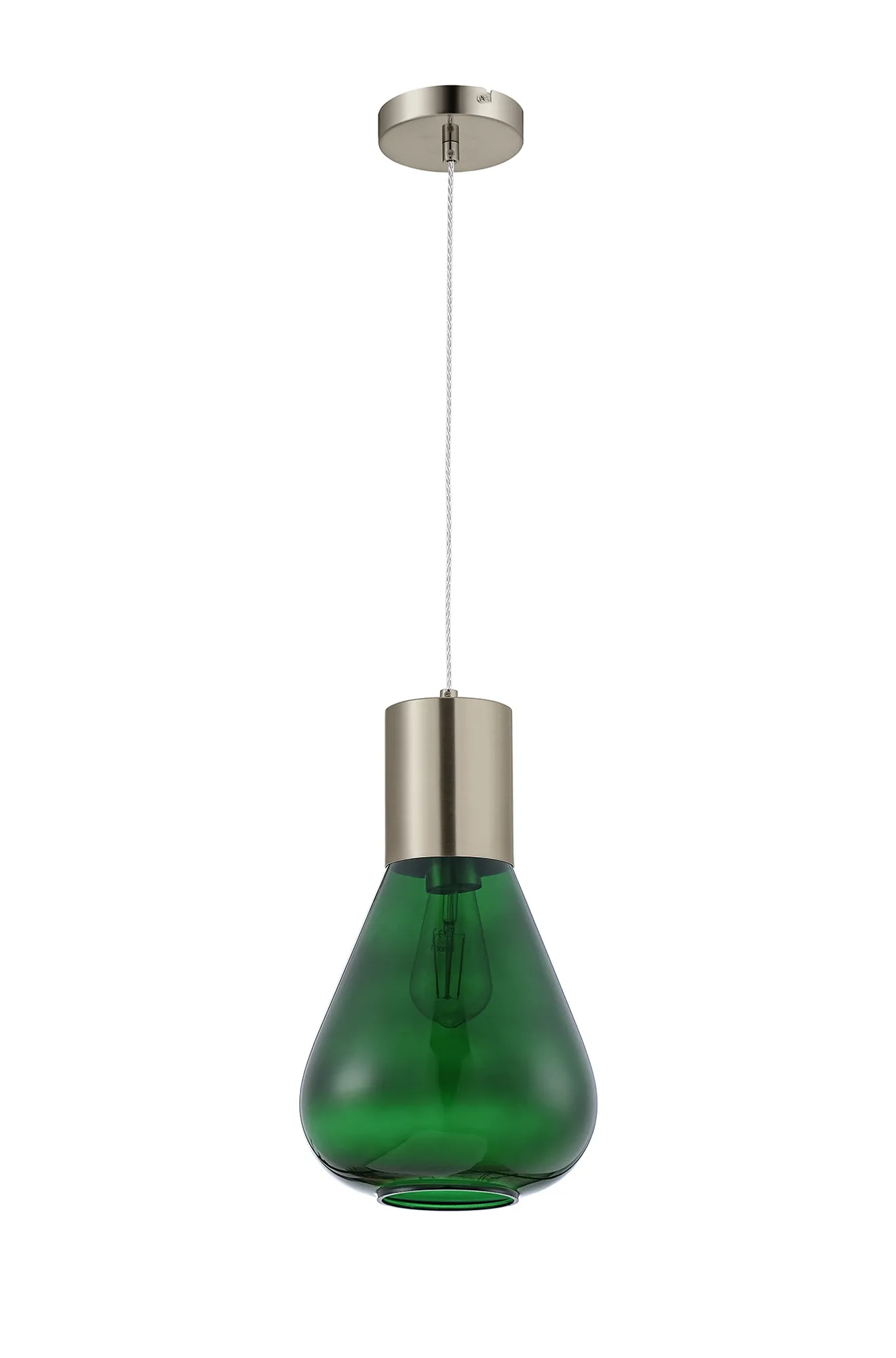 Clyde Ceiling Light With Narrow Glass, 1 x E27, Satin Nickel/Bottle Green