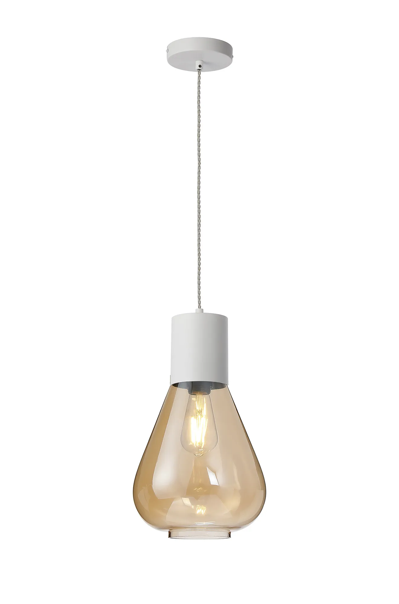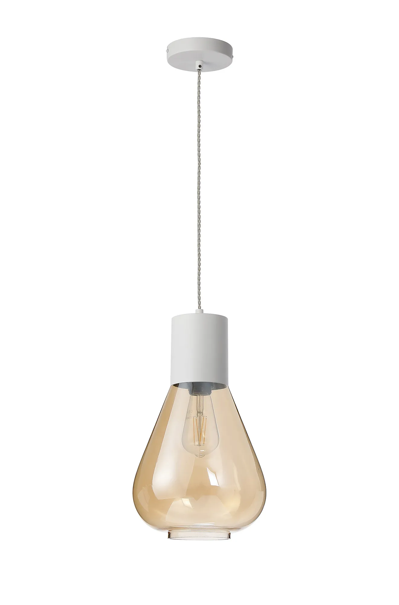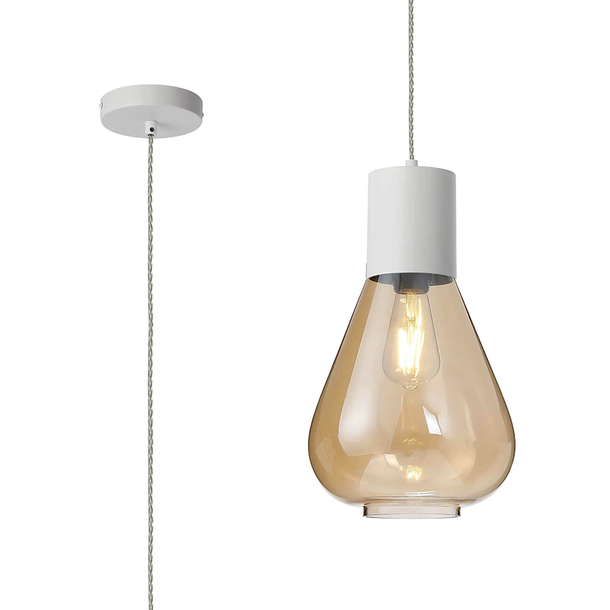 Clyde Pendant With Wide Glass, 1 x E27, Satin White/Amber/Clear Twisted Cable