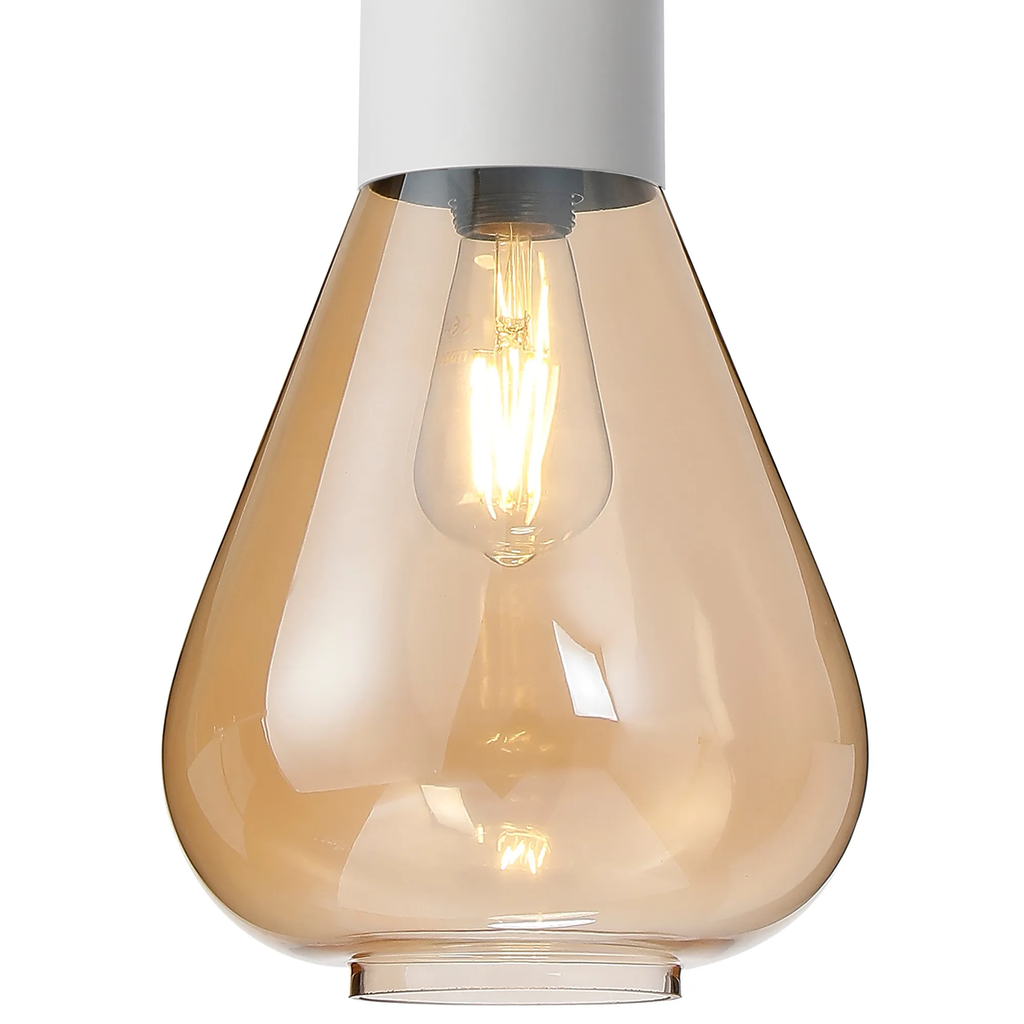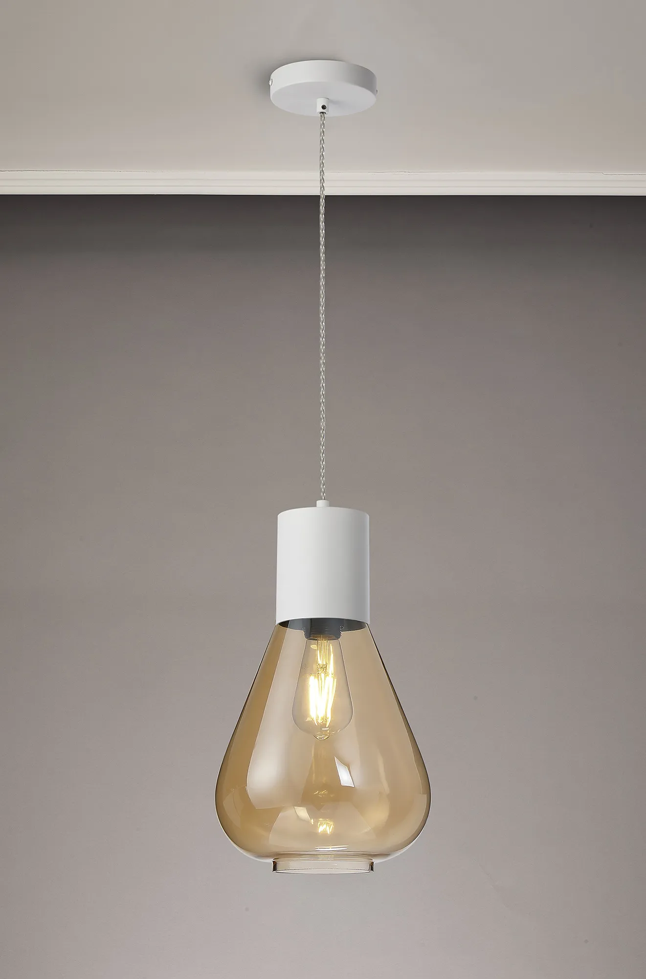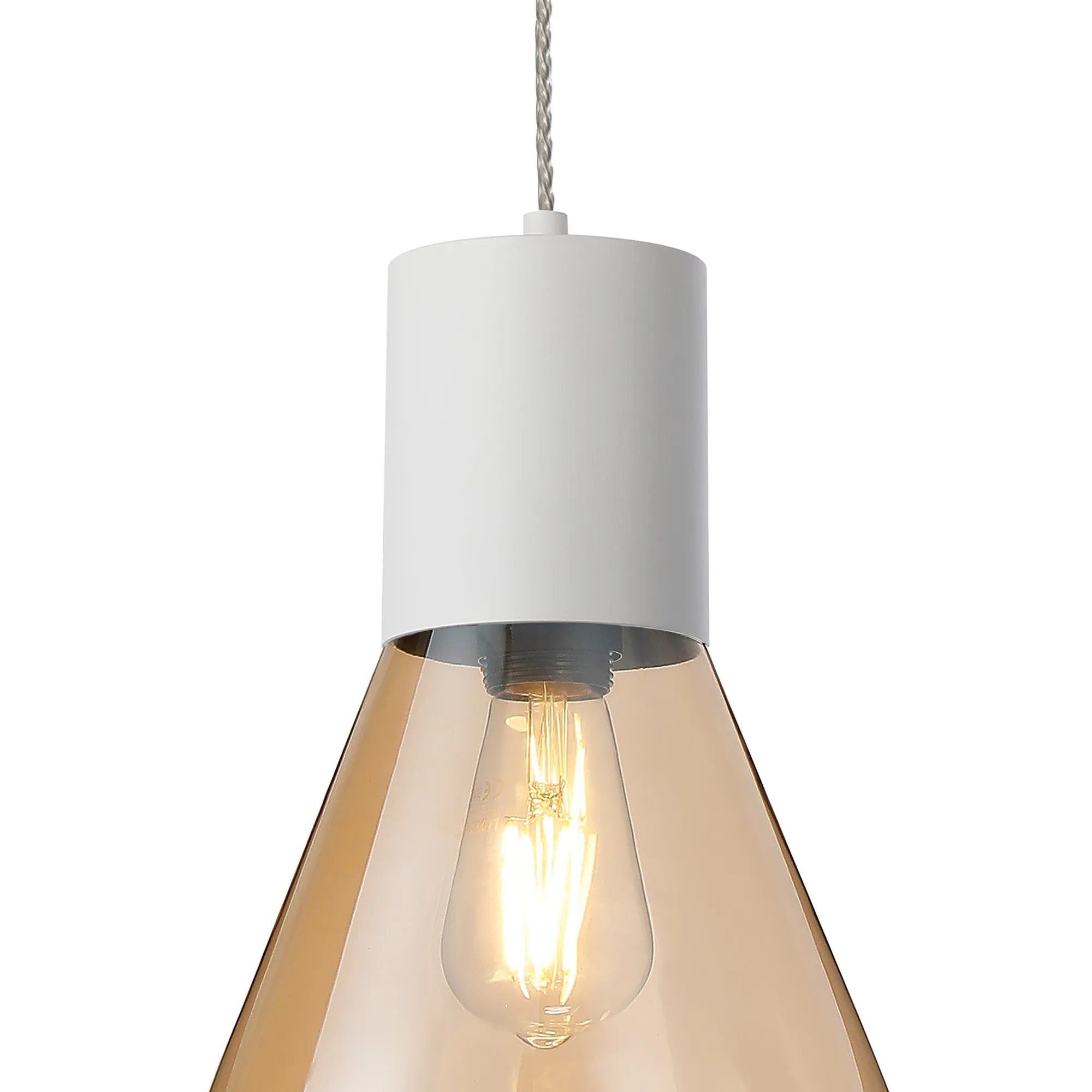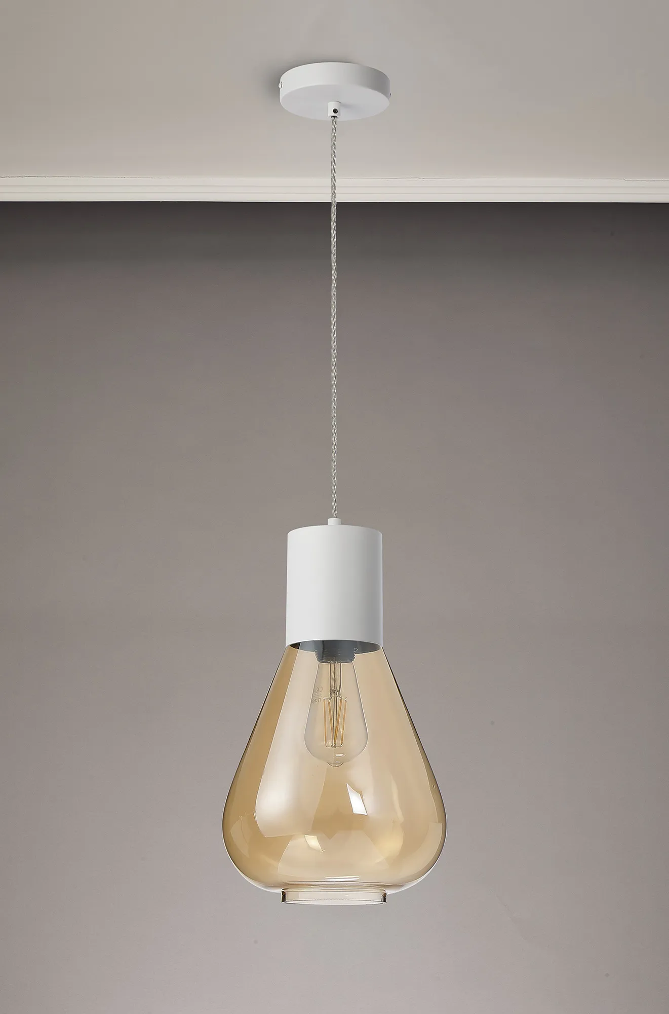Clyde Pendant With Wide Glass, 1 x E27, Satin White/Amber/Clear Twisted Cable