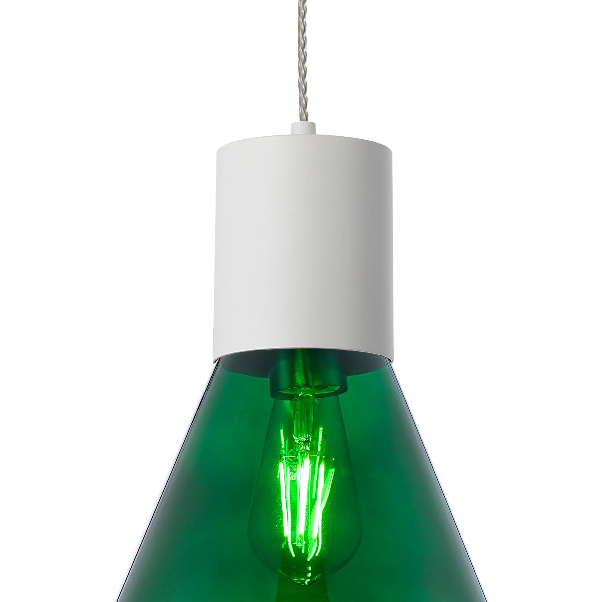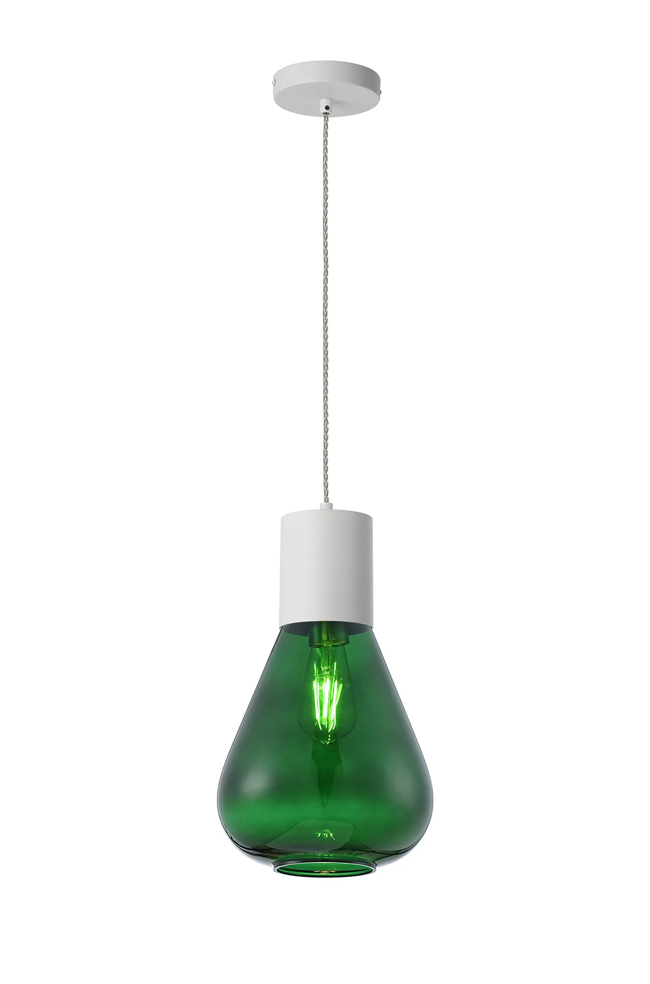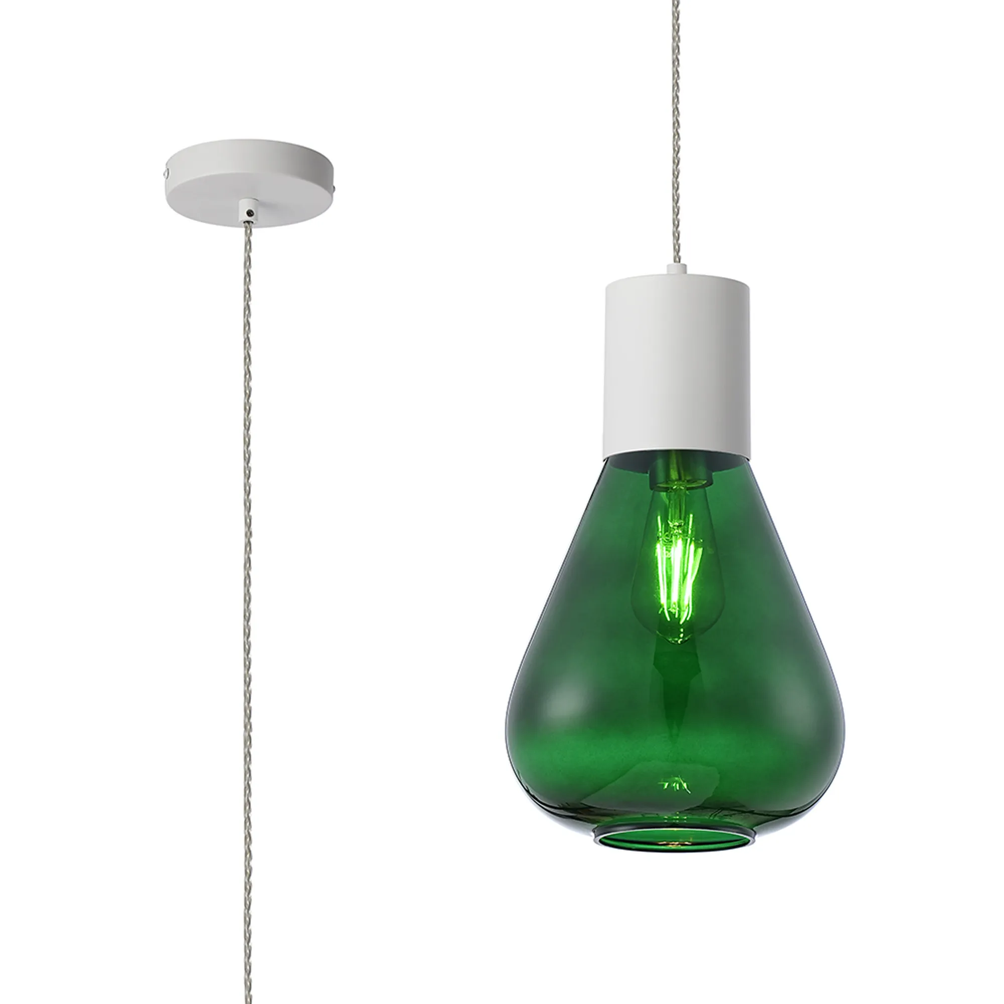 Clyde Pendant With Wide Glass, 1 x E27, Satin White/Bottle Green/Clear Twisted Cable