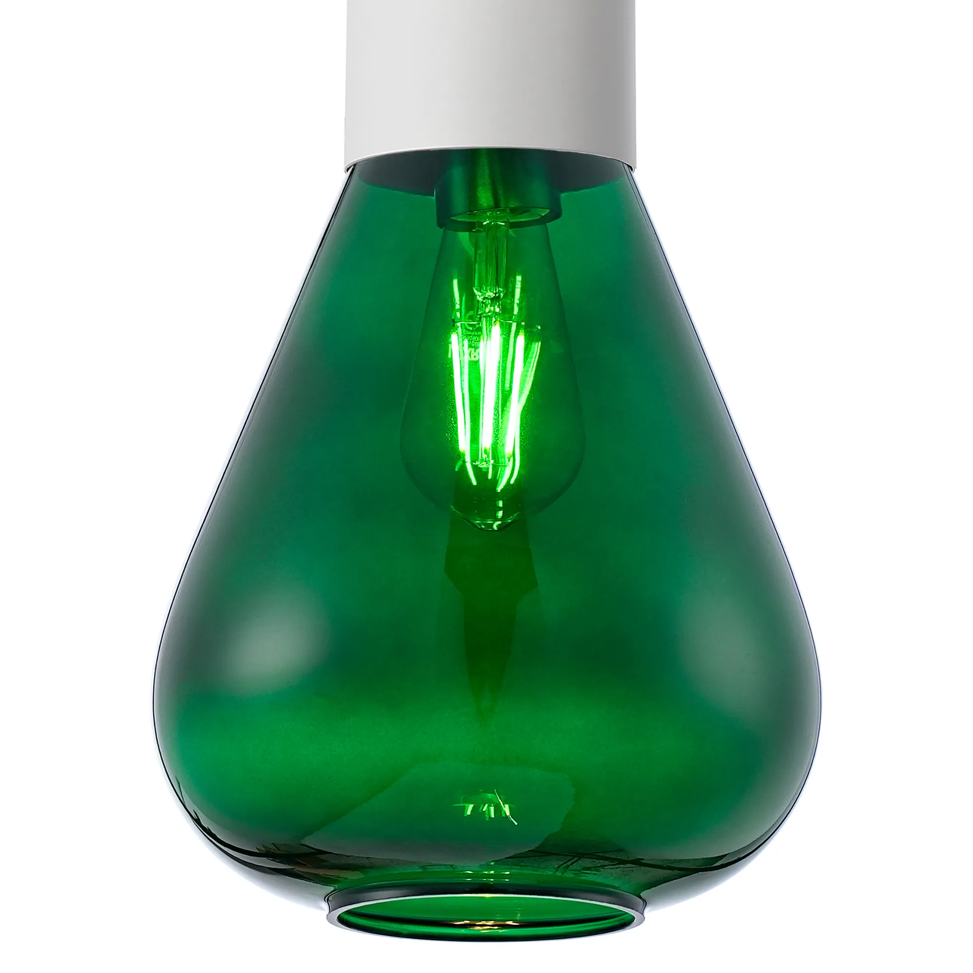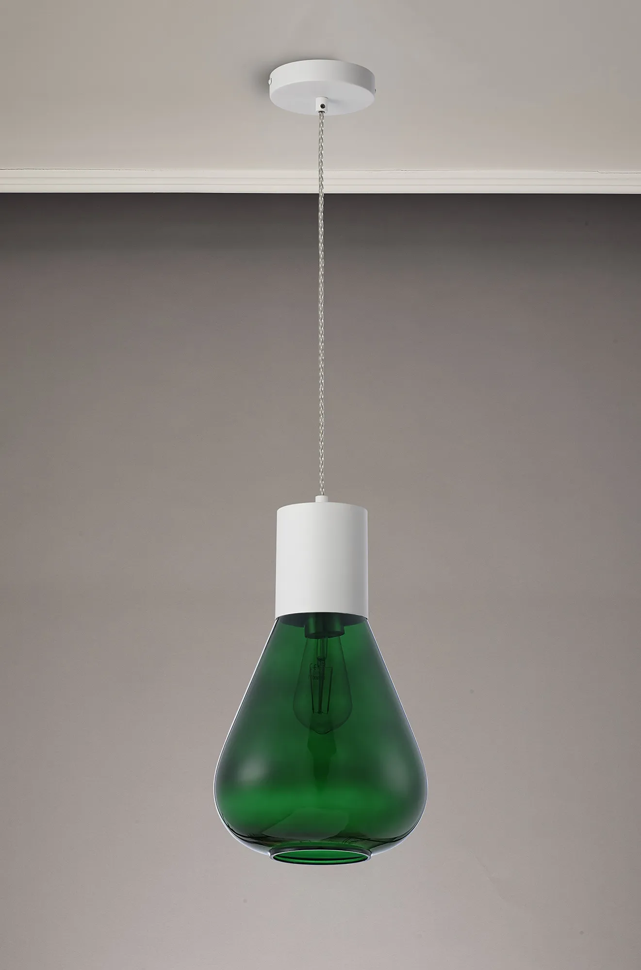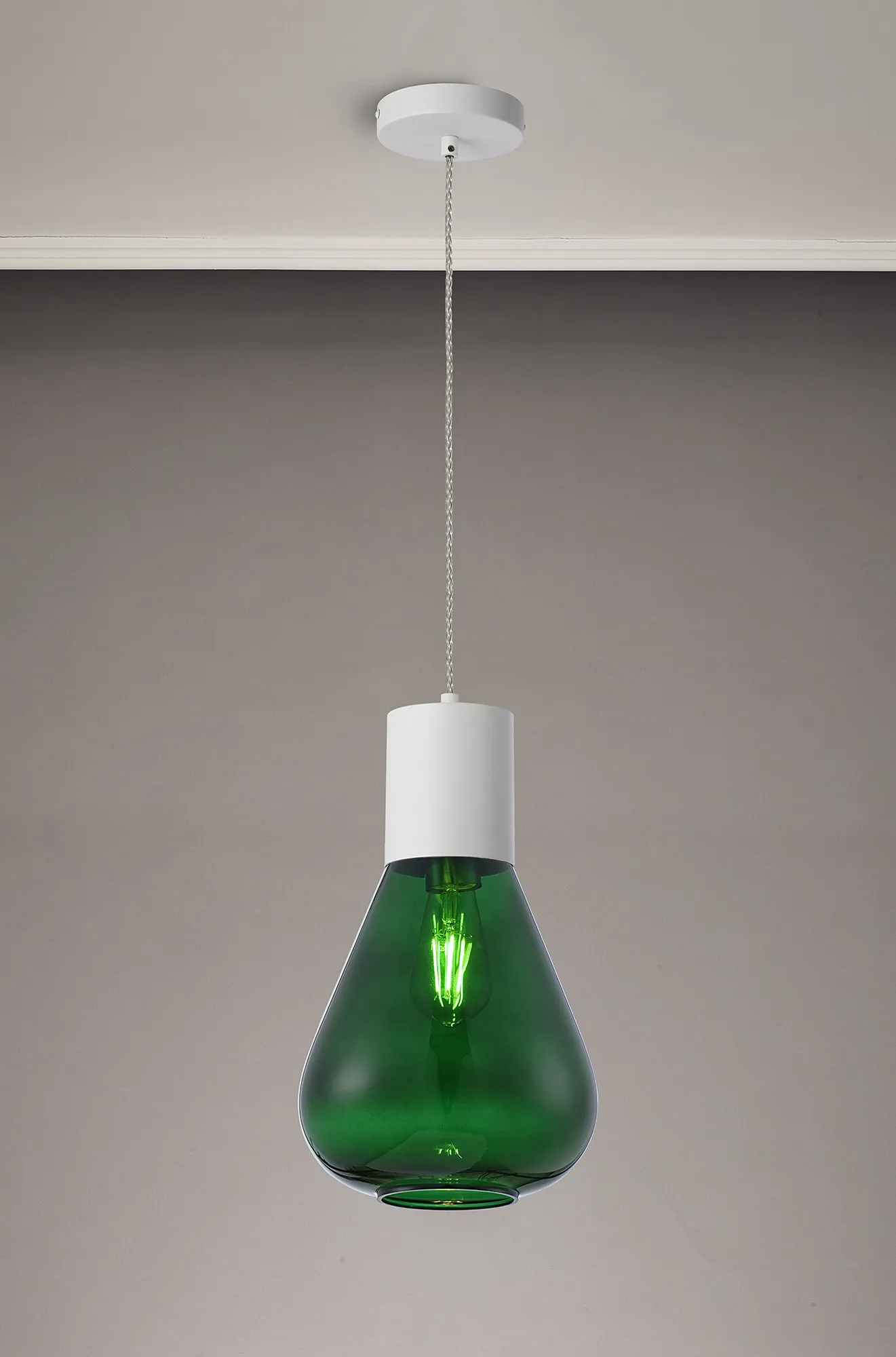 Clyde Pendant With Wide Glass, 1 x E27, Satin White/Bottle Green/Clear Twisted Cable
