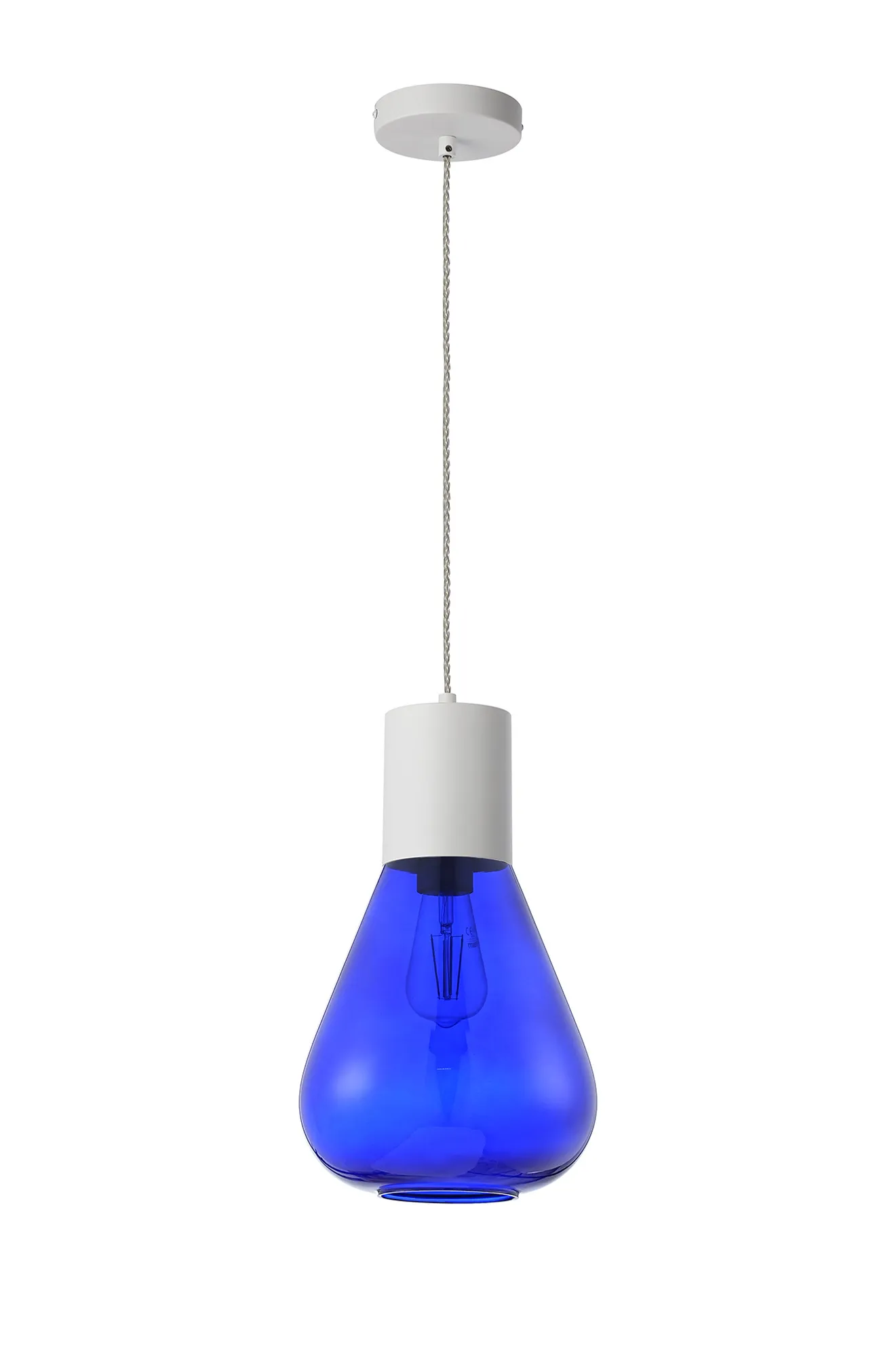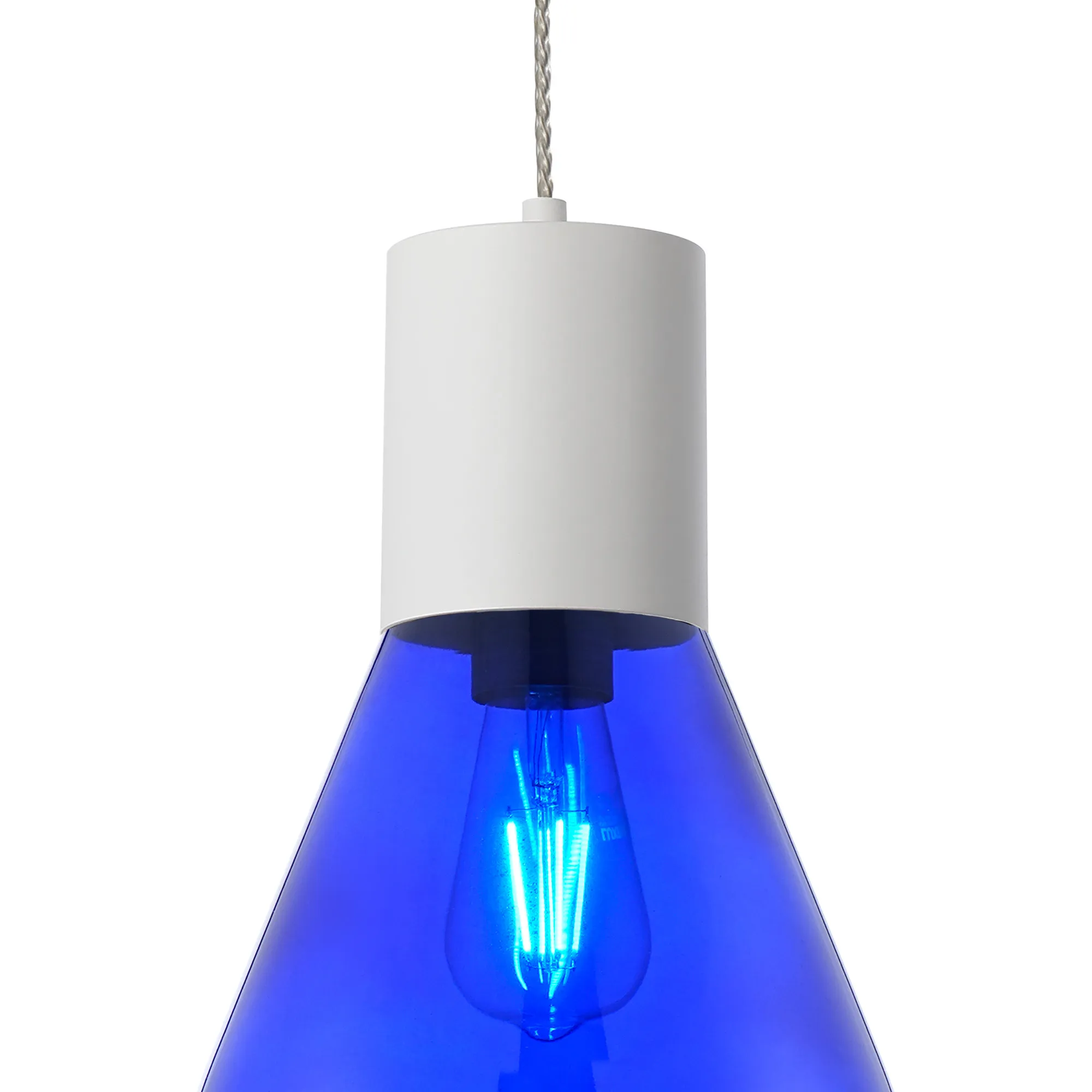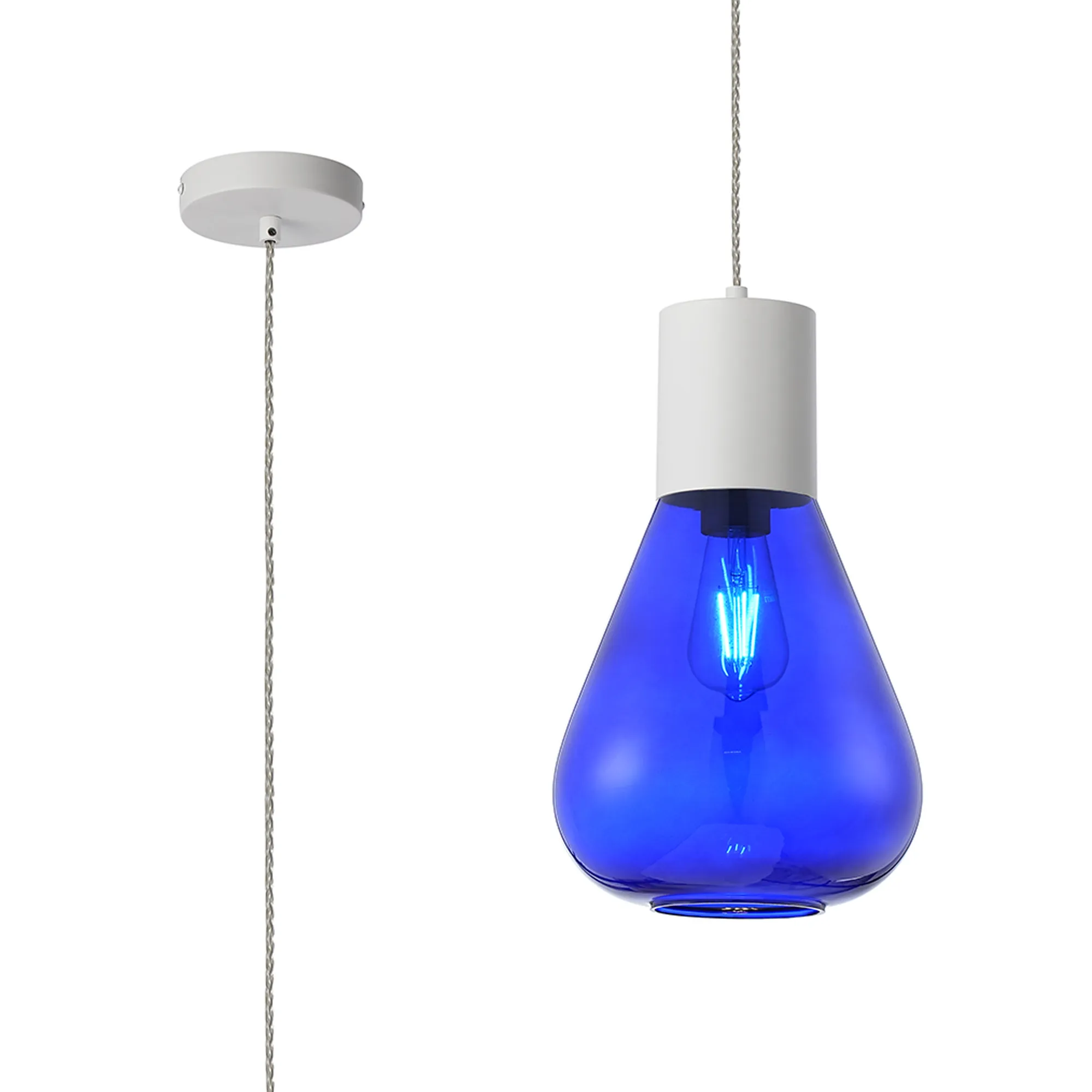 Clyde Pendant With Wide Glass, 1 x E27, Satin White/Blue Ink/Clear Twisted Cable