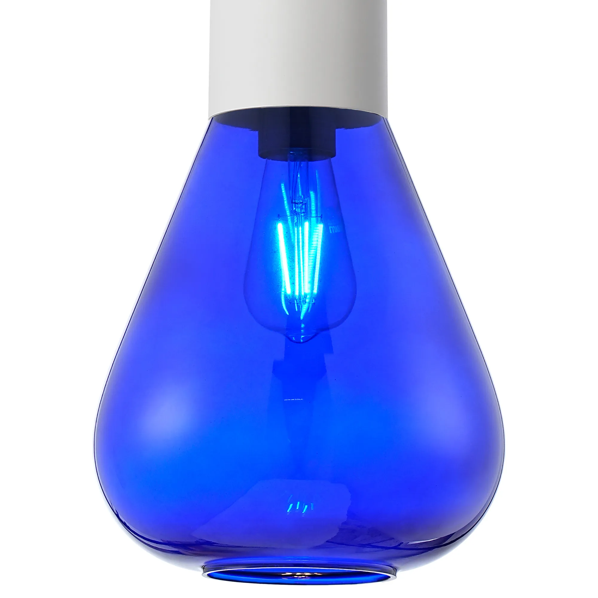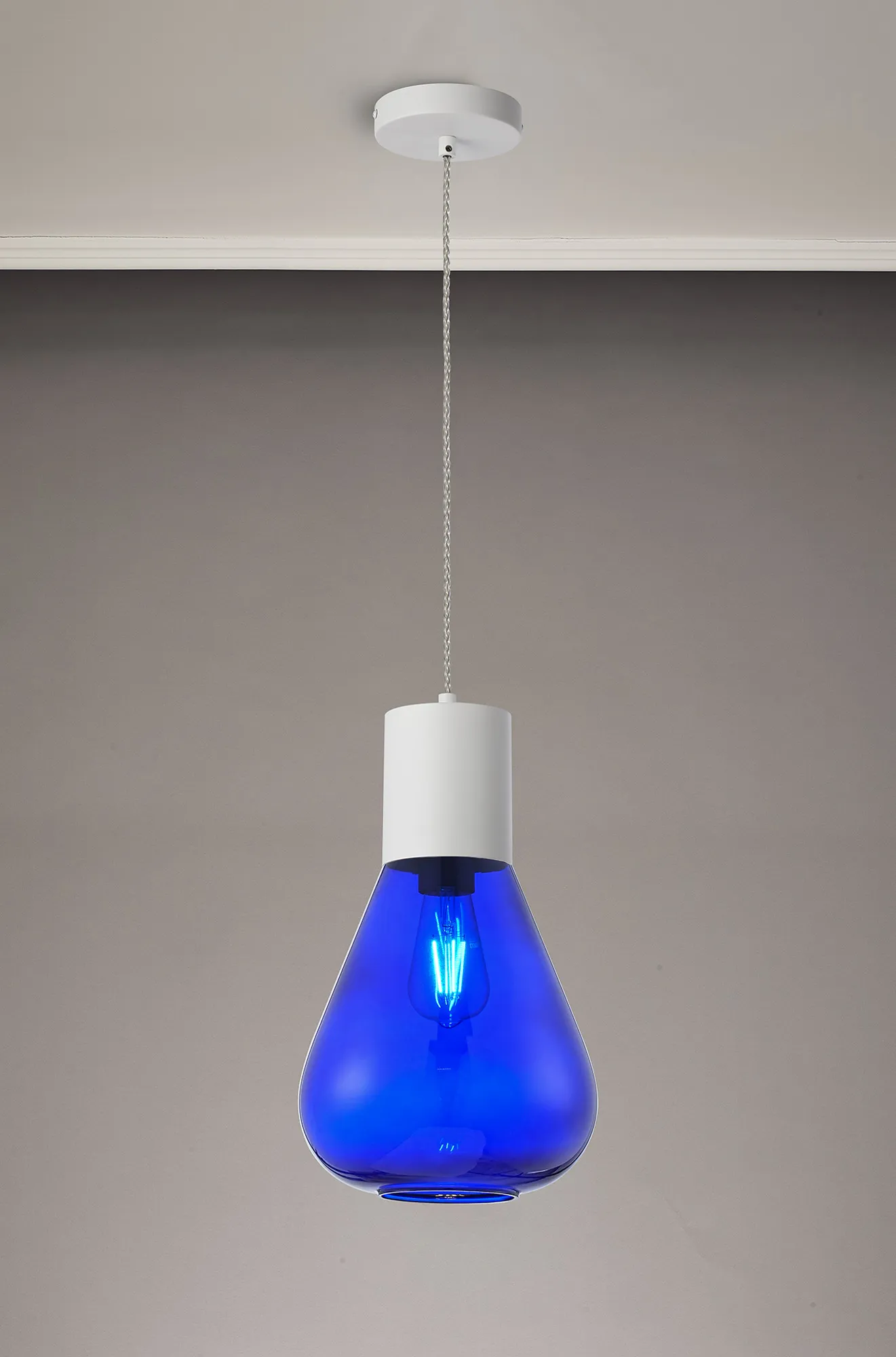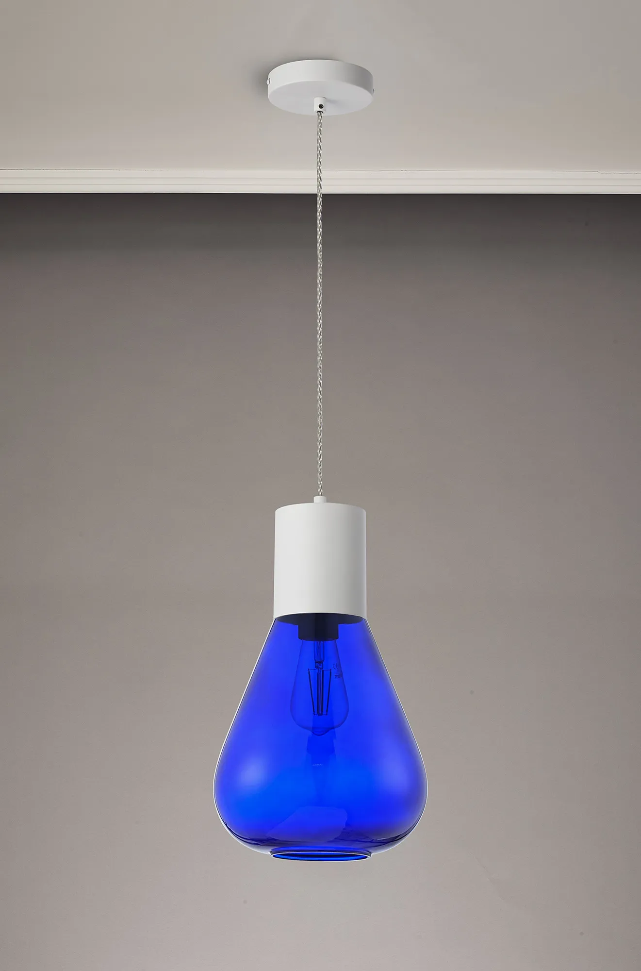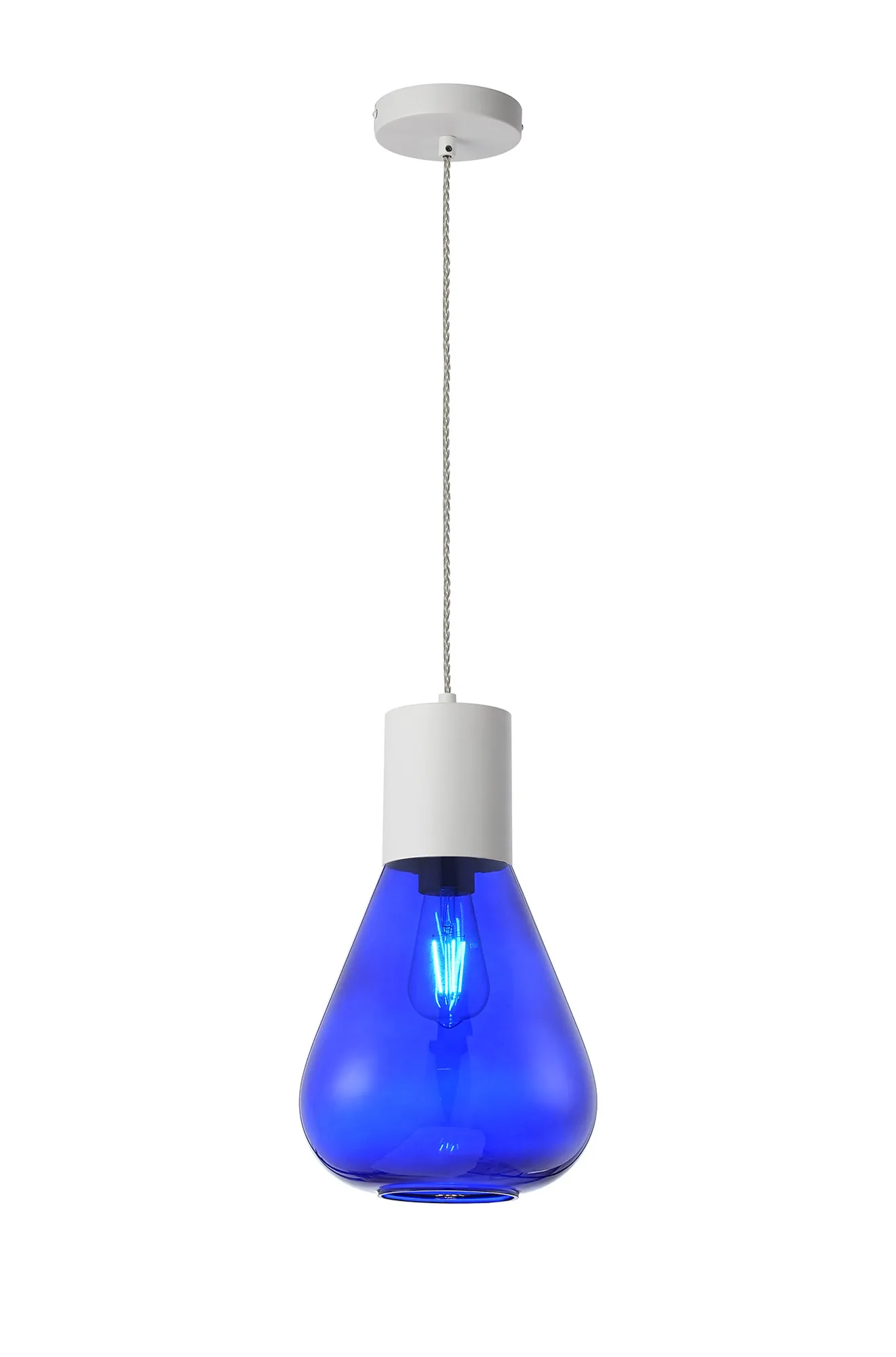 Clyde Pendant With Wide Glass, 1 x E27, Satin White/Blue Ink/Clear Twisted Cable