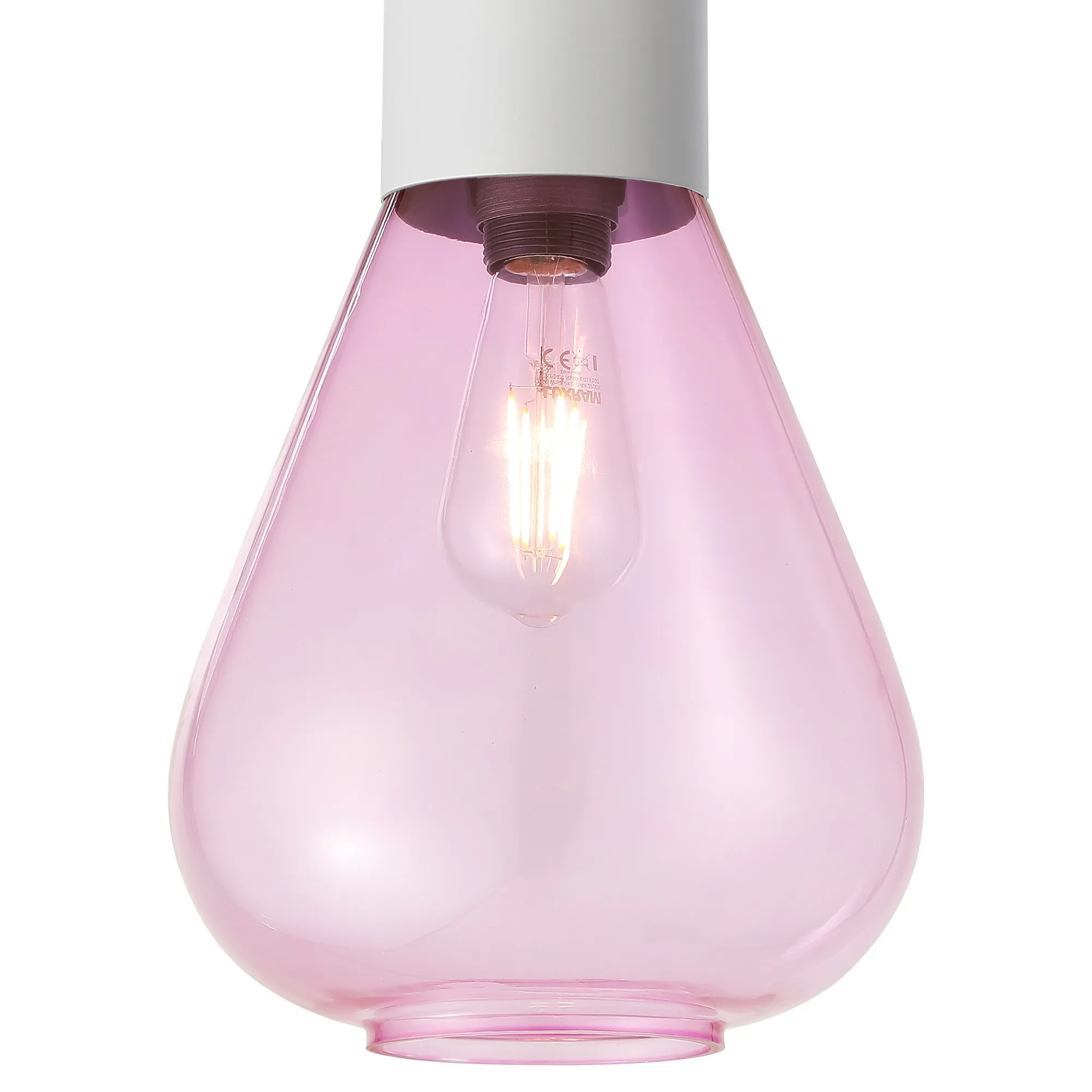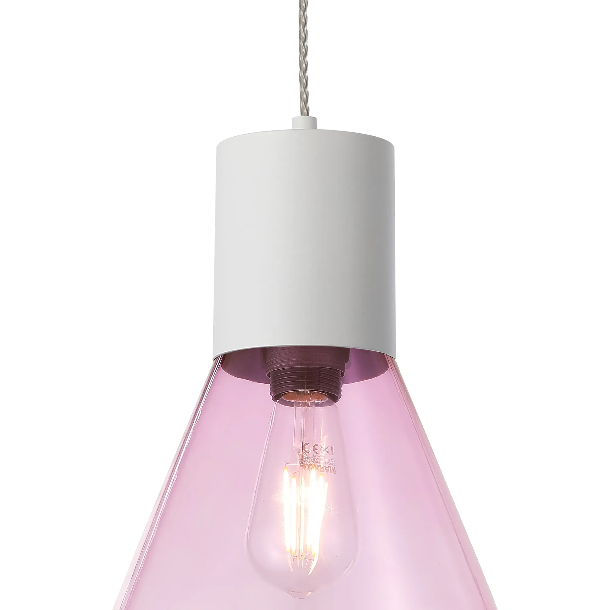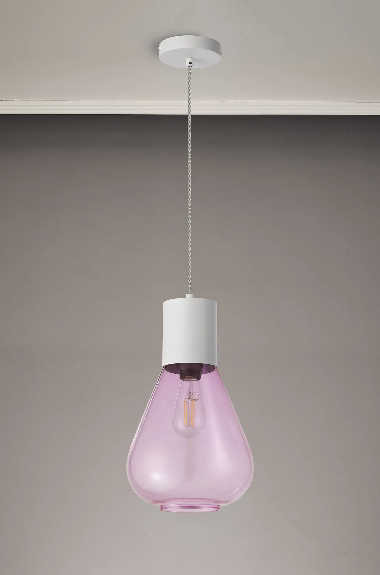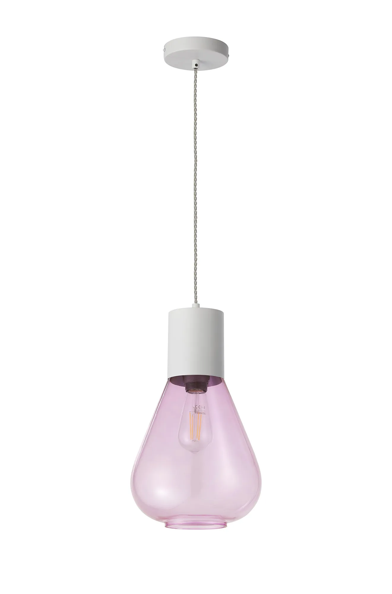 Clyde Pendant With Wide Glass, 1 x E27, Satin White/Lilac/Clear Twisted Cable