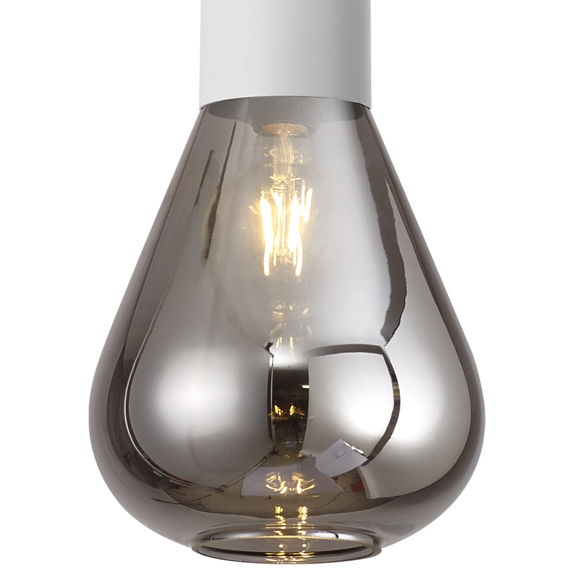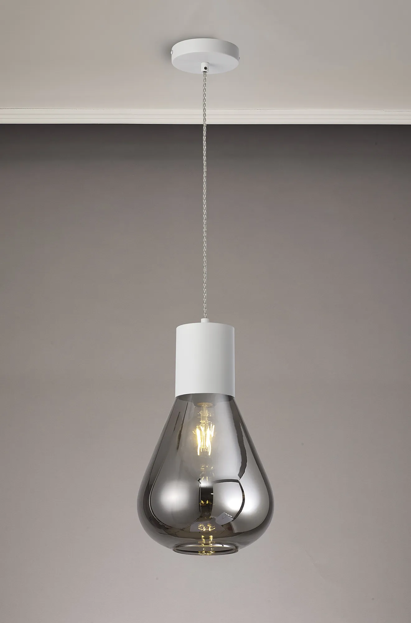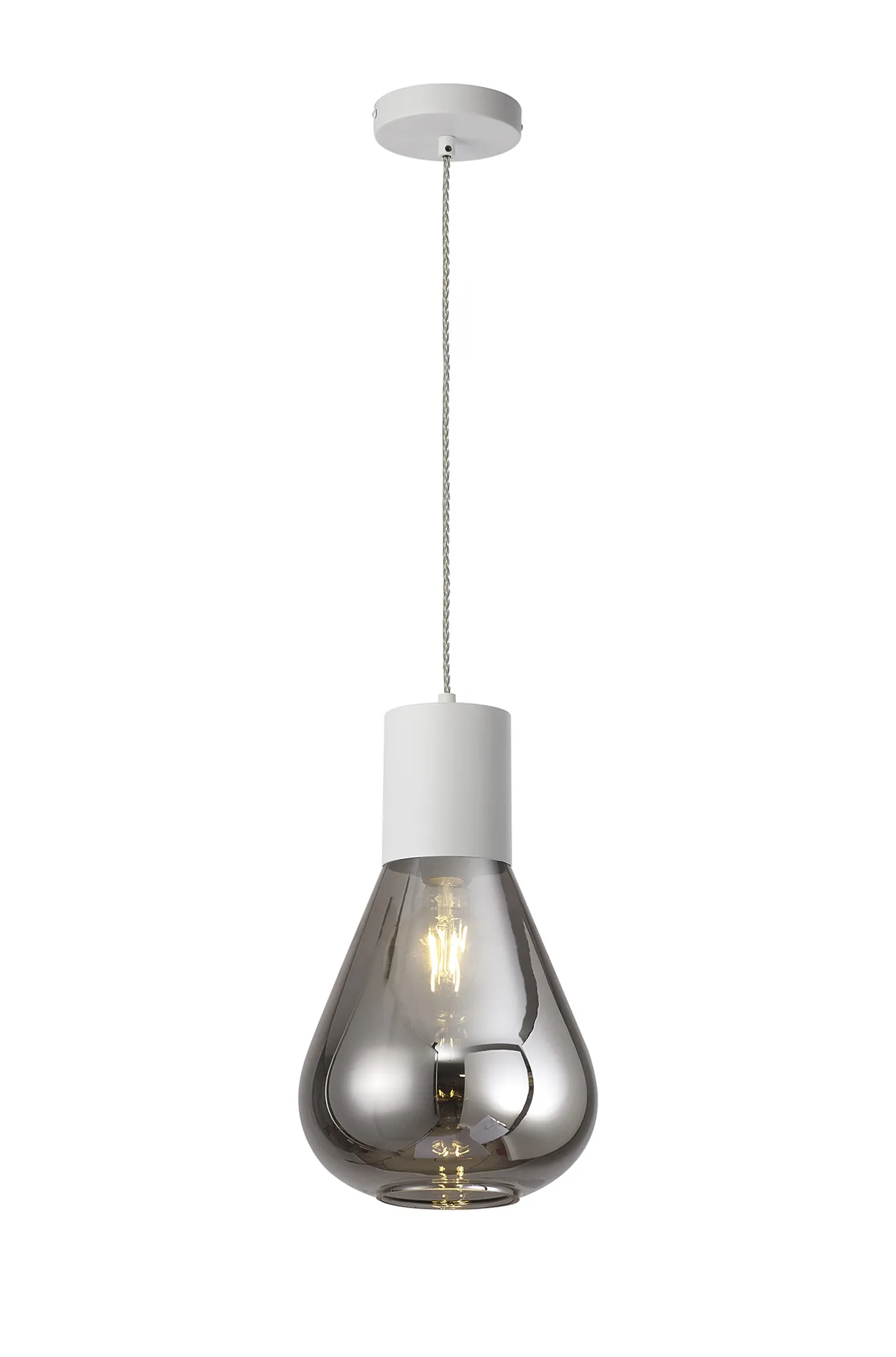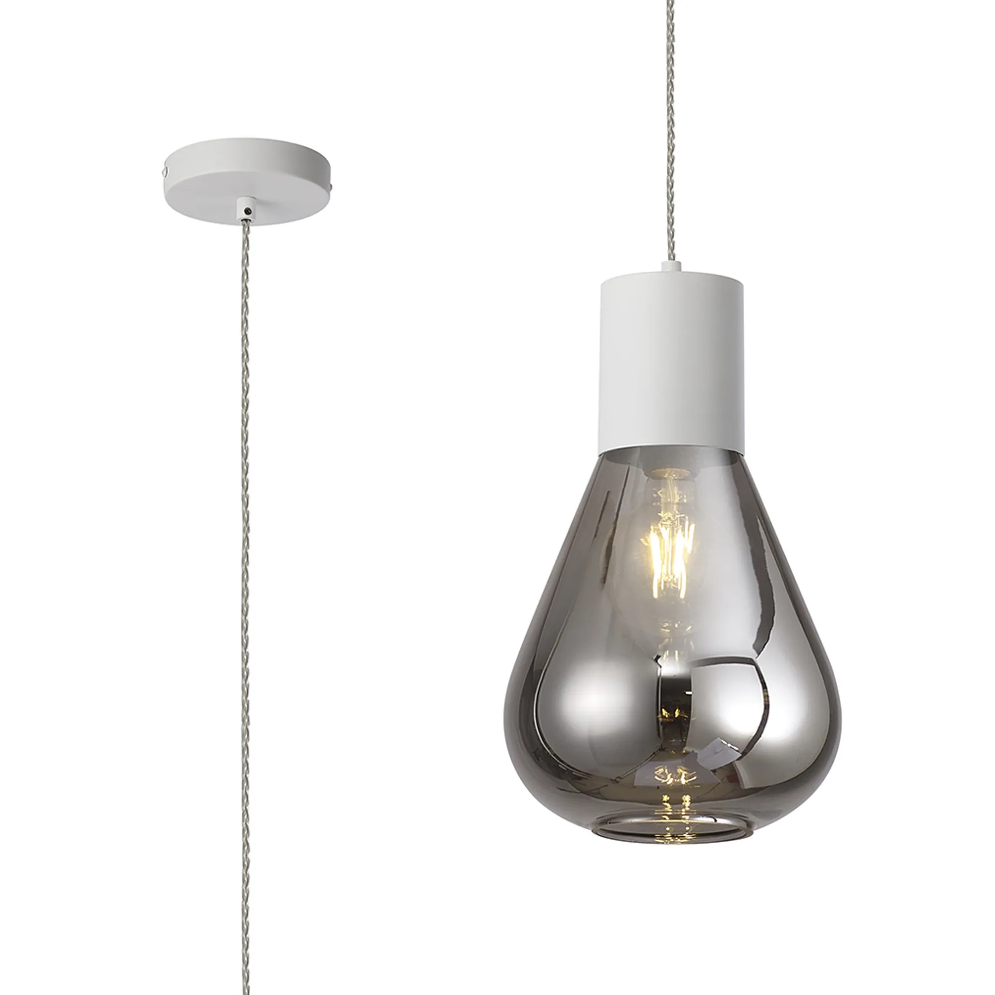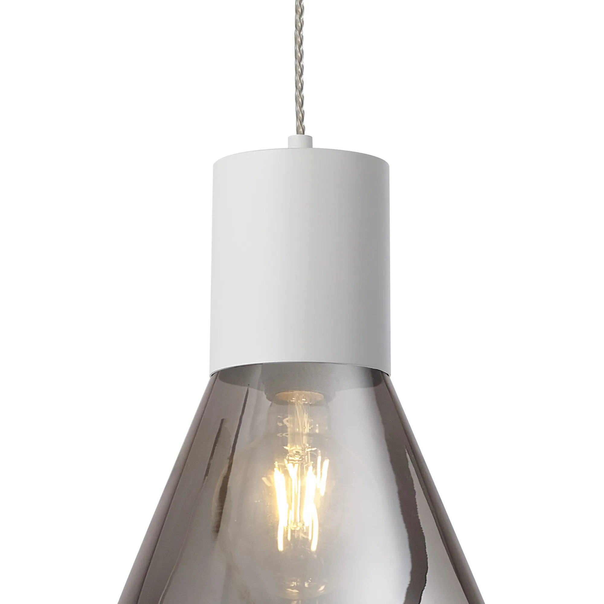 Clyde Pendant With Wide Glass, 1 x E27, Satin White/Smoke/Clear Twisted Cable