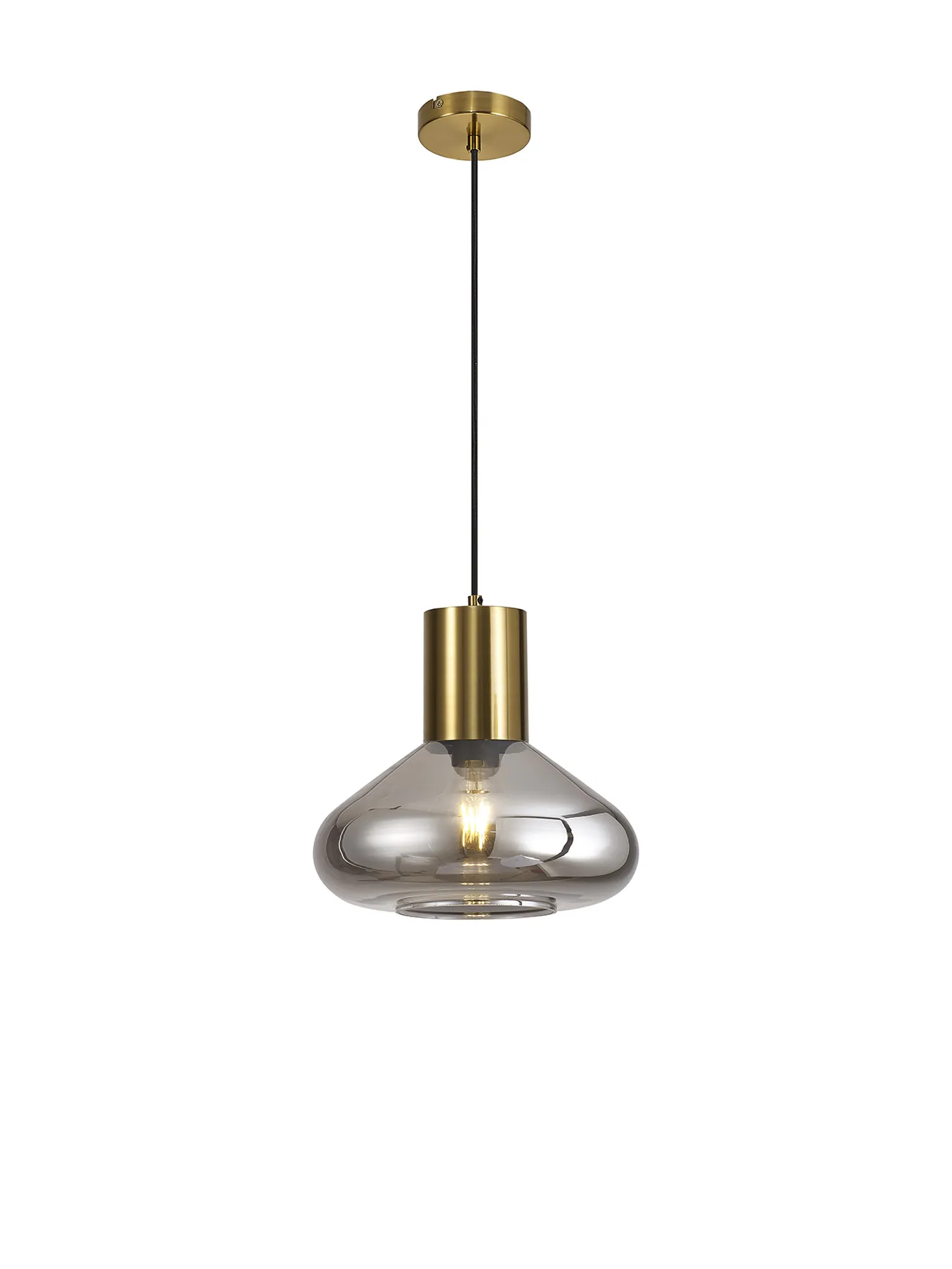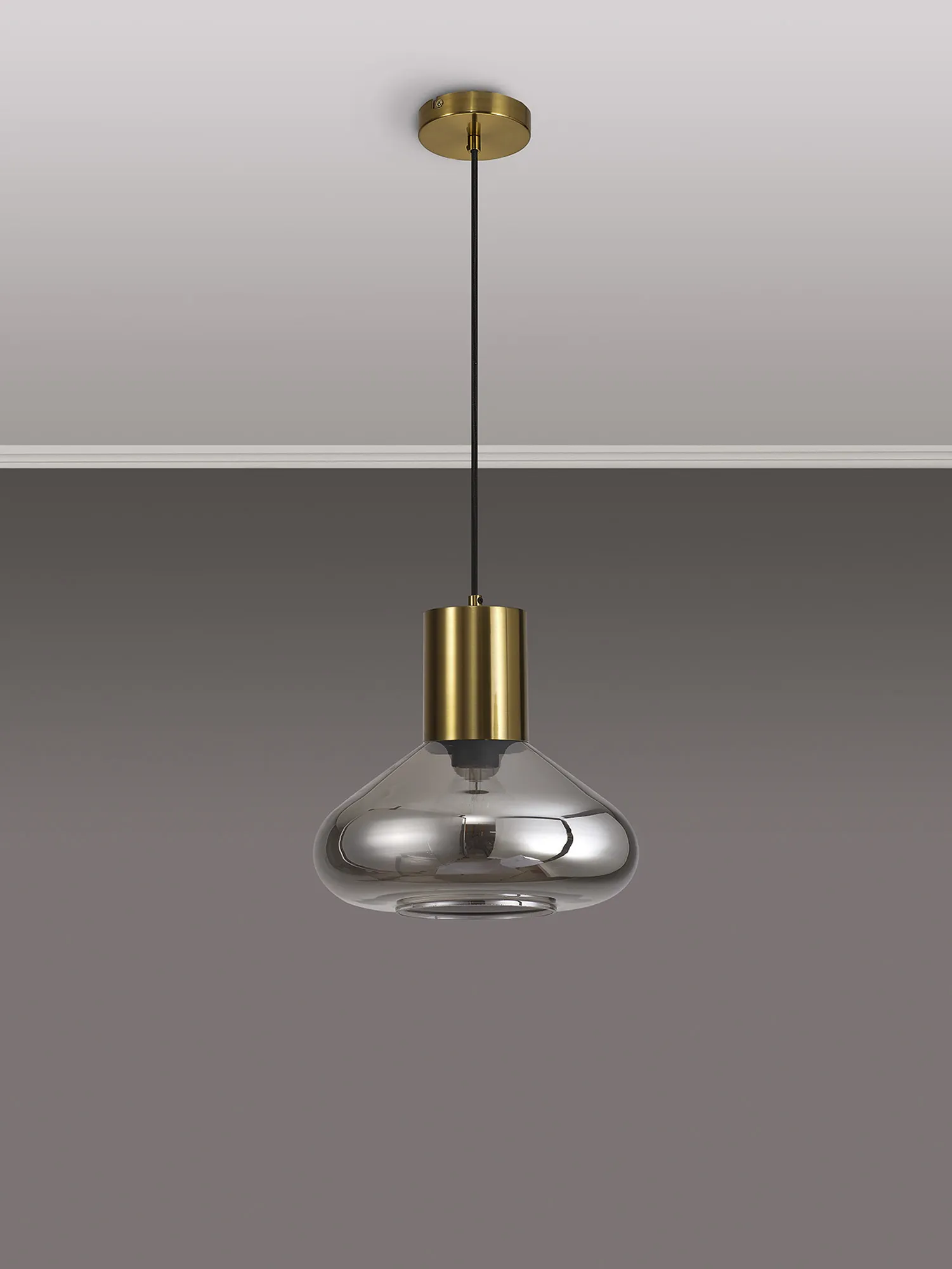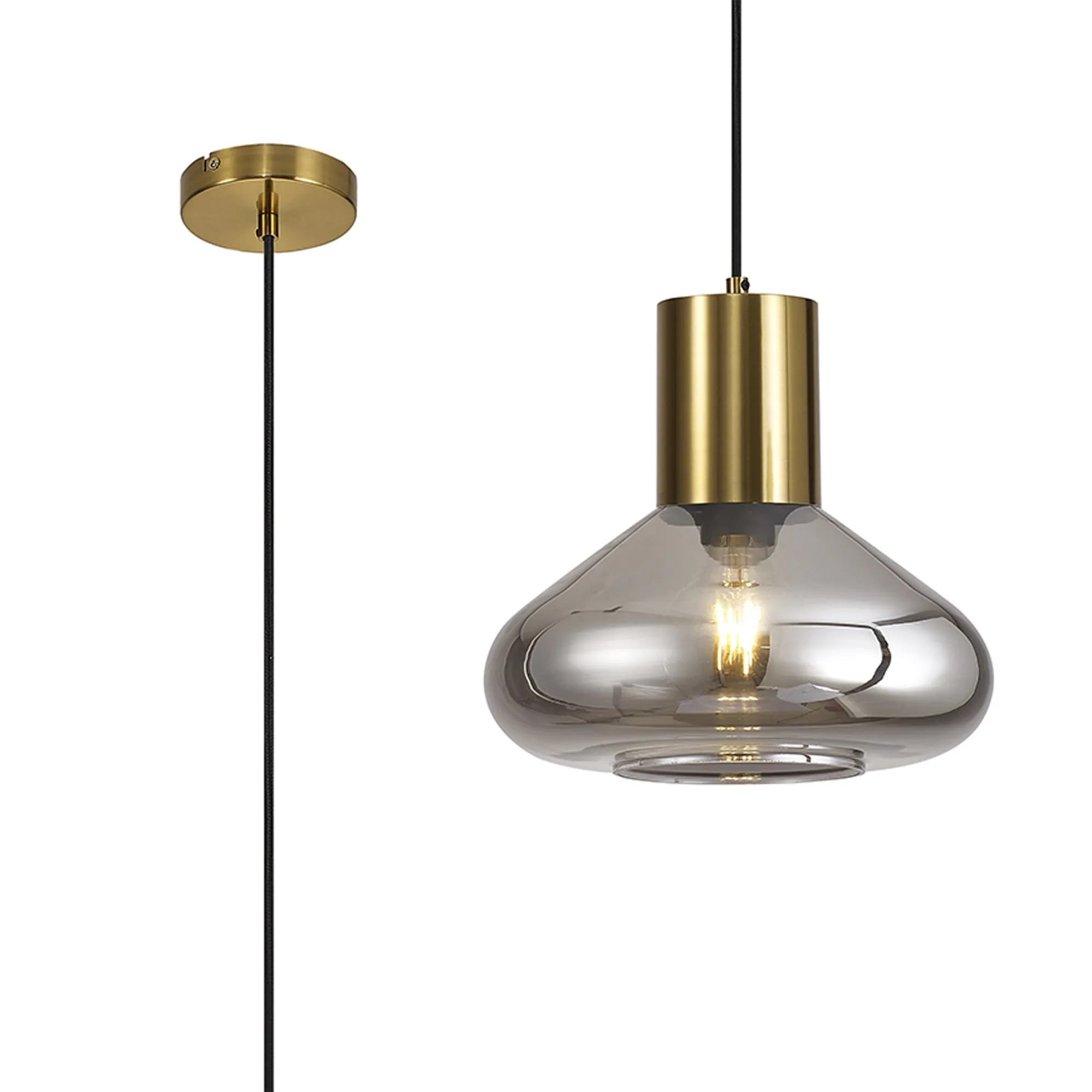 Clyde Ceiling Light With Narrow Glass, 1 x E27, Aged Brass/Smoke