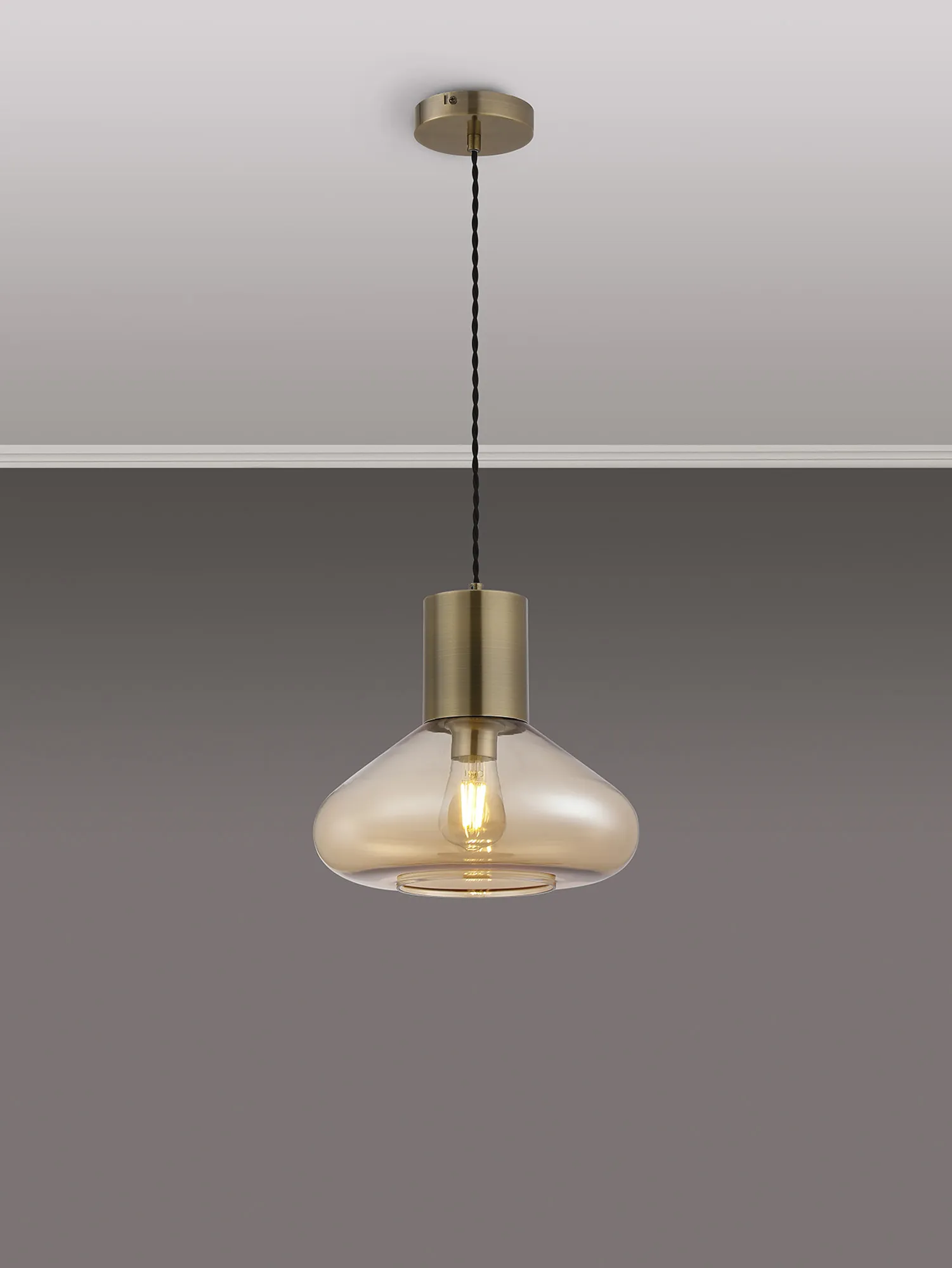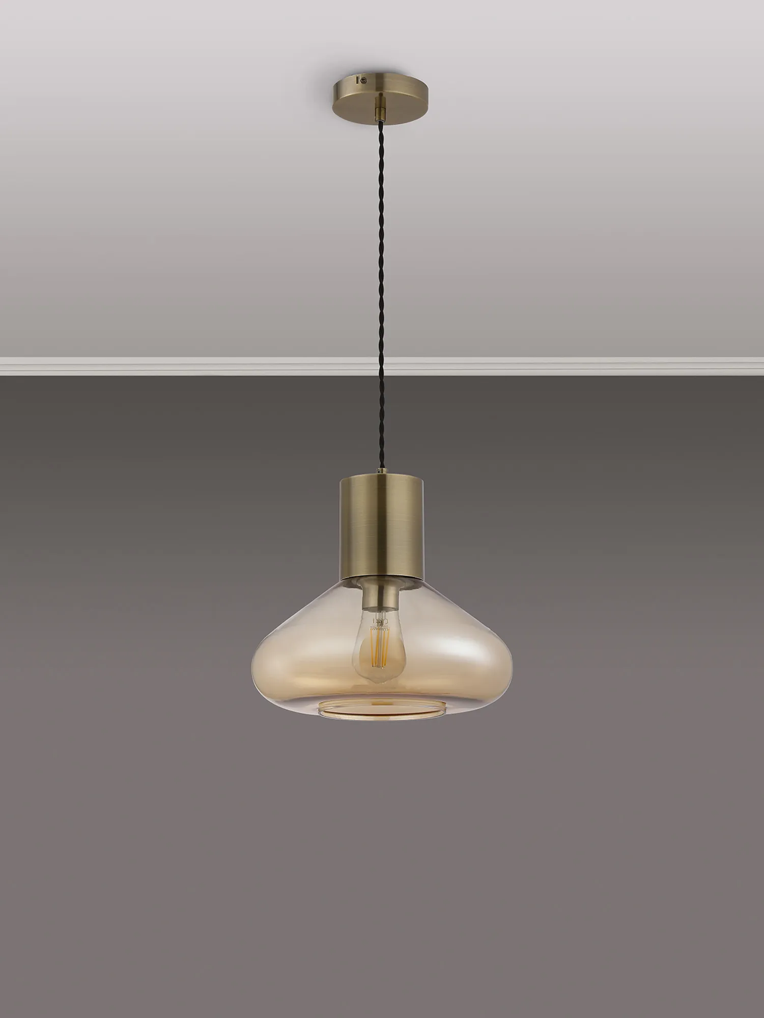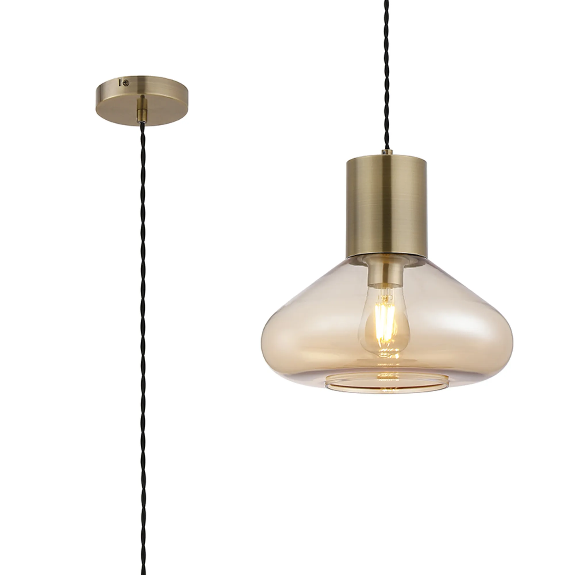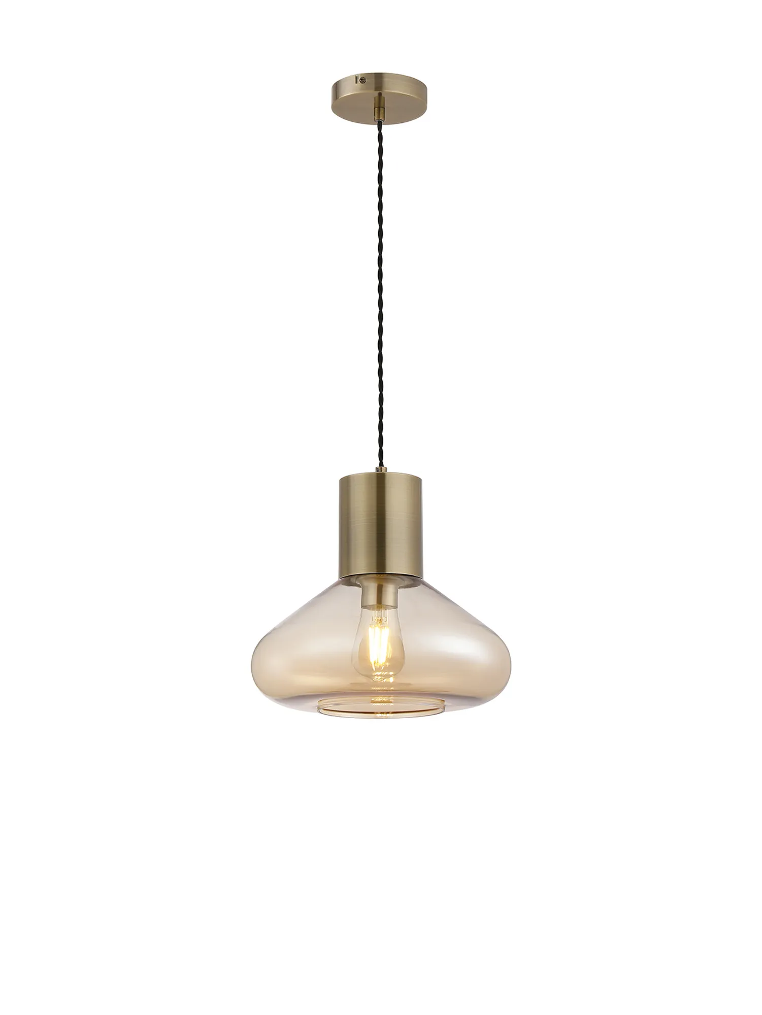 OTHER Clyde Wide Pendant, 1 x E27, Antique Brass/Amber Glass