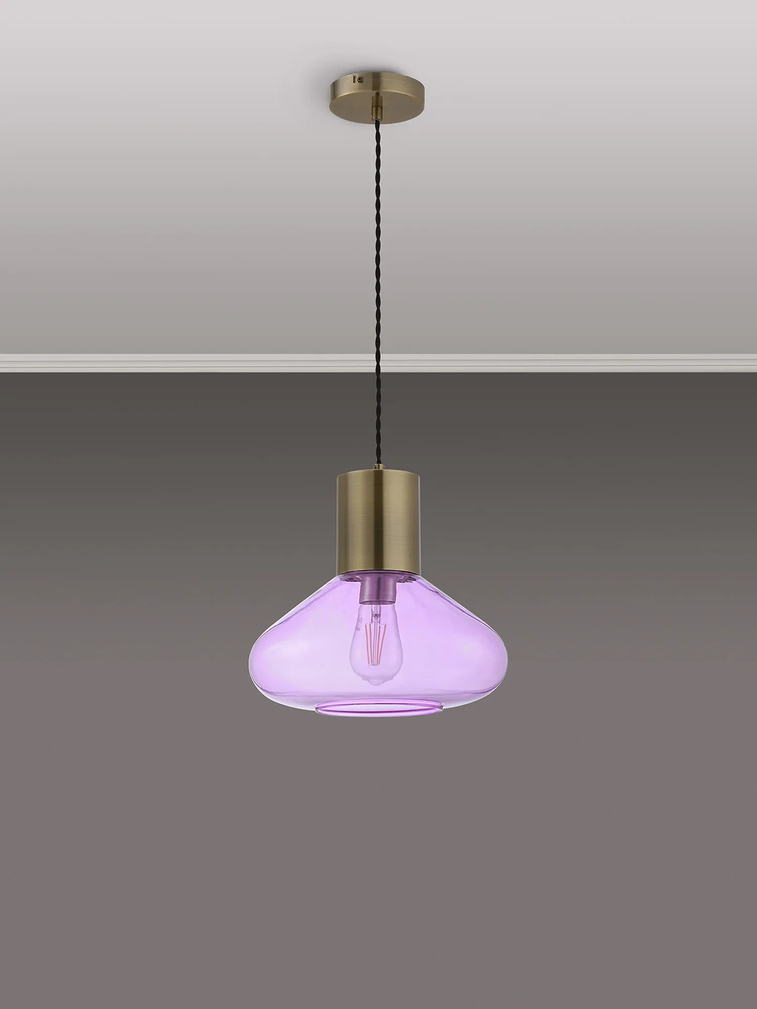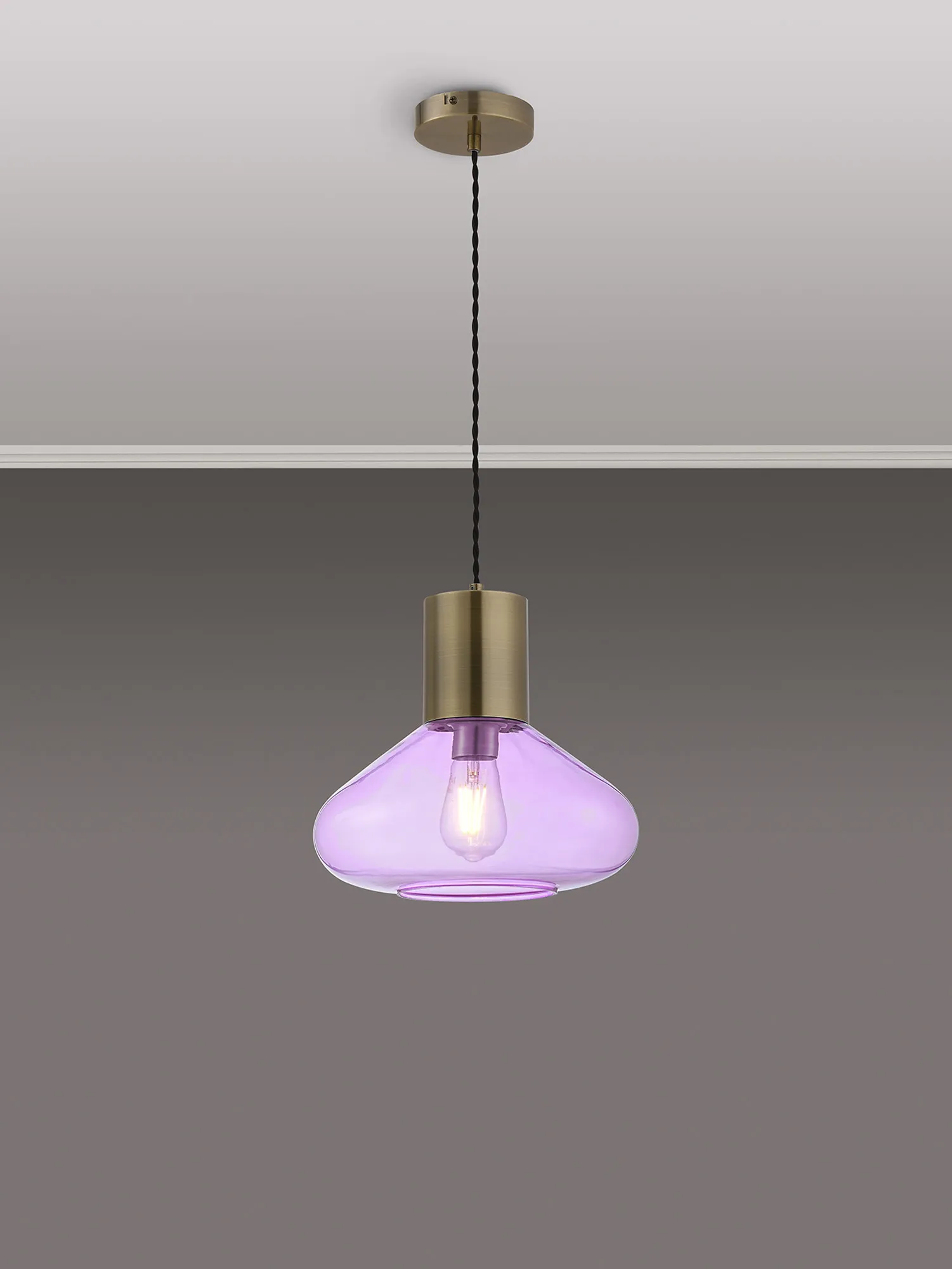 Clyde Pendant (FRAME ONLY), 1 x E27, Antique Brass/Black Braided Twisted Cable