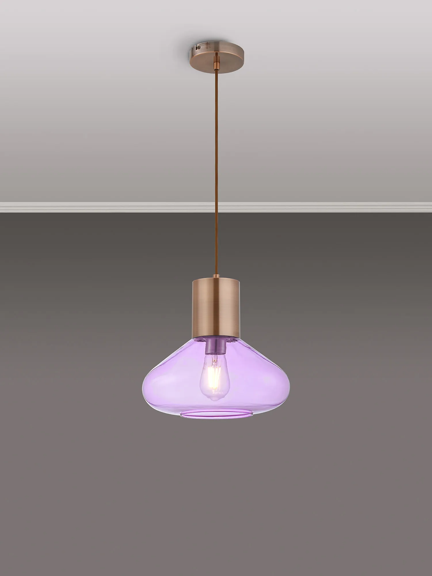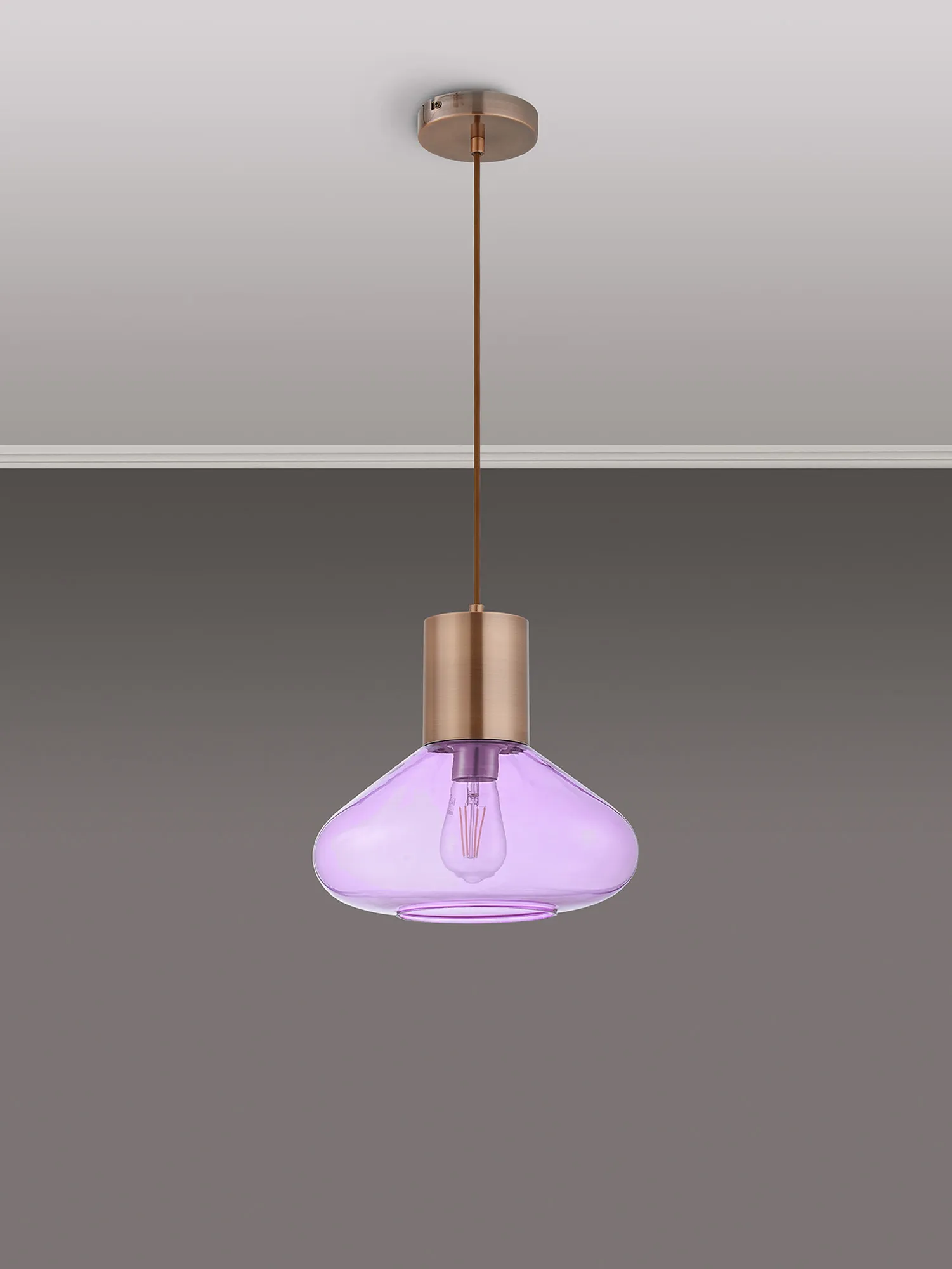 Clyde Ceiling Light With Narrow Glass, 1 x E27, Antique Copper/Lilac