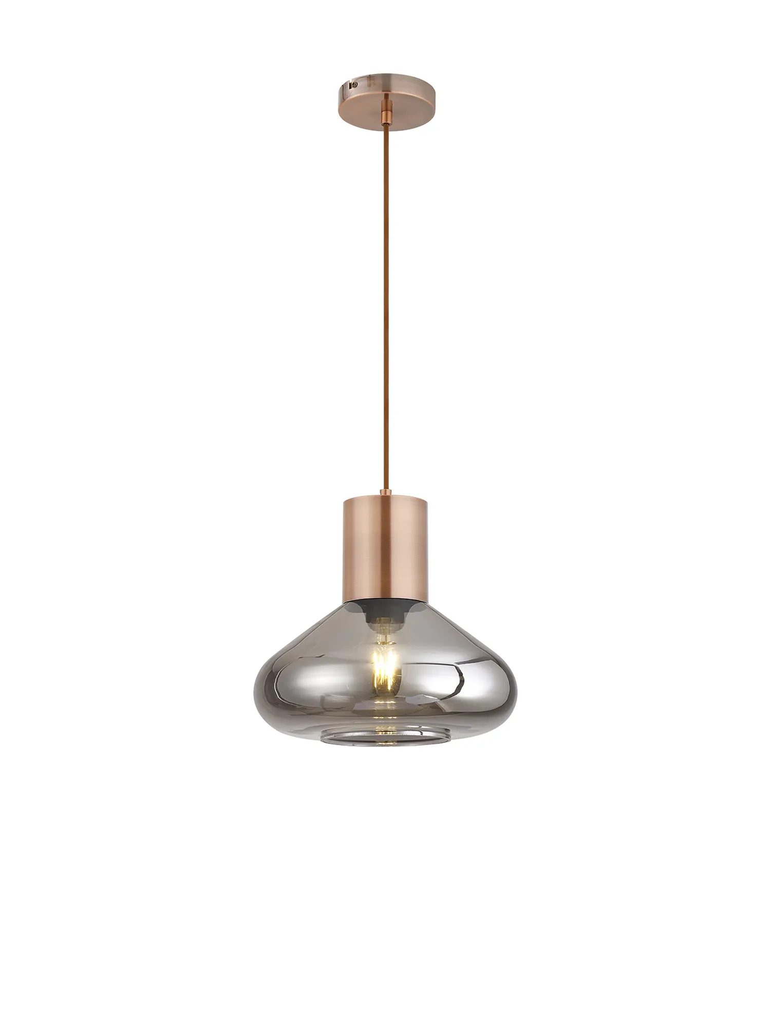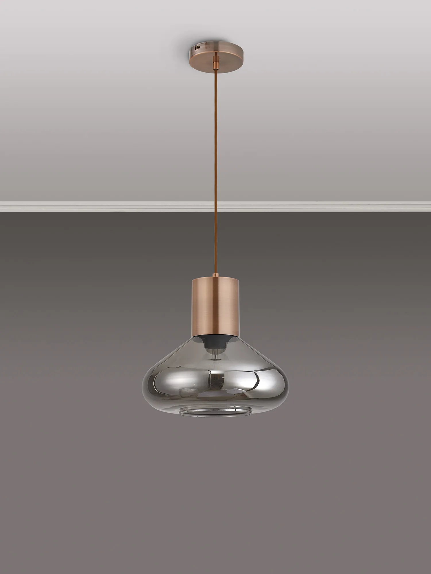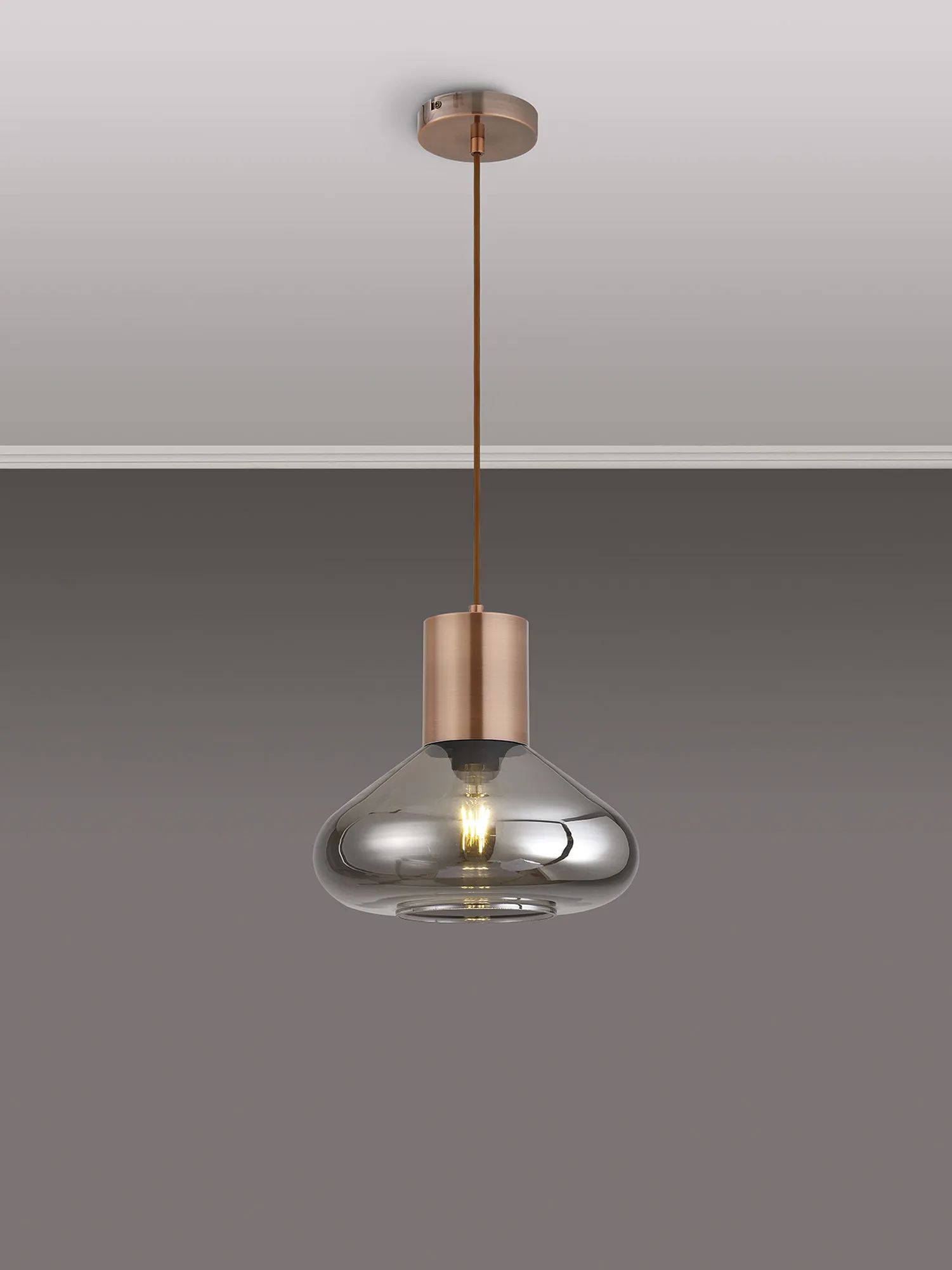 Clyde Ceiling Light With Narrow Glass, 1 x E27, Antique Copper/Smoke