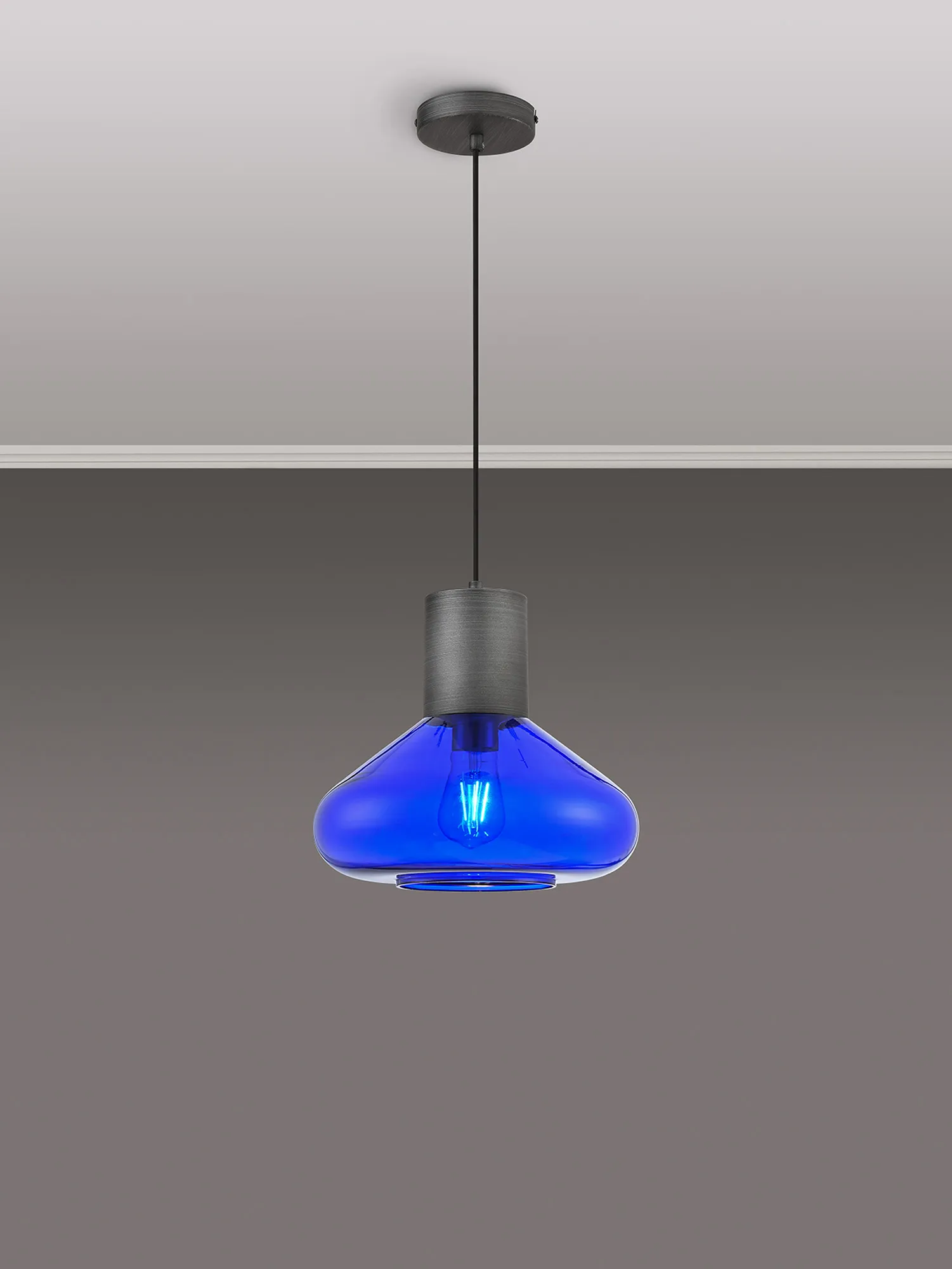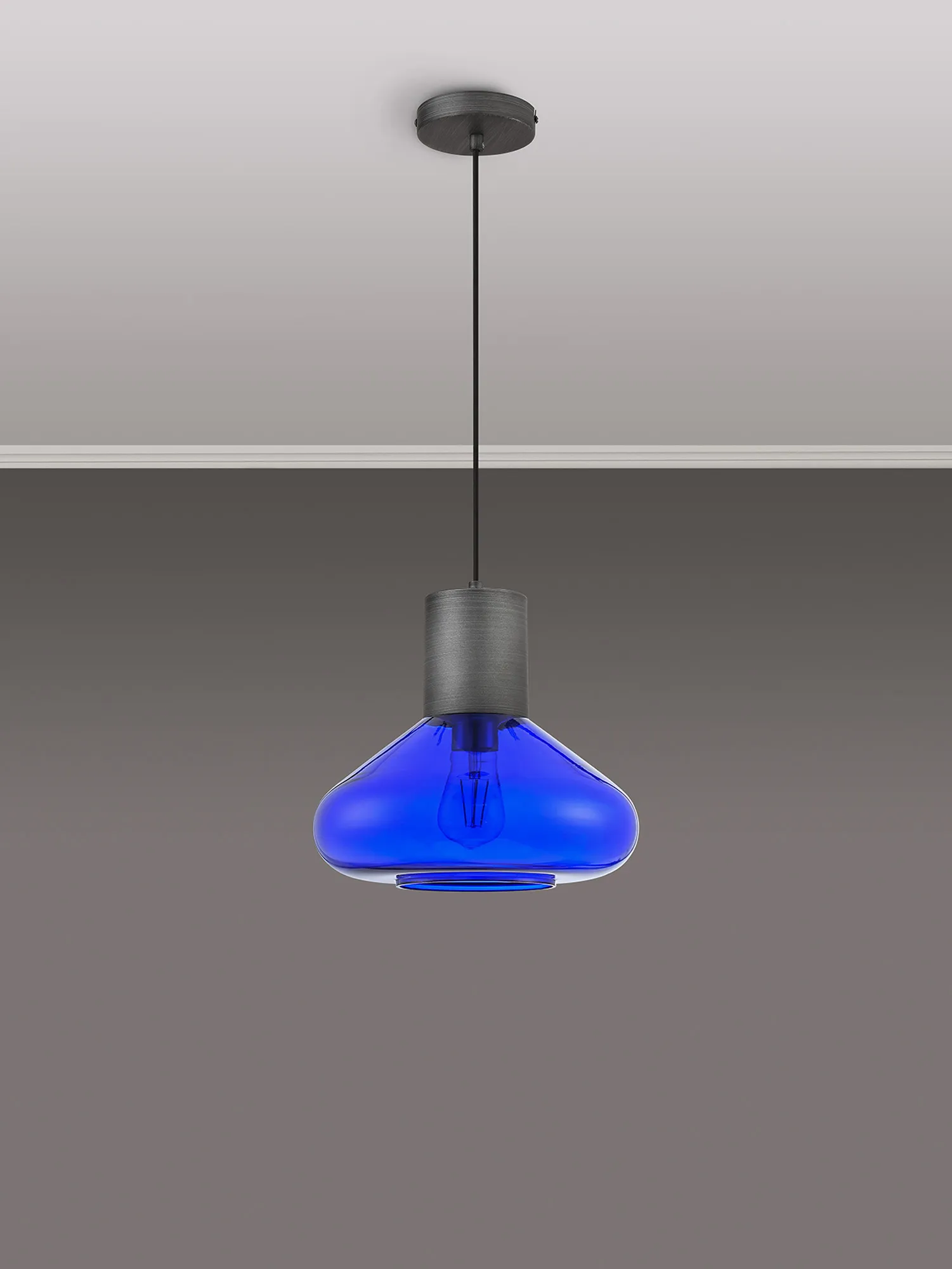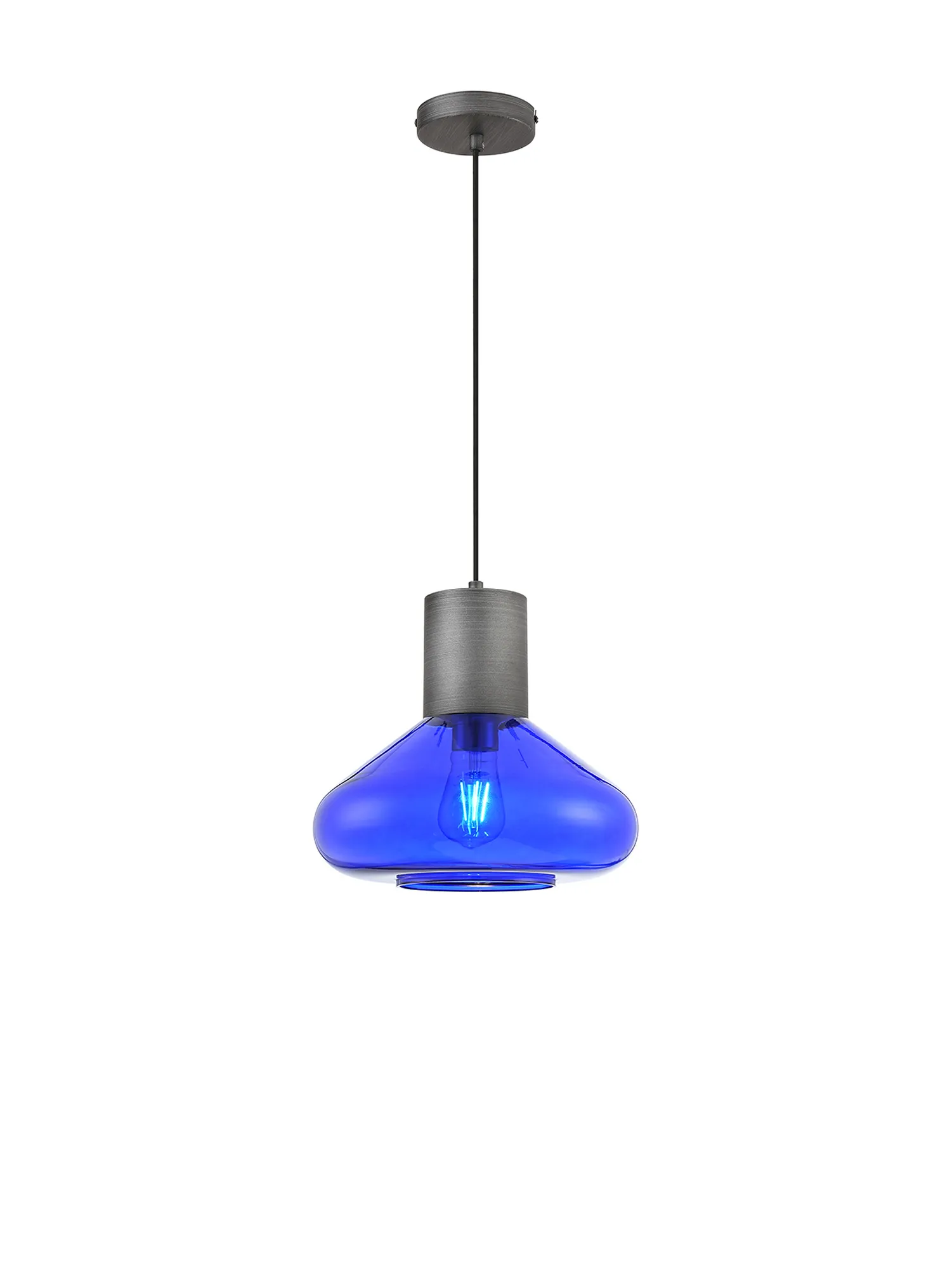 Clyde Ceiling Light With Narrow Glass, 1 x E27, Pewter/Blue Ink