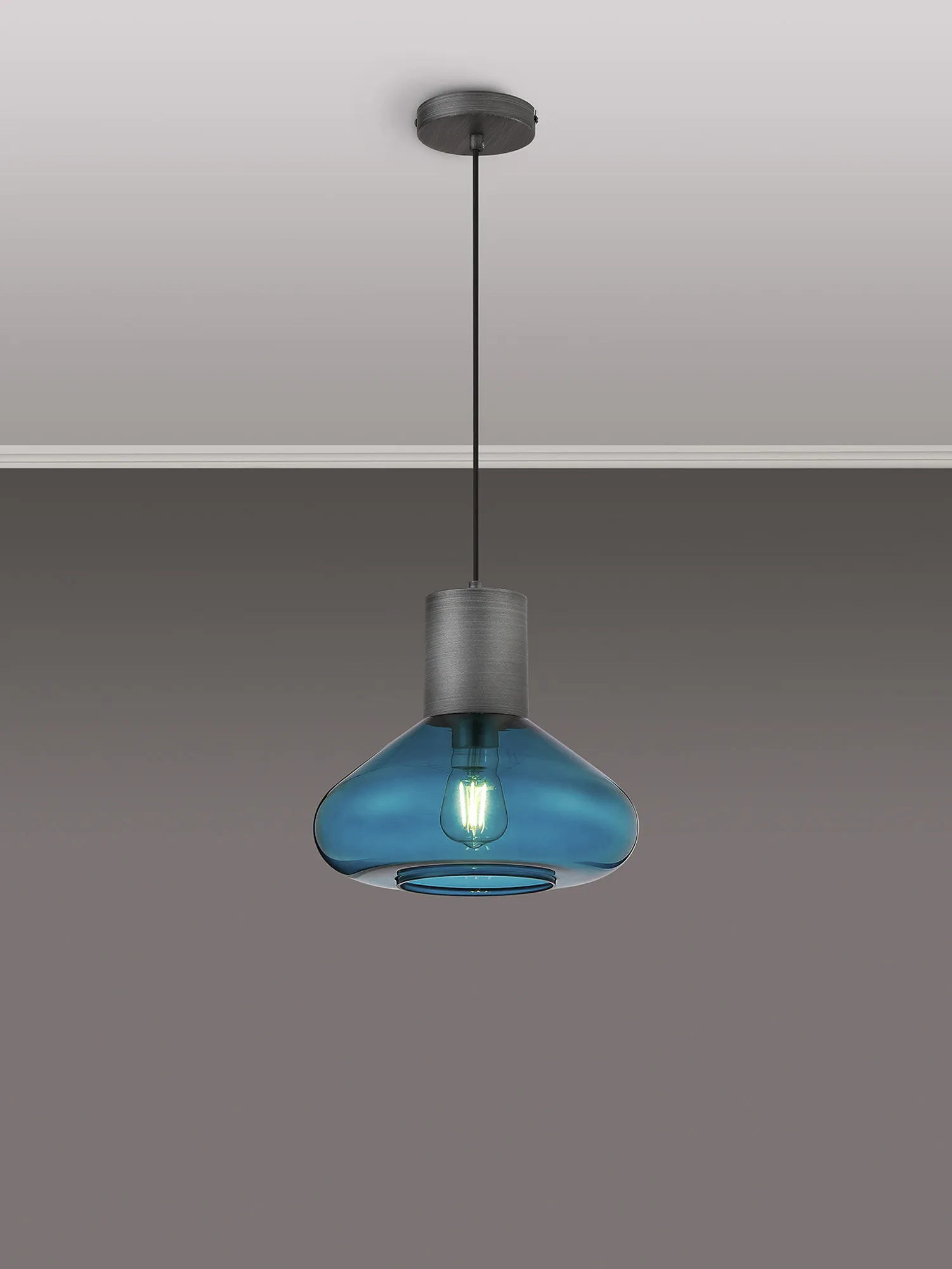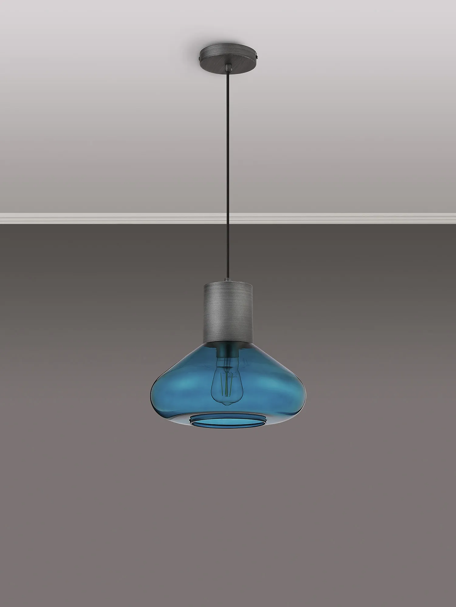 Clyde 23cm Ceiling Light With Narrow Glass, 1 x E27, Pewter/Teal Blue