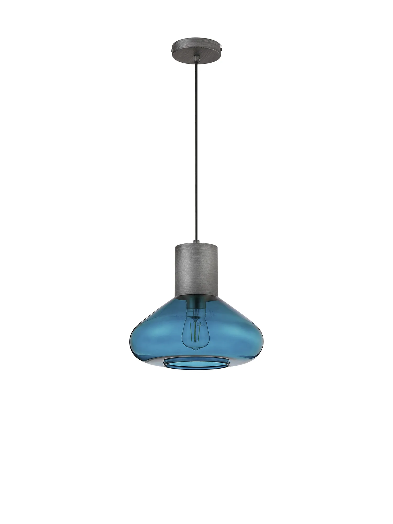 Clyde Ceiling Light With Narrow Glass, 1 x E27, Pewter/Teal Blue