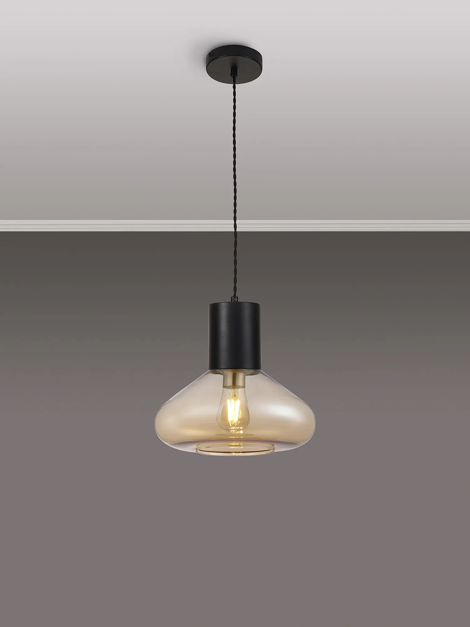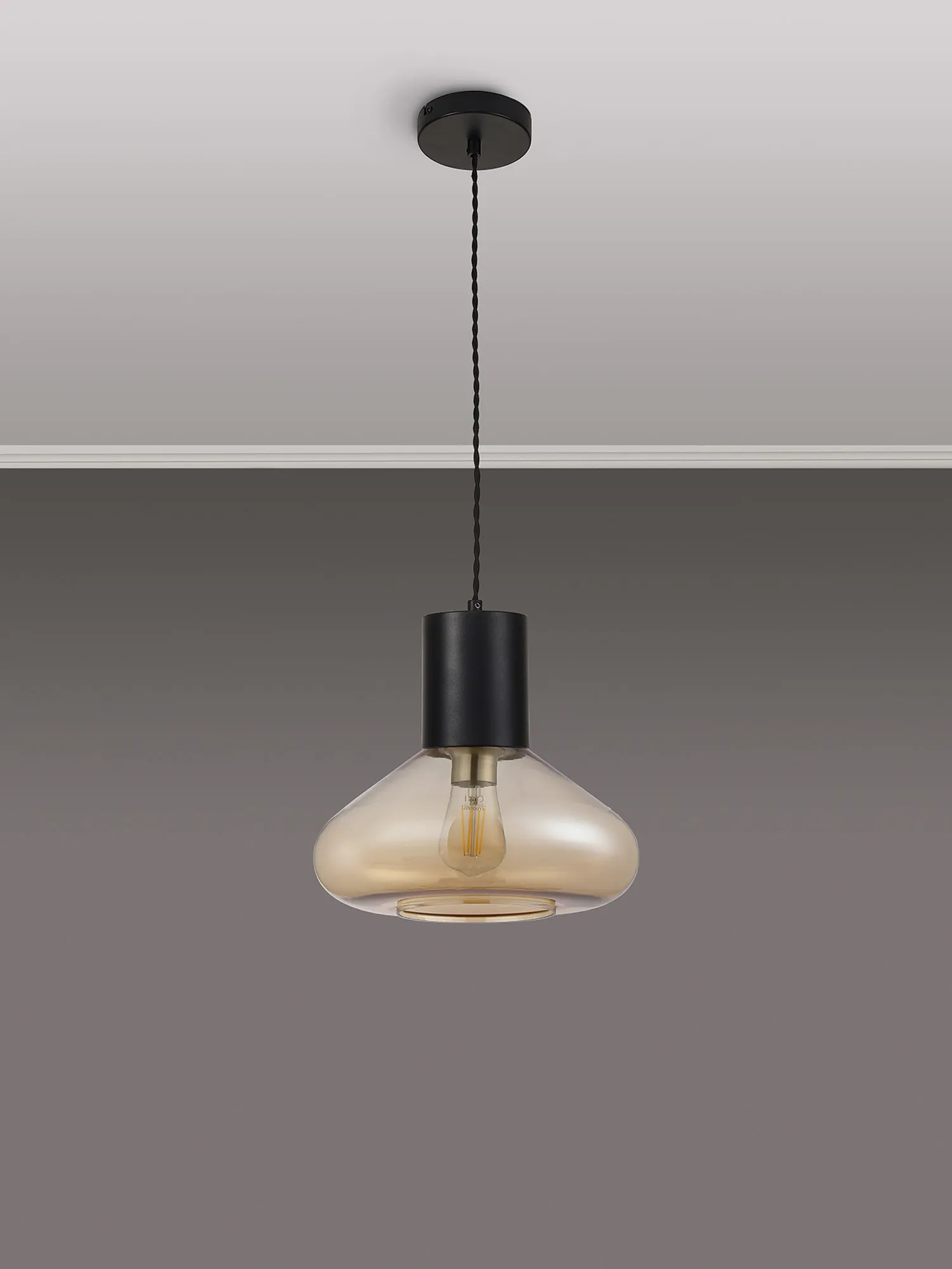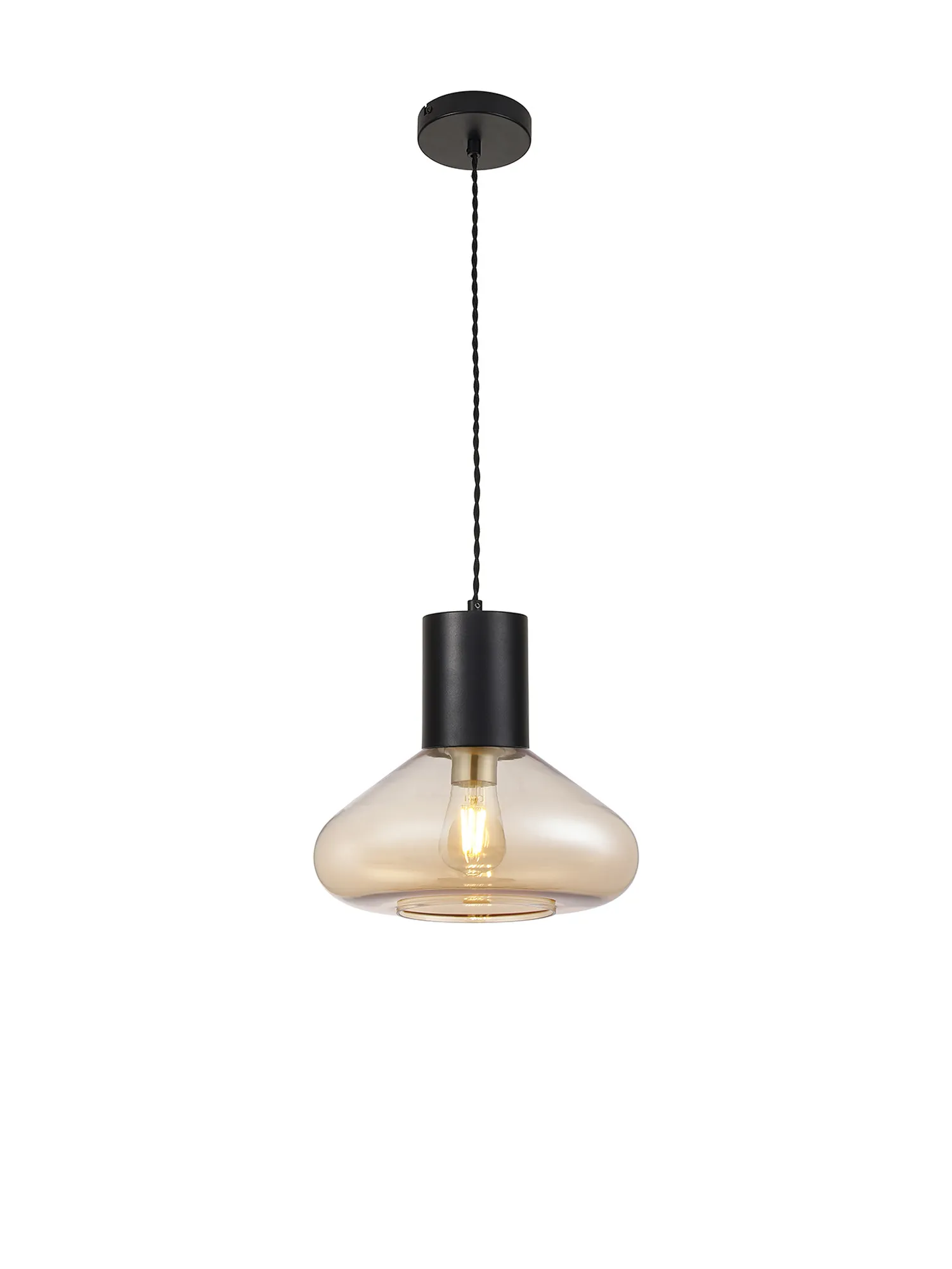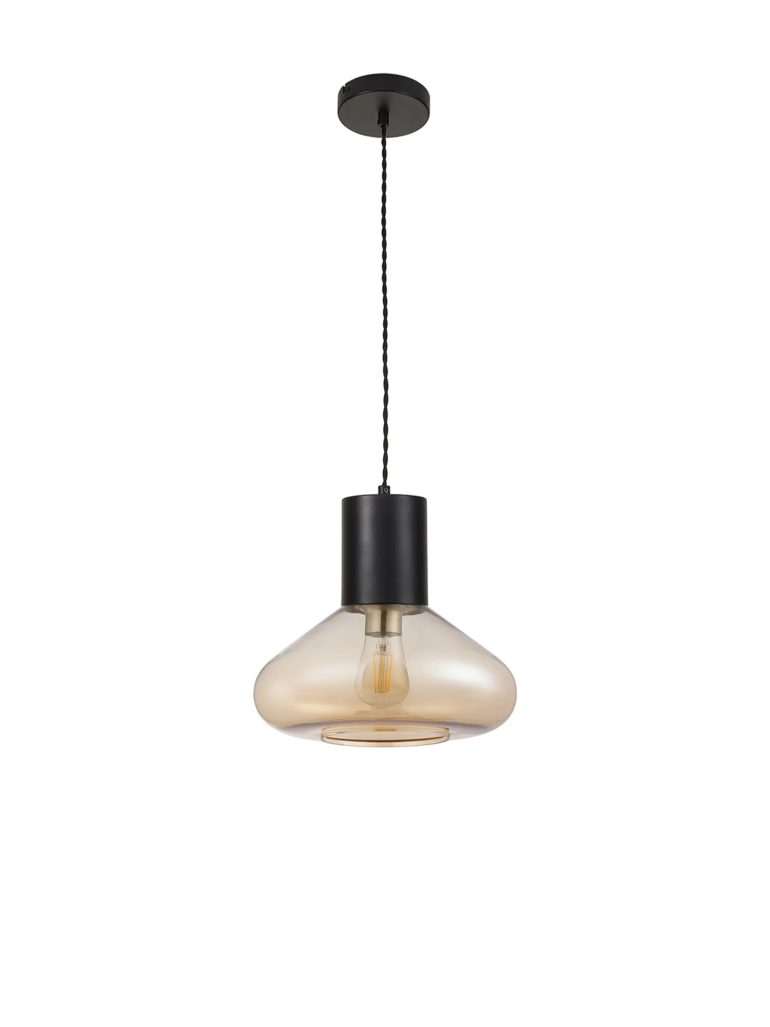 OTHER Clyde Wide Pendant, 1 x E27, Satin Black/Amber Glass