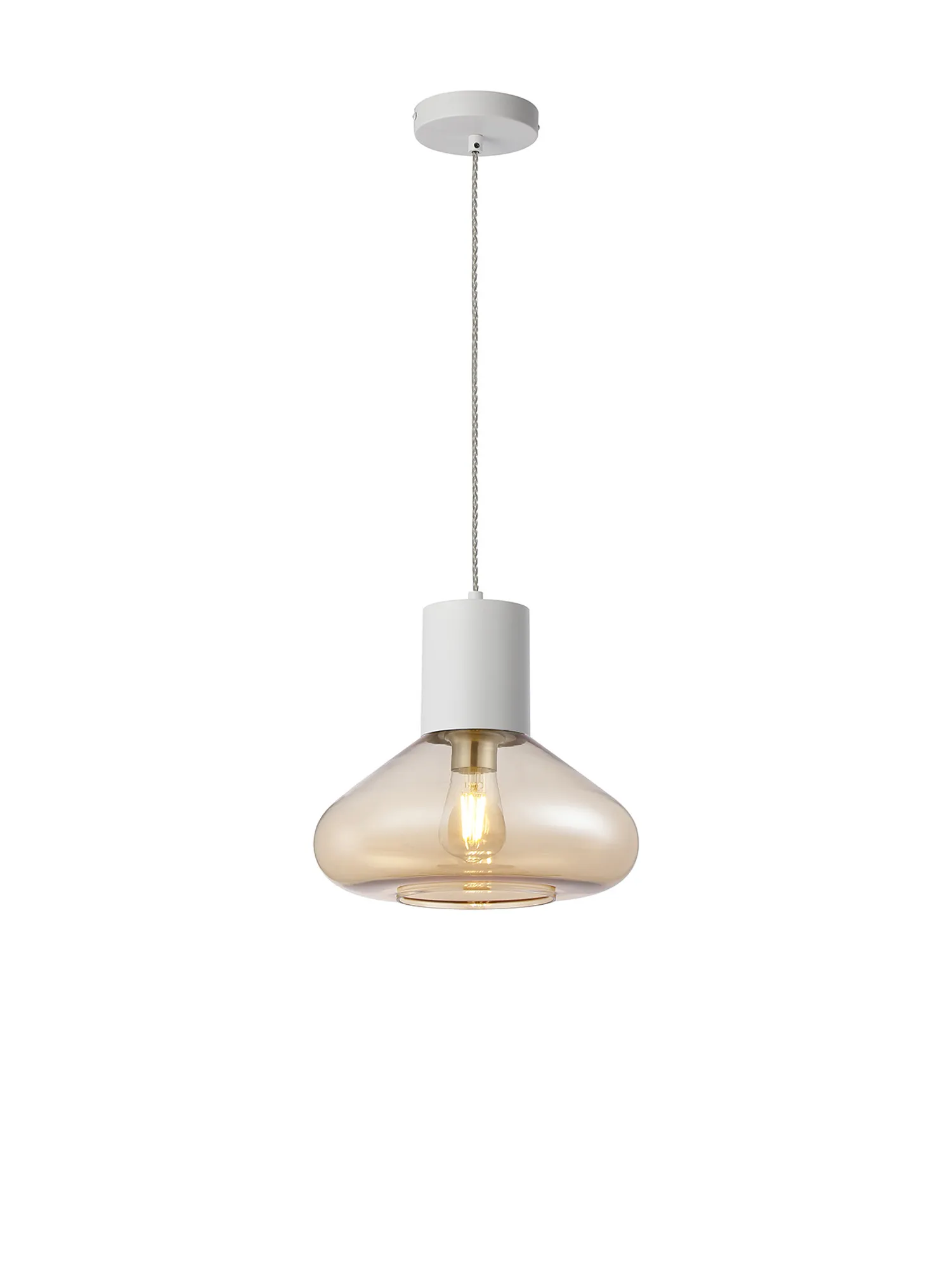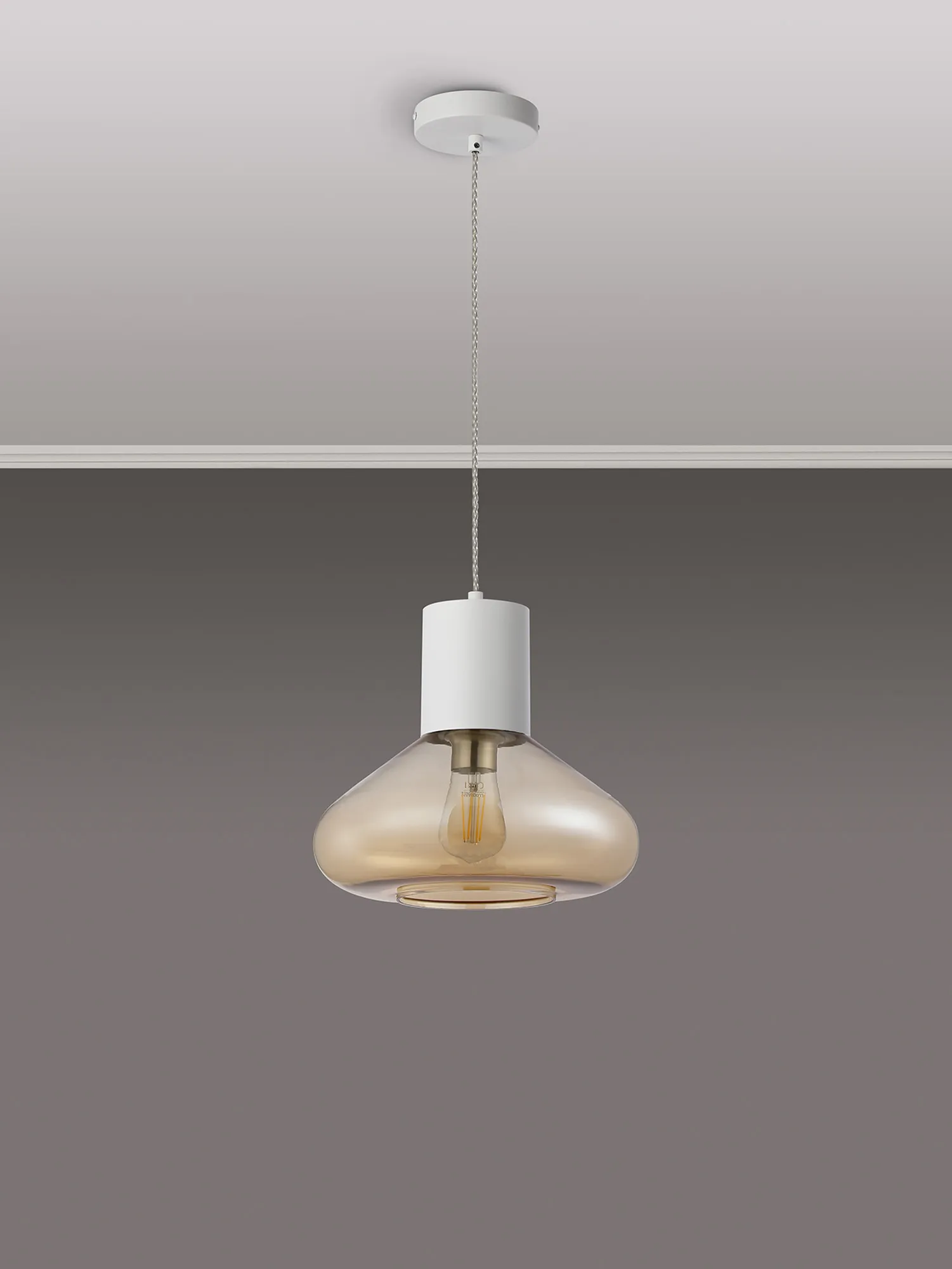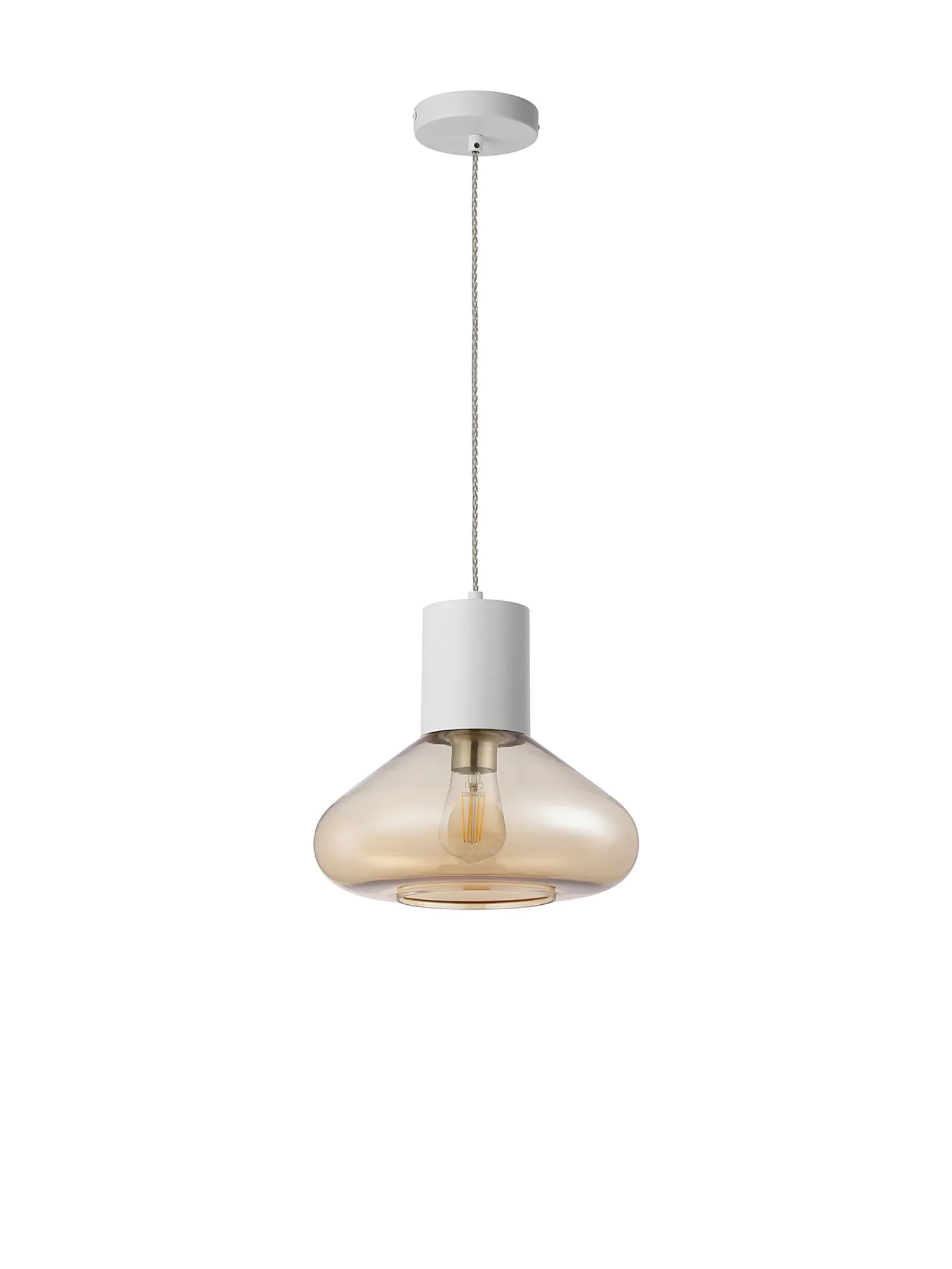 OTHER Clyde Pendant With Wide Glass, 1 x E27, Satin White/Amber/Clear Twisted Cable