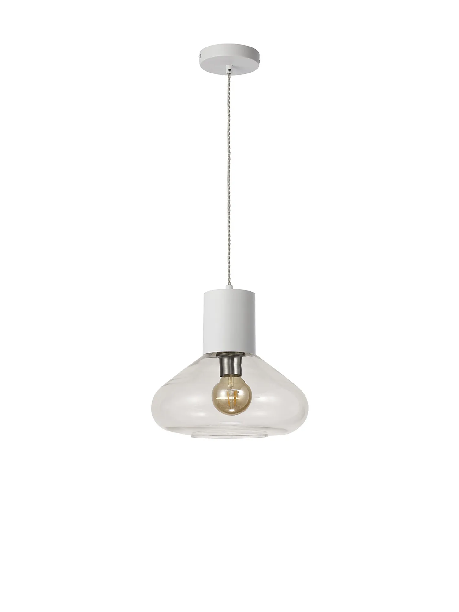 Clyde 23cm Pendant With Narrow Glass, 1 x E27, Satin White/Clear/Clear Twisted Cable