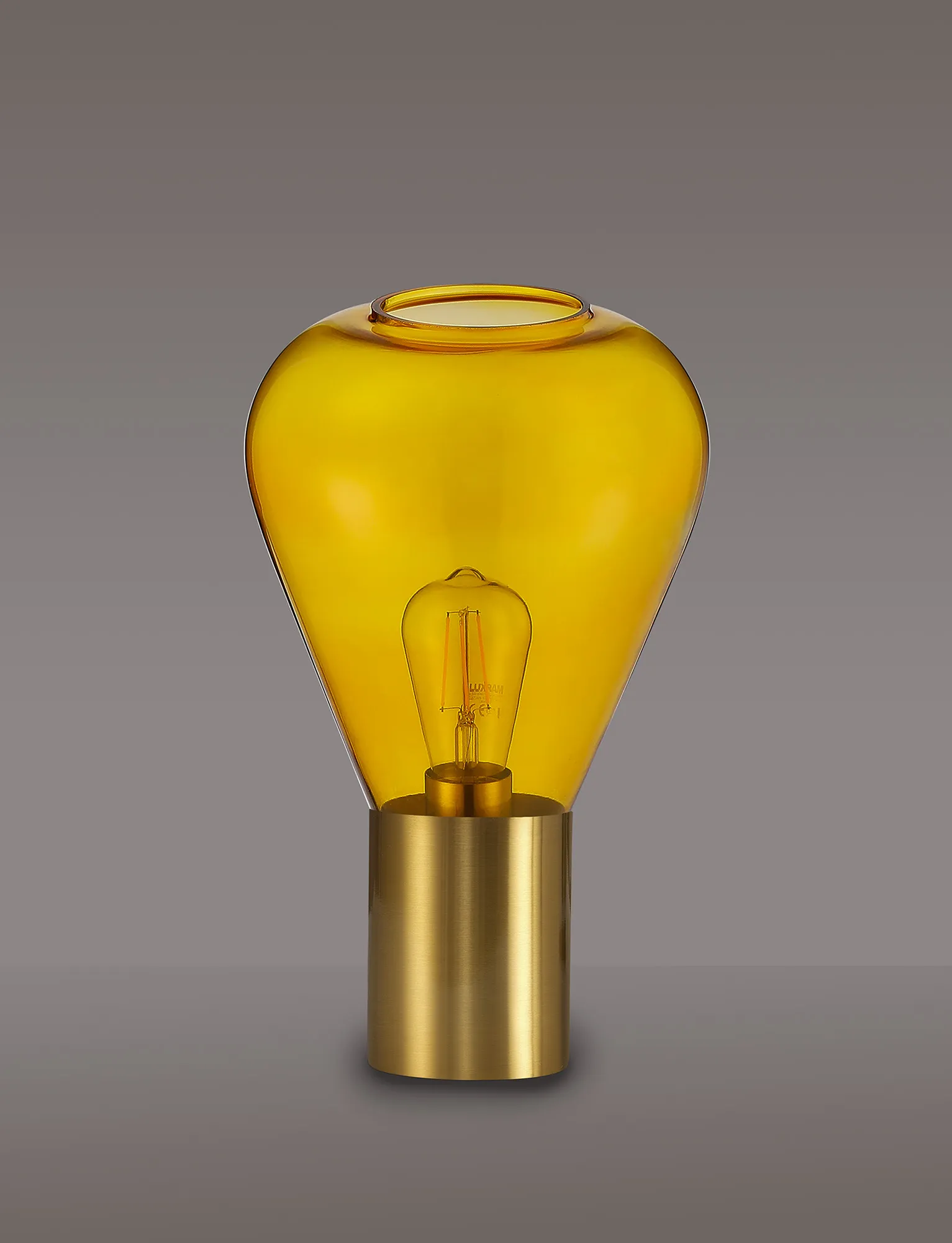 Clyde Ceiling Light With Narrow Glass, 1 x E27, Aged Brass/Yellow