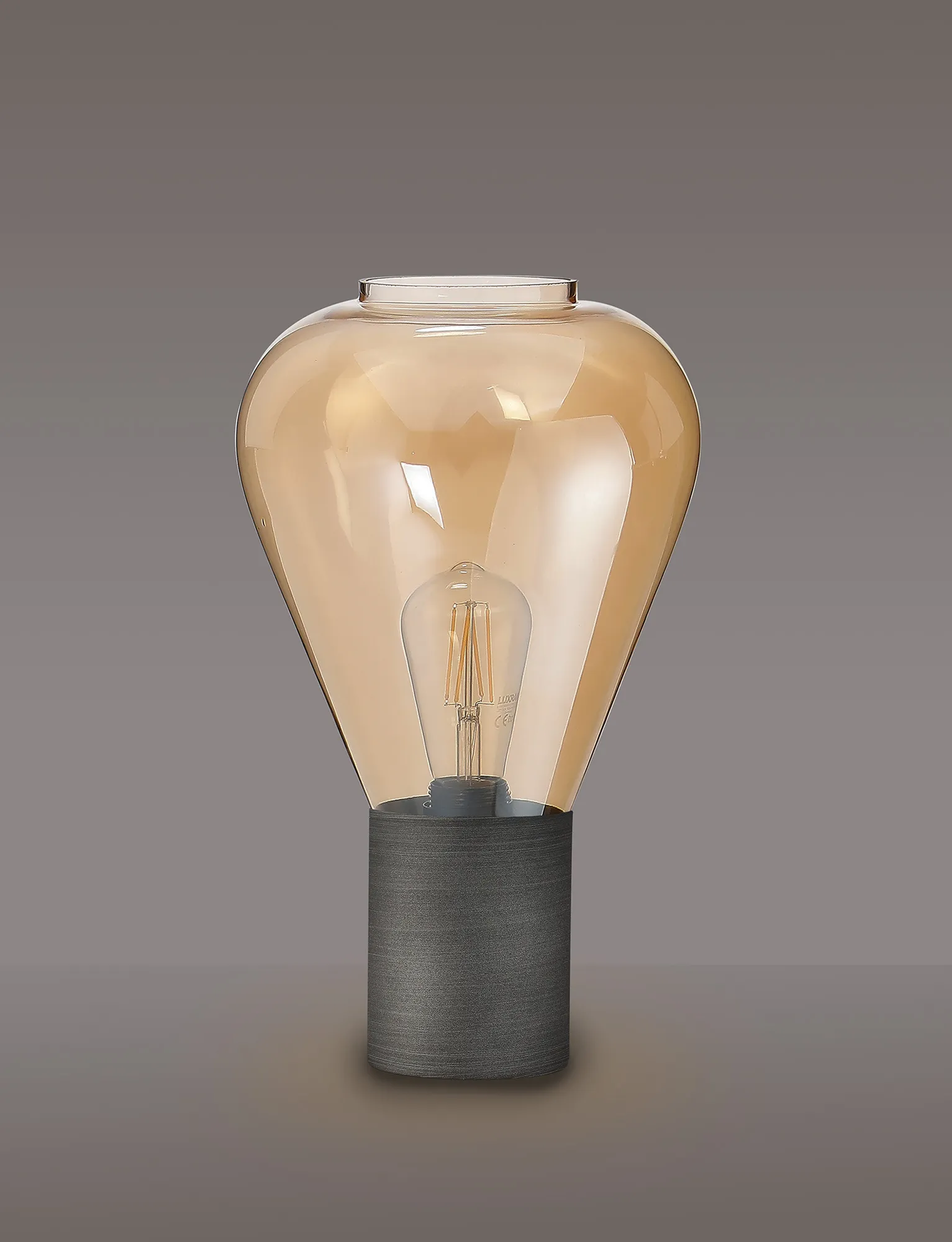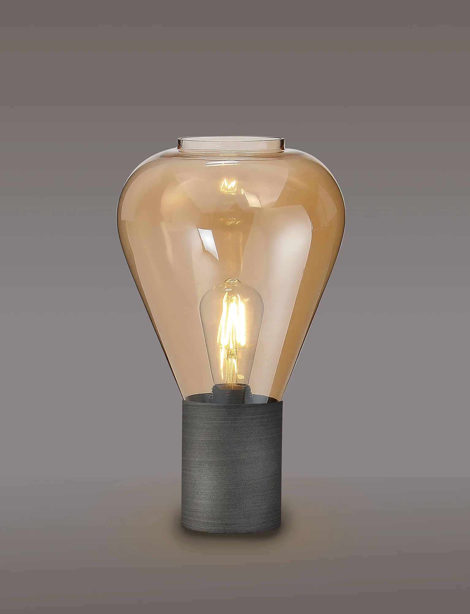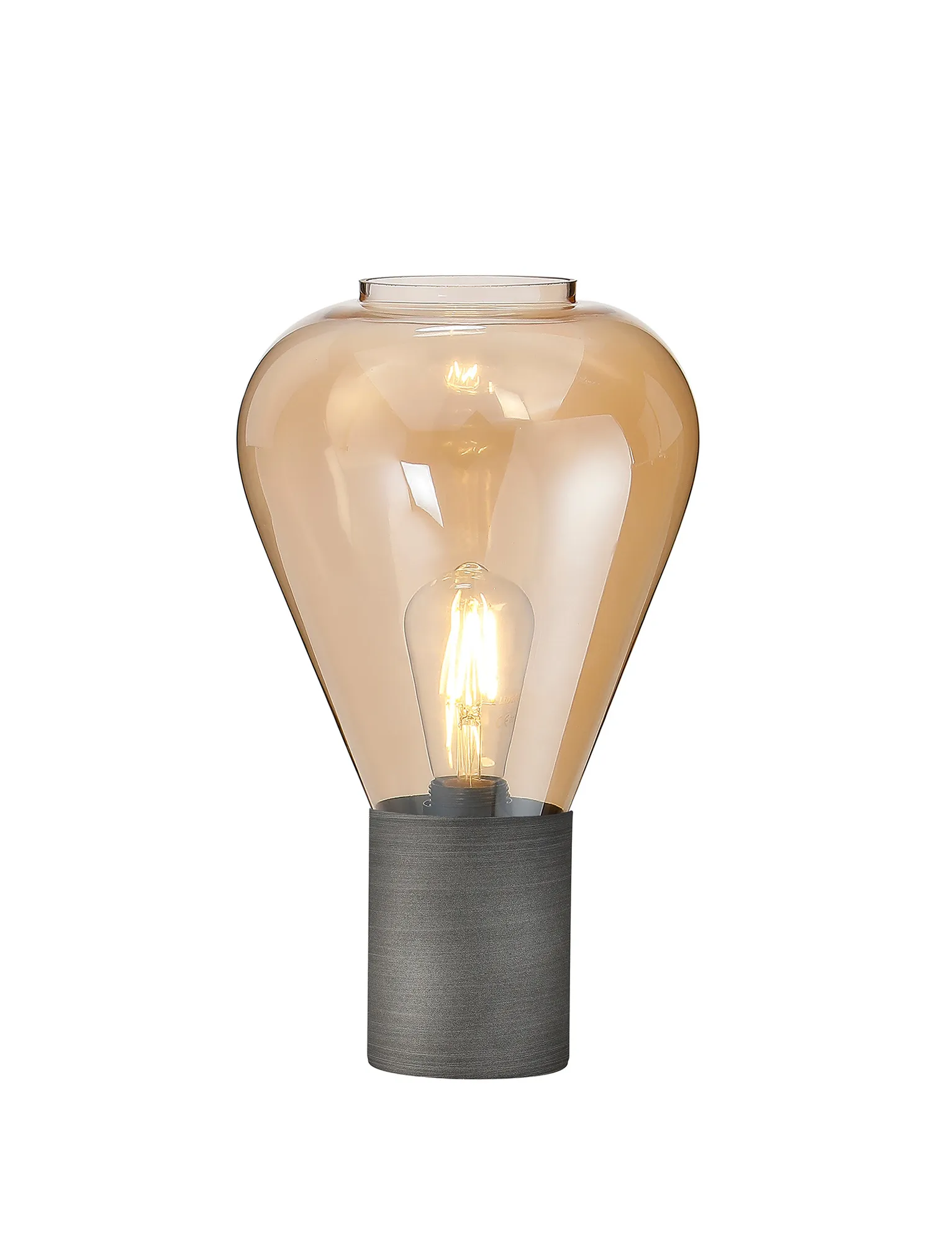 OTHER Clyde Narrow Table Lamp, 1 x E27, Pewter/Amber Glass