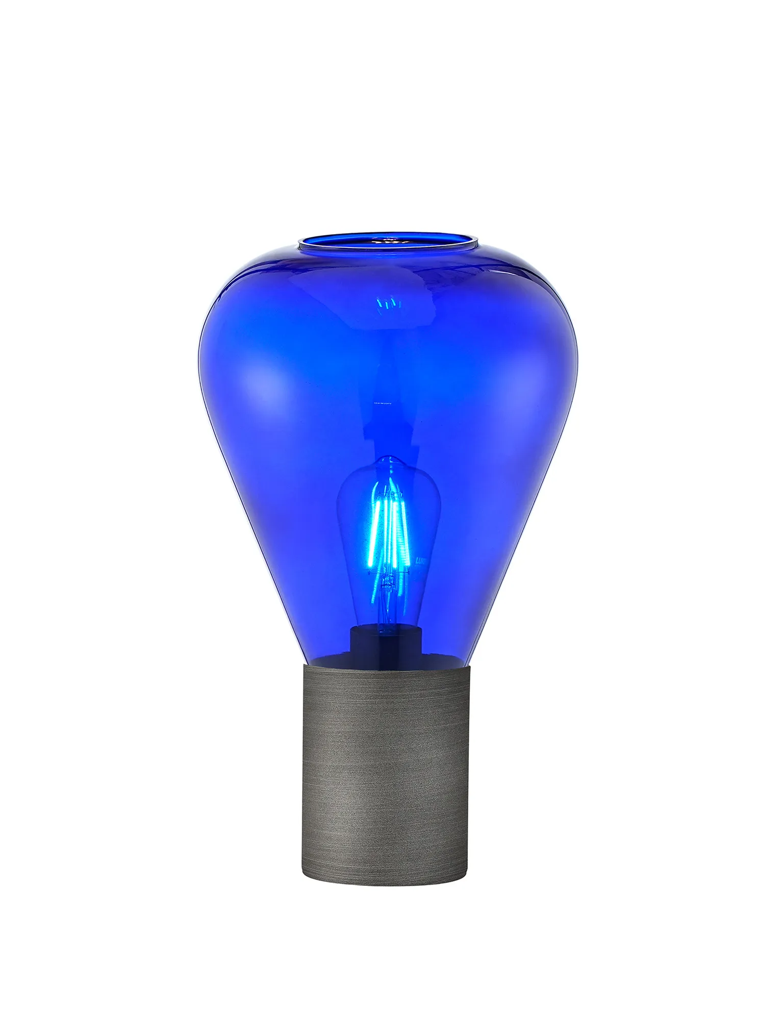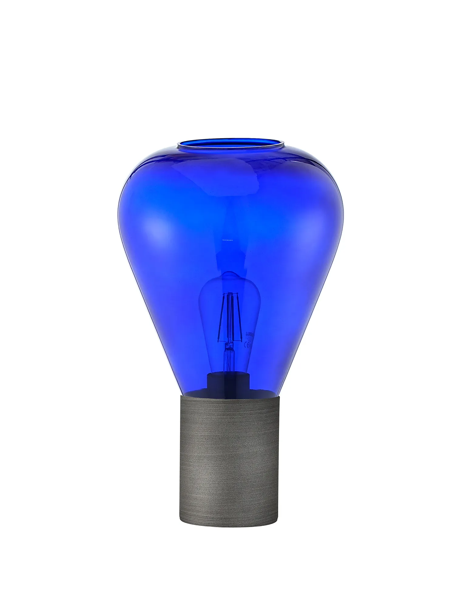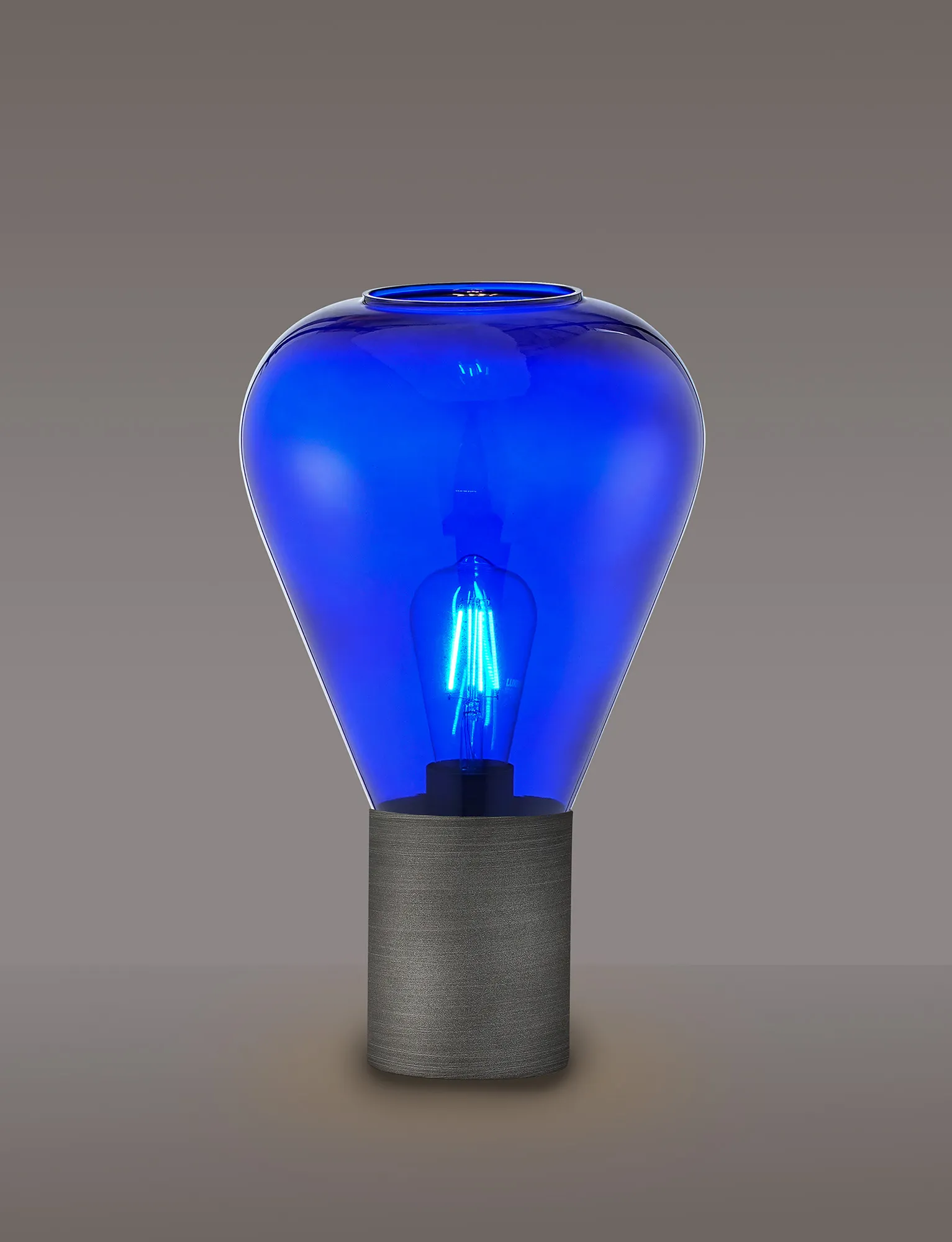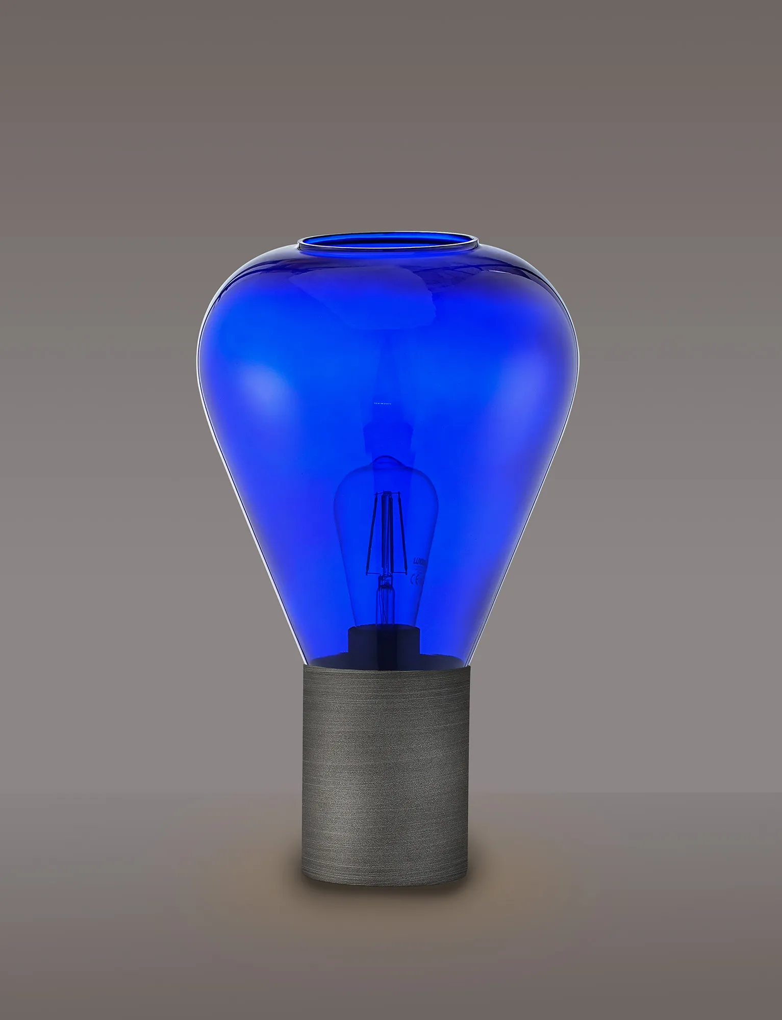 Clyde Ceiling Light With Narrow Glass, 1 x E27, Pewter/Blue Ink