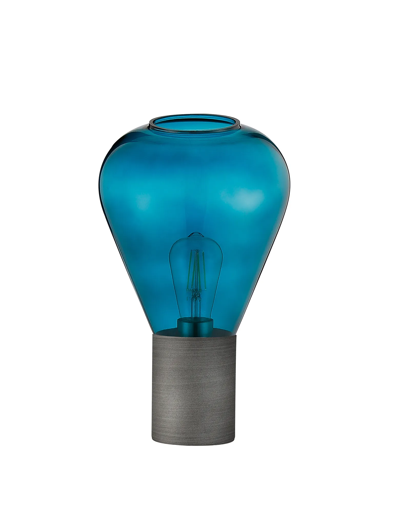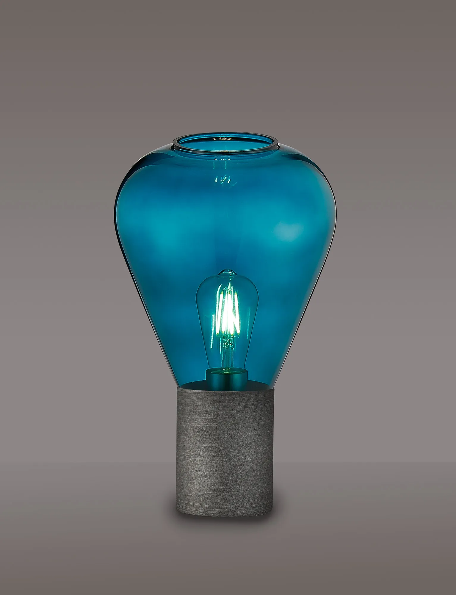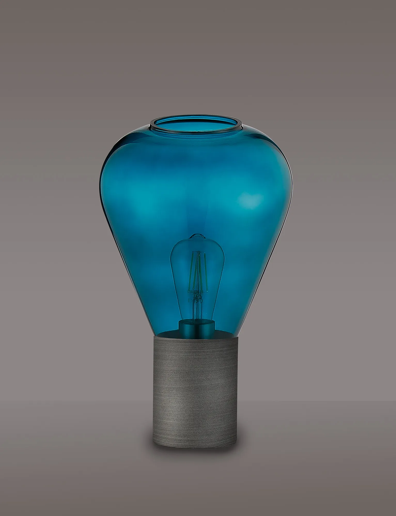 Clyde 23cm Ceiling Light With Narrow Glass, 1 x E27, Pewter/Teal Blue